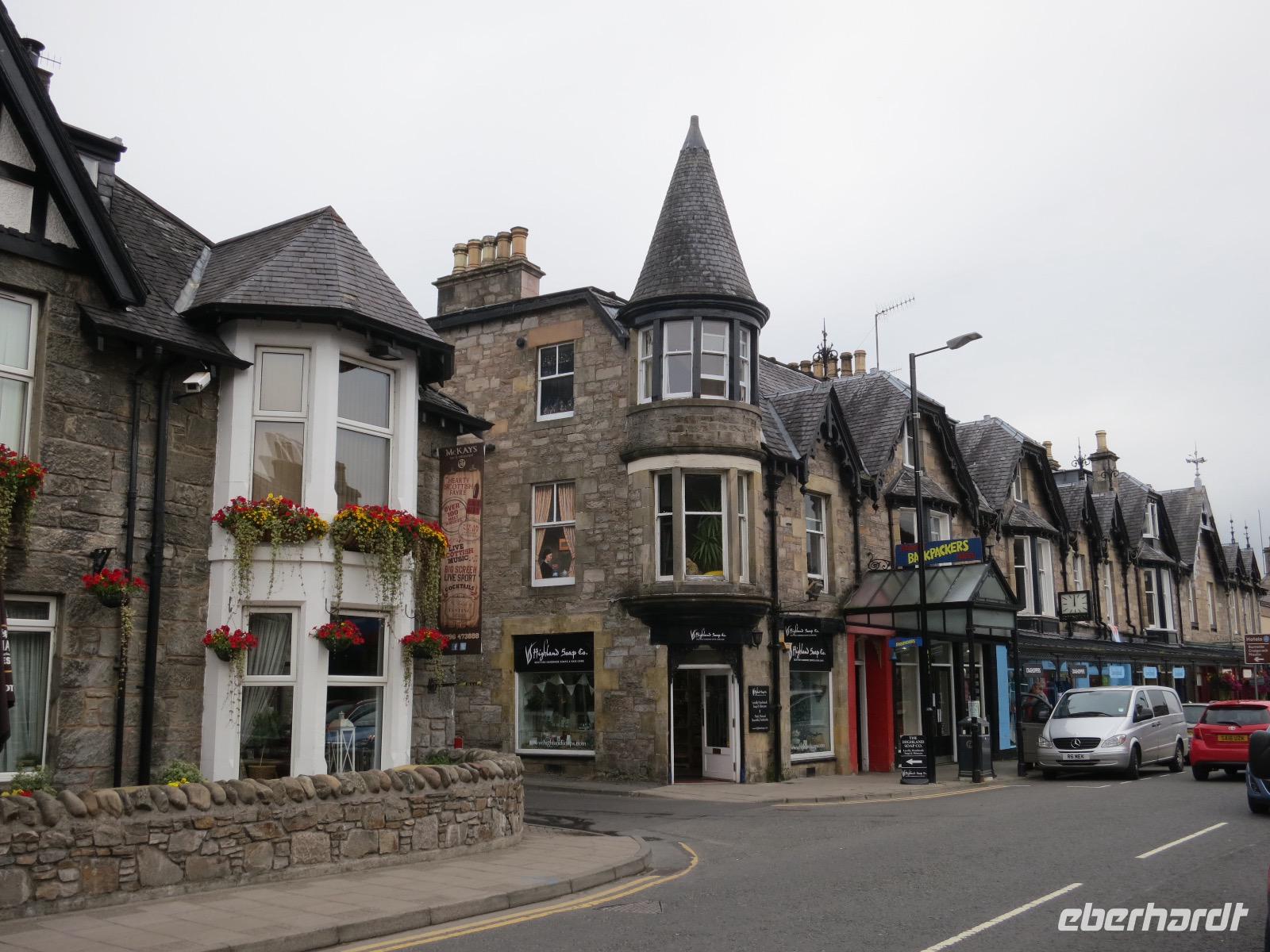 Am Morgen fuhren wir nach Pitlochry. Dort gab es Zeit für einen kleinen Spaziergang durch den gemütlichen Ortskern des Städtchens. Danach ging es zur Whisky-Brennerei Blair Athol in Pitlochry. Ein Mitarbeiter führte uns durch den Betrieb und erklärte uns die Herstellung des typischen hochprozentigen Getränks. 12 Jahre alter Whisky aus dem Sherry-Fass konnte verkostet werden. Am Ende des Rundgangs gab es Gelegenheit, verschiedene Whiskysorten im Shop der Brennerei zu erstehen. Bevor wir schließlich nach Edinburgh zu unserem Hotel in der Stadt fuhren, überquerten wir zur Freude aller Gäste noch die Straßenbrücke, eine Hängebrücke, über den Firth of Forth, um die rot angestrichene Eisenbahnbrücke gleich daneben zu bewundern. Ein kurzer Fotostopp in Sichtweite beider Brücken über den Firth ermöglichte uns herrliche Fotos beider Bauwerke. Danach fuhren wir noch nach Falkirk, das ist eine Stadt an Kanälen gelegen. Dort bewunderten wir eine technische Meisterleistung, die es weltweit nicht noch einmal gibt: Falkirk Wheel, ein Schiffshebewerk in Riesenradform mit zwei Gondeln, in denen Boote einen Höhenunterschied von 35 Metern in nur 4 Minuten überwinden können. Wir beobachteten das Rad bei seiner Arbeit. Danach stießen wir mit einem schottischen Whisky auf unsere schöne Reise an.