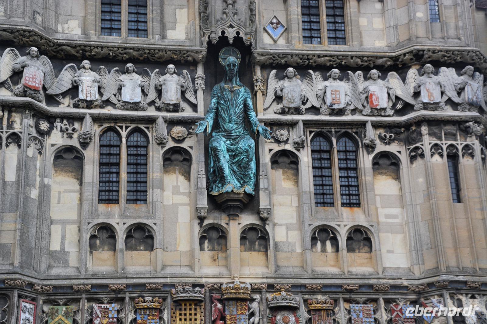 Nach einer kurzen Fährüberfahrt über den Ärmelkanal erhaschen wir einen Blick auf die Klippen von Dover, bevor wir in Richtung des Städtchens Canterbury starten. Wir haben von Weitem einen Blick auf die berühmte Kathedrale und spazieren durch die gut erhaltene Innenstadt. Nach einer kurzen Fahrt treffen wir in unserem Hotel in Woking bei London auf den anderen Teil der Gruppe. Nach kurzem "Beschnuppern" geht es dann auch gleich hinein in die Britische Kultur mit einem Besuch des Wohnsitzes der "Queen", dem Windsor Castle. Bei einem Rundgang durch diese imposante Anlage erfahren wir einiges über die Geschichte Großbritanniens und das Lieblingsporzellan der königlichen Familie. Eine imposante Anlage, in der die St. George's Chapel einen der Höhepunkte darstellt. Im Ort grüßt Queen Viktoria die Untertanen und der einladend gestaltete Bahnhof lädt zu einem Cream Tea ein. Nach diesem ereignisreichen Tag genießen alle die Annehmlichkeiten des Hotels. Mit Spannung erwarten wir die morgige Stadtrundfahrt.