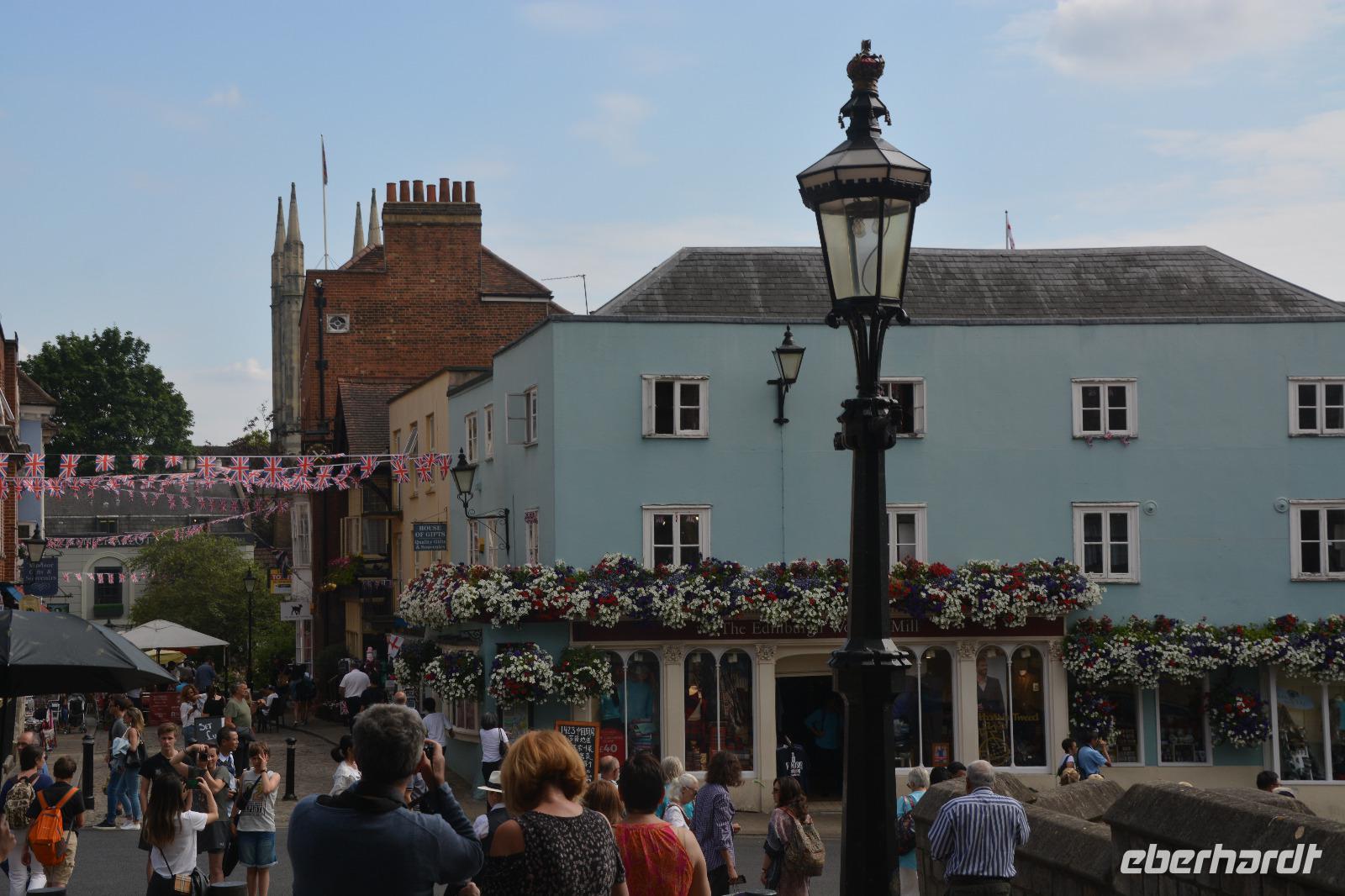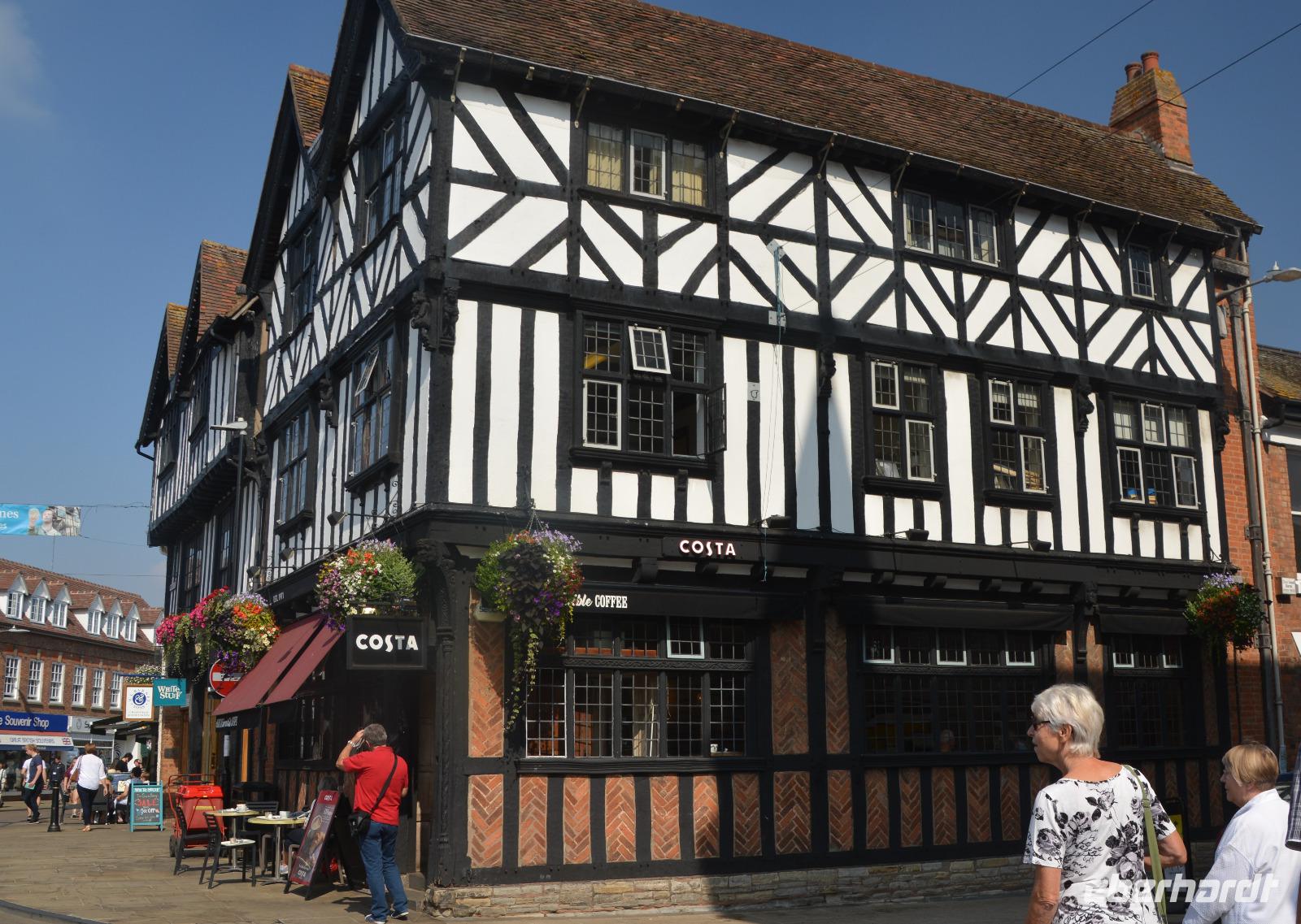 Nach dem Frühstück geht es in die Shakespeare-Stadt Stratford-upon-Avon. Am Eingang zur Altstadt grüßt der Dichter von Weitem und weisst uns den Weg. Viele wollen sein Geburtshaus, welches zu einem netten Museum umgestaltet wurde, sehen. Sein Elternhaus gibt einen Einblick in das Leben zu seiner Zeit. Vor dem Haus führen Schauspieler Szenen aus dem wohl berühmtesten Shakespeare-Stück "Romeo und Julia" auf. Weiter laufen wir durch das Örtchen zum Haus seiner Ehefrau und erhaschen einen Blick in die Kirche mit seinem Grab.
