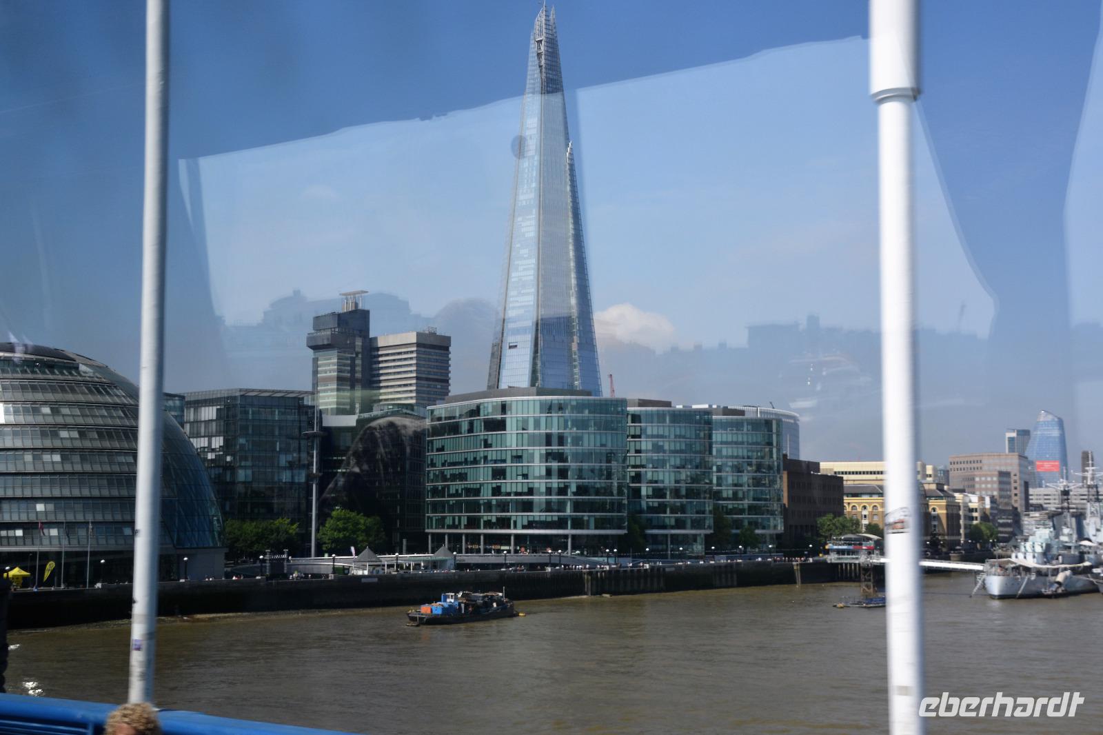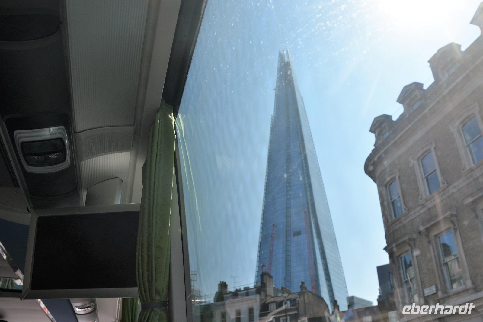 Unsere Stadtführerin Sibylla holt uns in unserem Hotel ab. Hoher Besuch aus den Vereinigten Staaten hat sich in London angesagt und deshalb fahren wir auf direktem Weg in Richtung London, um die zu erwarteten Staus zu umgehen. Es geht durch ganz London mit seinen vielen neuen modernen Bauten, die sich in der Innestadt und am Ufer der Themse entlangreihen. Zahlreiche Brücken verbinden die Ufer. Wir sehen das höchste Gebäude Londons, "The shard", aber auch Westminster Abbey und den Tower. Bei einem Besuch des Buckingham Palastes können wir den Wachwechsel erleben. Es sind viele Reisende in der Stadt die sich unter zahlreiche angereiste politisch bewegte Demonstranten mischen. Mit etwas Verspätung fahren wir weiter nach Oxford in dieses elegante und gebildete Städtchen. Die Stadtführerin Susanne wartet schon auf uns und wir beginnen unseren Spaziergang durch die Universitäten und Elite-Colleges mit ihrer beeindruckenden Architektur. Lebhaft erzählt Susanne uns etwas über das Schulsystem in Großbritannien und von berühmten Männern wie Adam Smith und Stephen Hawkin, welche hier in Oxford studierten. Voll von den verschiedenen Eindrücken des Tages freuen wir uns auf unser Hotel in Coventry für 2 Tage.