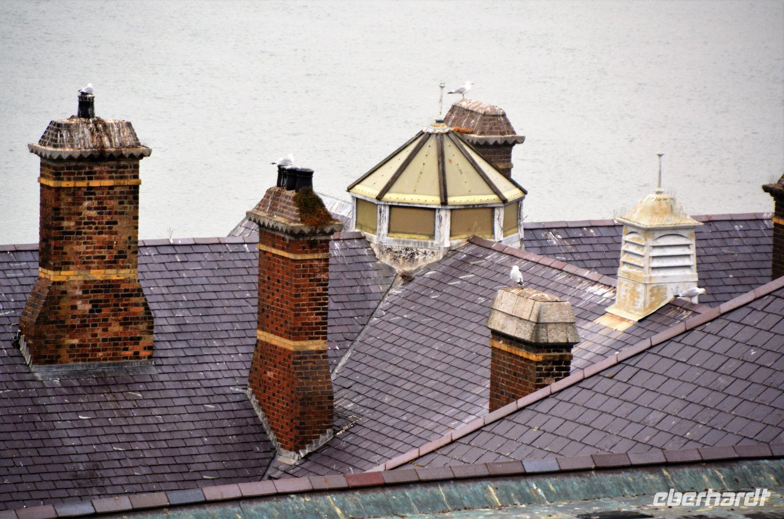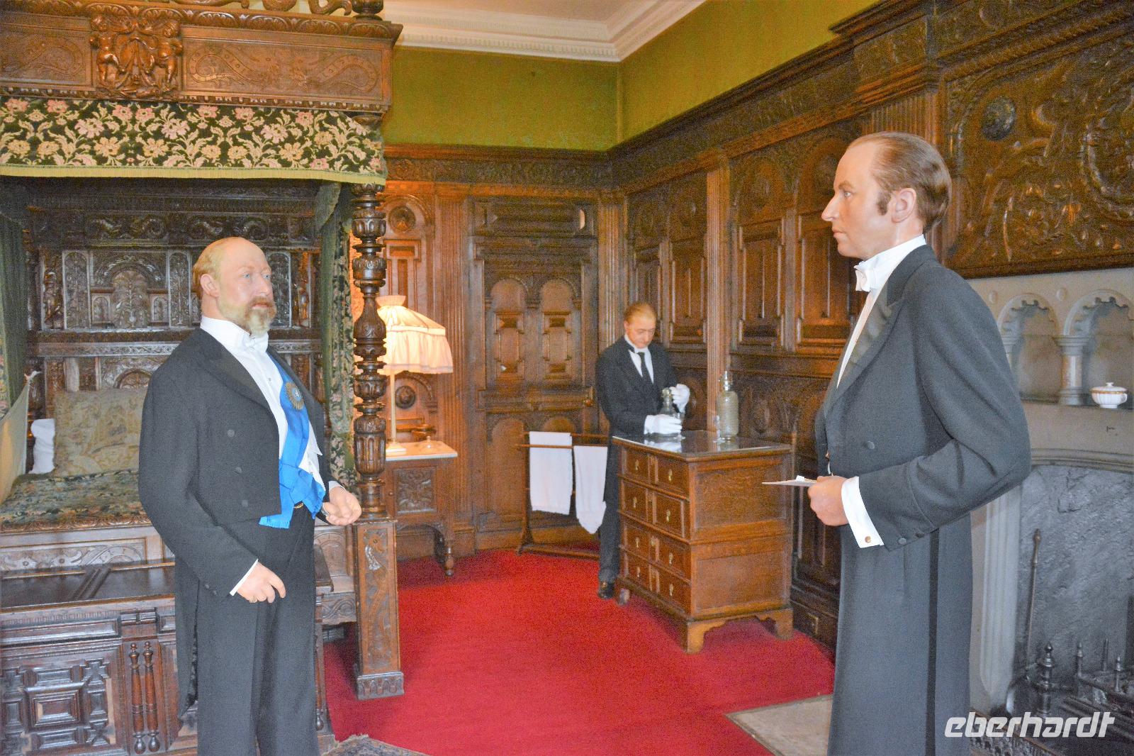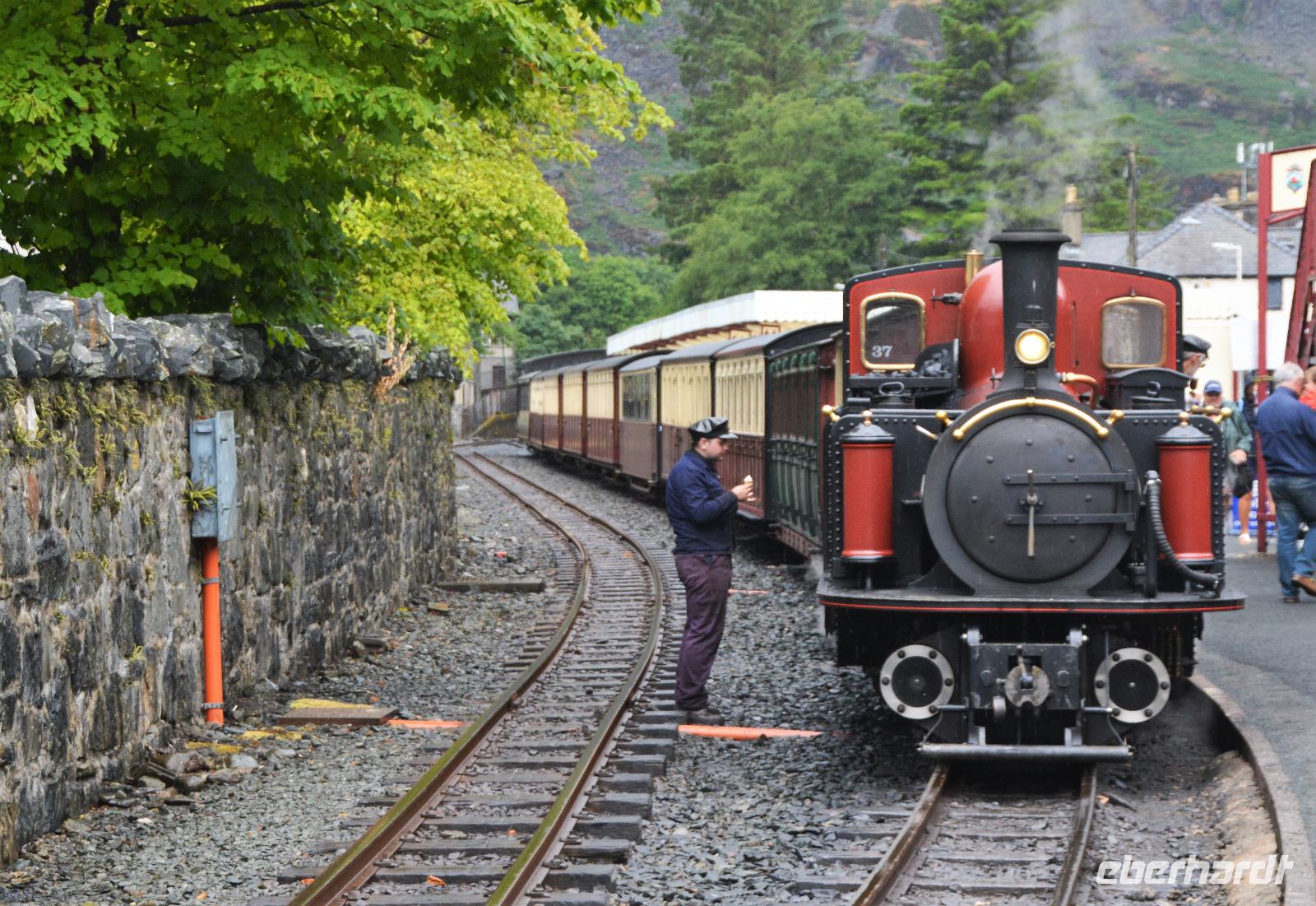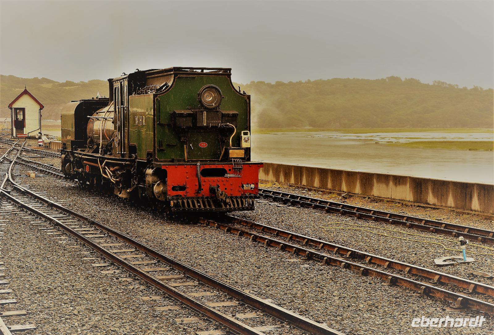 Dann wartet ein weitere Burg auf uns: Caernarfon Castle. Wir erkunden die Burg und es bleibt noch Zeit für einen kleinen Rundgang im Örtchen, bevor wir zu unserem wichtigen Termin, der Abfahrt unseres Dampfzuges aufbrechen. Nachdem wir die Loks ausgiebig bewundert haben kann es los gehen. In dem Waggon, extra für uns reserviert, fahren wir durch walisische Landschaft die sich heute ein wenig regnerisch zeigt. Nun das Grün der Landschaft muss irgendwo herkommen. Das ganze steigert sich und bei unserer Ankunft regnet es in Strömen. So hat dann auch niemand Lust auf eine Besichtigung in Conwy, da alles in Grau gekleidet ist. Wir fahren in unser Hotel und lassen die Eindrücke des Tages sacken.