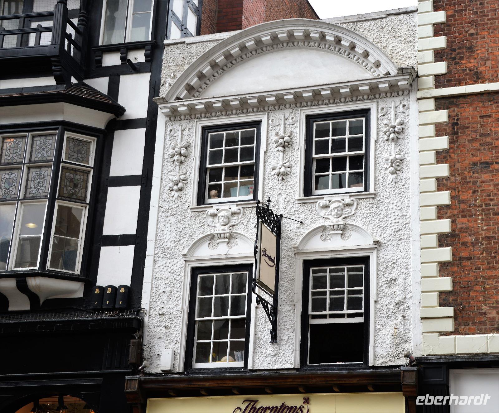 Nun stattdessen reisen wir in die Zeit der Romanik zur Builtwas-Abbey und verbringen dort in der idyllischen Ruine einen entspannten Vormittag. Damit ist es in Chester vorbei, denn Steve unser Reisleiter wartet schon vor der geplanten Zeit und führt uns mit viel Humor und kenntnisreich durch seine Stadt. Vorbei am Haus der Großmutter von John Lennon spazieren wir an der Stadtmauer in die Altstadt. Schon die Kelten haben hier an der Grenze zu Wales gesiedelt und auch die Römer haben ihre Spuren hinterlassen. Wir sehen Reste einer römischen Fussbodenheizung und eines Amphitheaters. Wir bummeln durch die "Bridge-Street" mit ihren "rows", gut restaurierte Gebäude aus dem Mittelalter. Steve hat auch eine gute Adresse für einen "Cream-Tea". Dorthin gehen wir und lassen uns scones, clotted cream und Erdbeermarmelade schmecken, bis es Zeit ist zu unserem Hotel in Runcorn zu fahren.