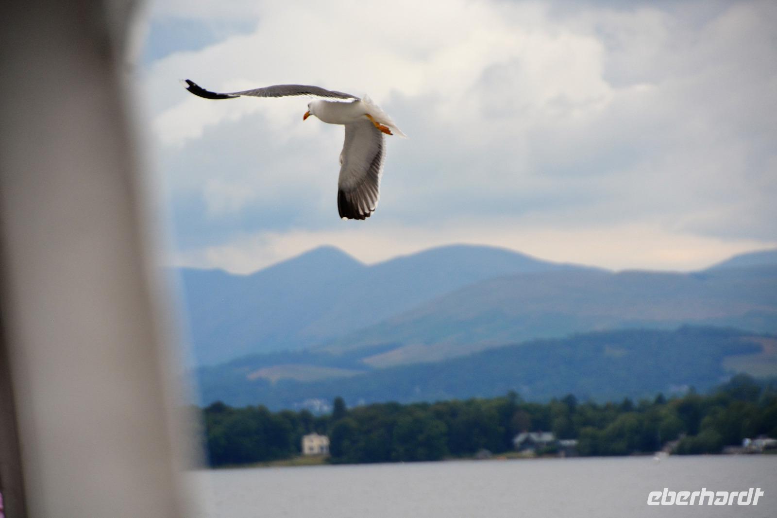 Früh am morgen starten wir um pünktlich zur Abfahrt unseres Schiffes zu kommen. Trotz einiger kleiner Staus erreichen wir unser Schiff in Lakeside. Die Ausmaße der herrschaftlichen Anwesen am Ufer des Sees können wir nur erahnen. Auch die Wassersportler sind eifrig, so wie die Möven welche versuchen, von den Passagieren einige Leckereien zu ergattern.