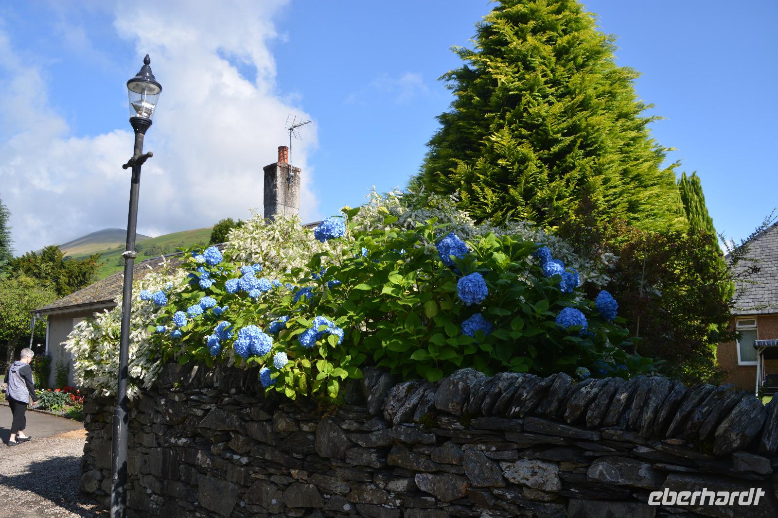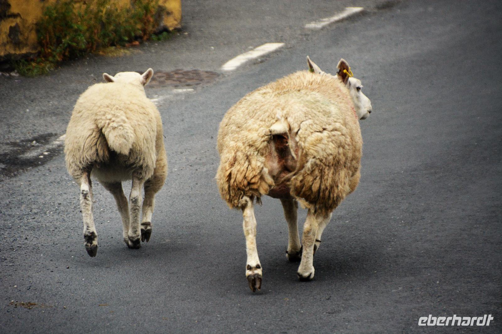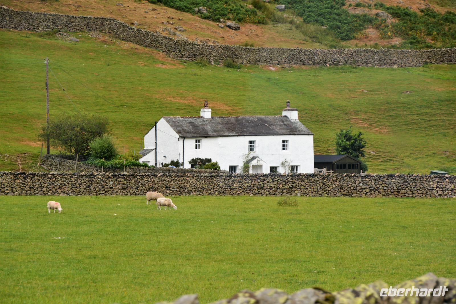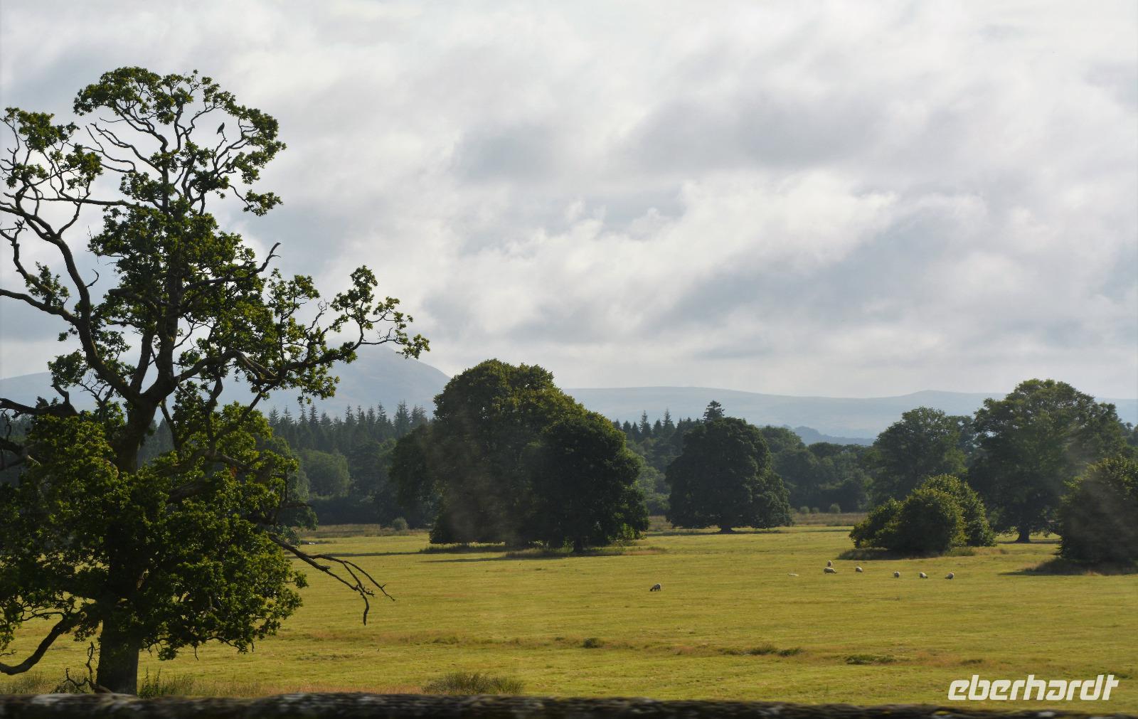 Ab Bowness am Ende der Schiffsfahrt geht dann die Route über eine landschaftlich besonders schöne Strecke zum Kirkstone Pass, wo wir eine Pause einlegen. Unser nächstes Ziel ist Gretna Green. Aus der Gruppe kam der Vorschlag, das am längsten verheiratete Paar noch einmal durch Amboßschlag vermählen zu lassen. Vorher aber blockieren noch drei Schafe den Weg. Ob sie auch nach Gretna Green unterwegs sind? Wir überfahren die Grenze zu Schottland.
