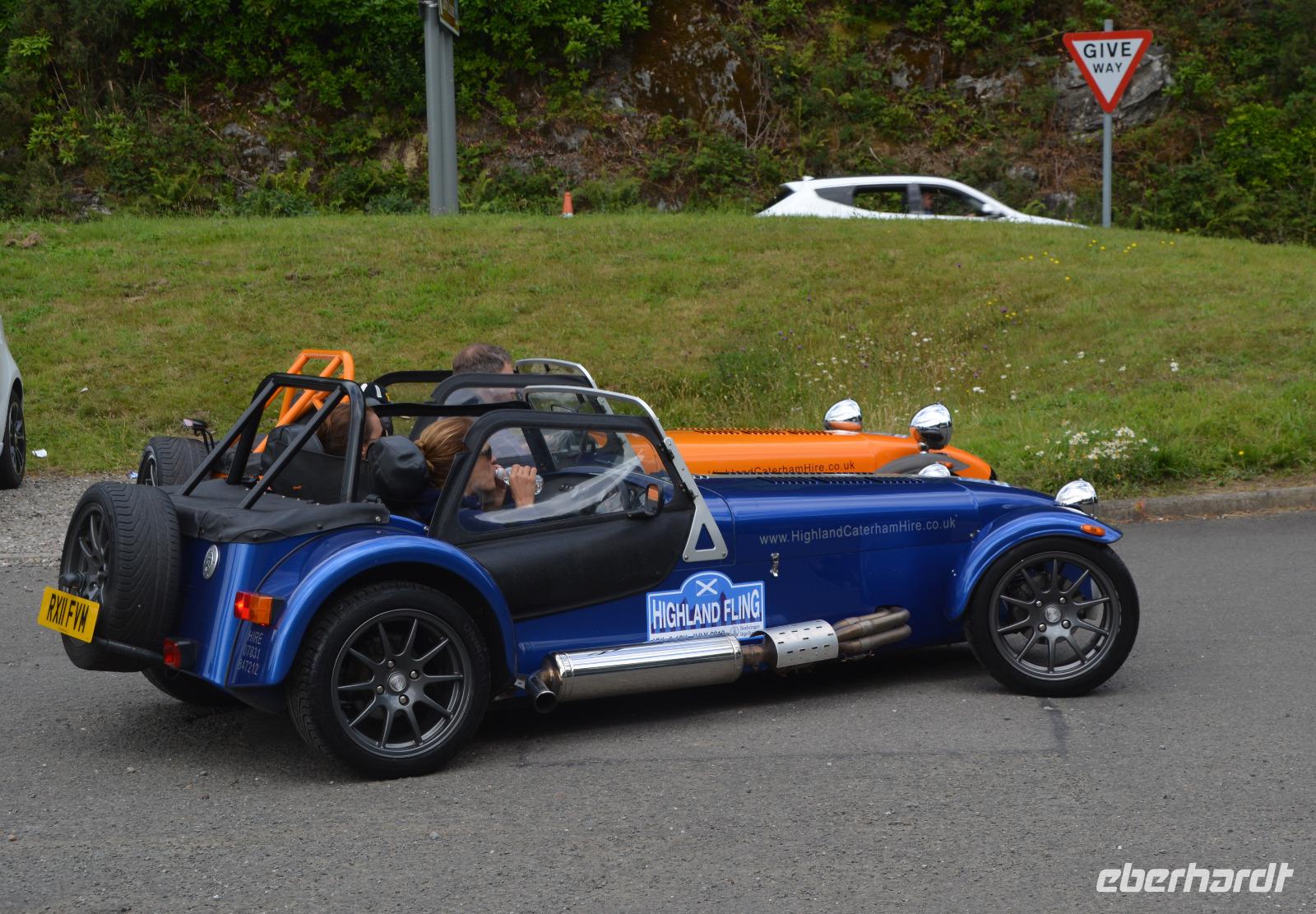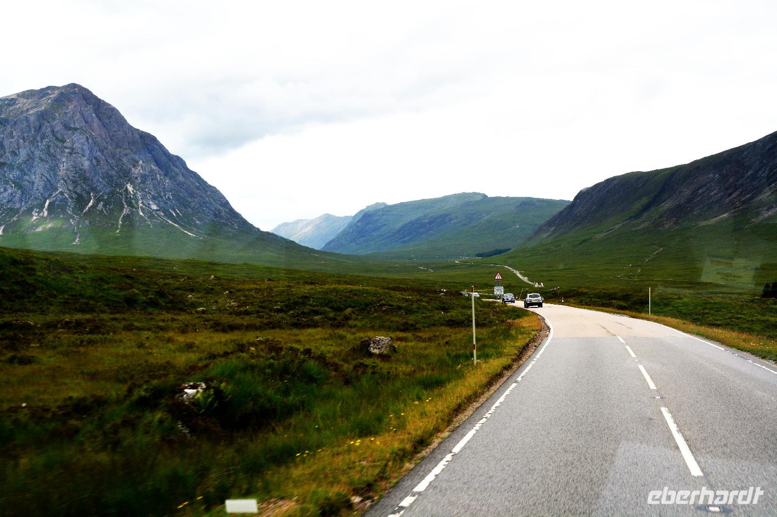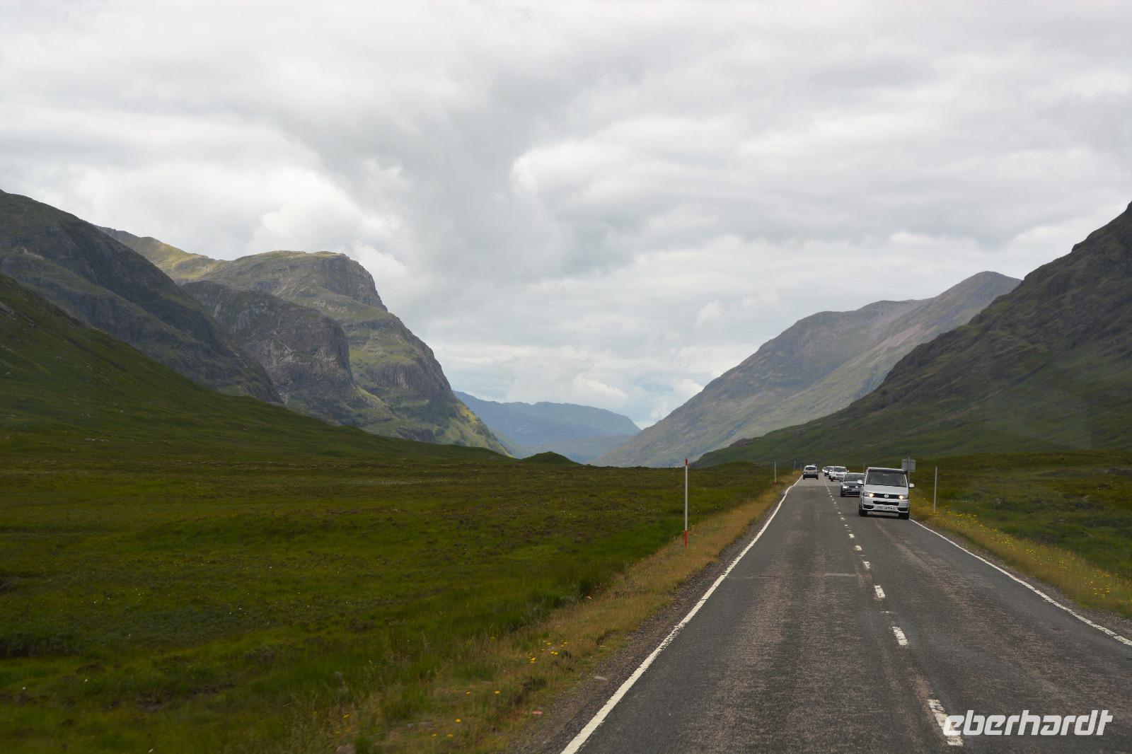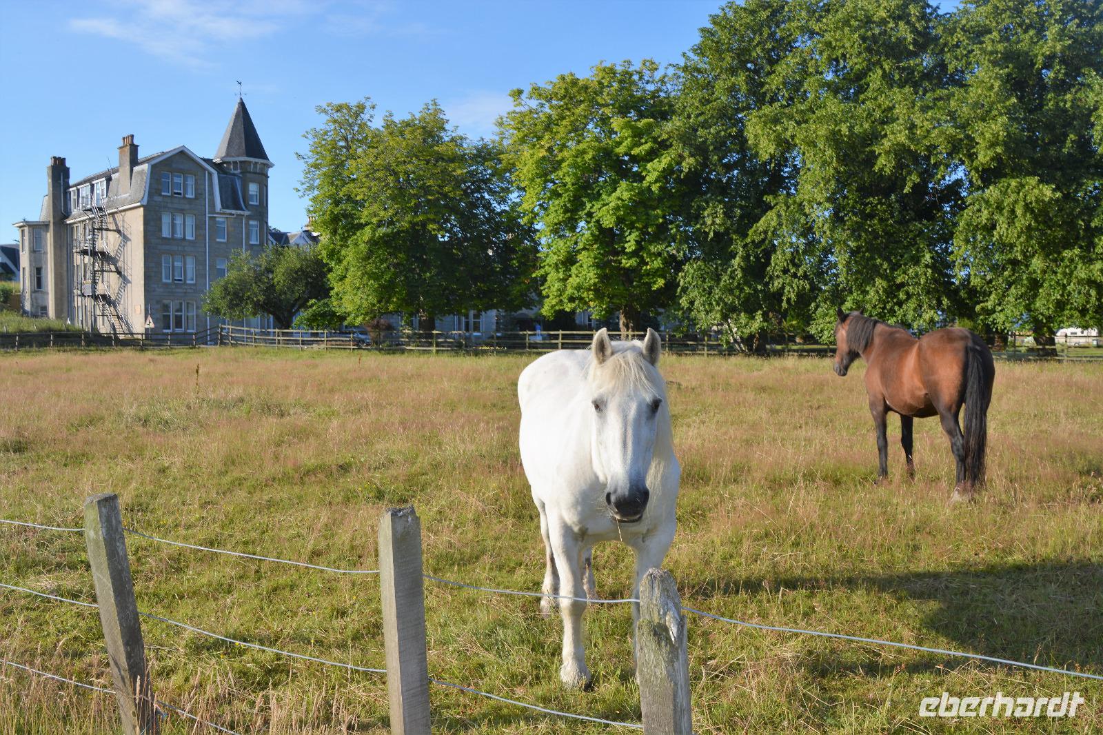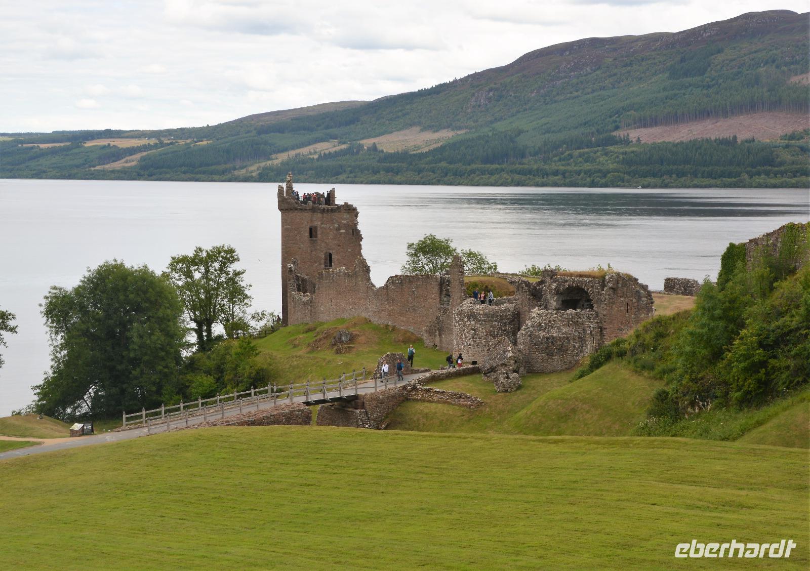 Heute fahren wir in Richtung Kaledonischer Kanal, der eine wichtige Verbindung in Schottland ist. Nach einer längeren Pause am Loch Lomond im hübschen Städtchen Luss mit seinem Grabstein aus der Wikinger-Zeit fahren wir mit mehreren Fotostopps im Glen Coe nach Fort Augustus mit seiner Schleusentreppe, welche zur Zeit hauptsächlich von Urlaubern mit Hausbooten genutzt wird. Eine Nessie-Skulptur erinnert uns daran dass wir nach dem "Seeungeheuer" bals Ausschau halten müssen. Aber trotz Suche auf dem Loch Ness lässt sich Nessie nicht blicken. Wir haben trotzdem einen schönen Tagesabschluss mit dem Besuch des Urquart Castles. Wir fahren zu unserem Hotel, welches wirklich ein sehr britisches (oh Verzeihung, ich muss "schottisches" sagen!) Landhotel ist mit einem veritablen "Mister Stinger"
