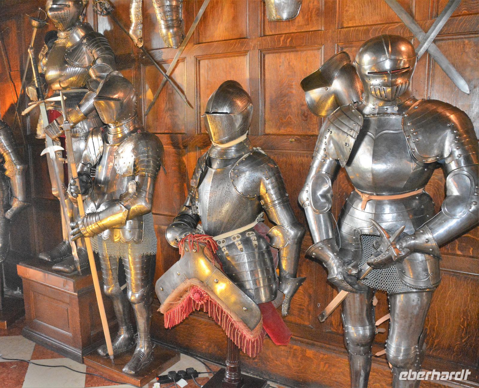 Am Shakespeare-Theater geht es vorbei zum Parkplatz. Eine Steigerung findet Stratford-upon-Avon in der Besichtigung des Warwick-Castles. Schon von Wilhelm dem Eroberer begonnen erstrahlt diese mittelalterliche Burg in vollem Glanz: Raubvogelfütterung, Ritterspiele und eine fantastische Fernsicht, wenn man die Türme erklommen hat. Ein Rundweg auf der Mauer führt um die Burg. Einen weiteren Höhepunkt bilden die Ausstellungen in der Burg. Prächtig ausgestattet und in Teilen mit lebensnahen Wachsfiguren bestückt lassen sie uns eintauchen in "andere Welten und Zeiten". Noch benommen von den Eindrücken wartet die Schlossruine Kenilworth darauf, von uns fotografiert zu werden.