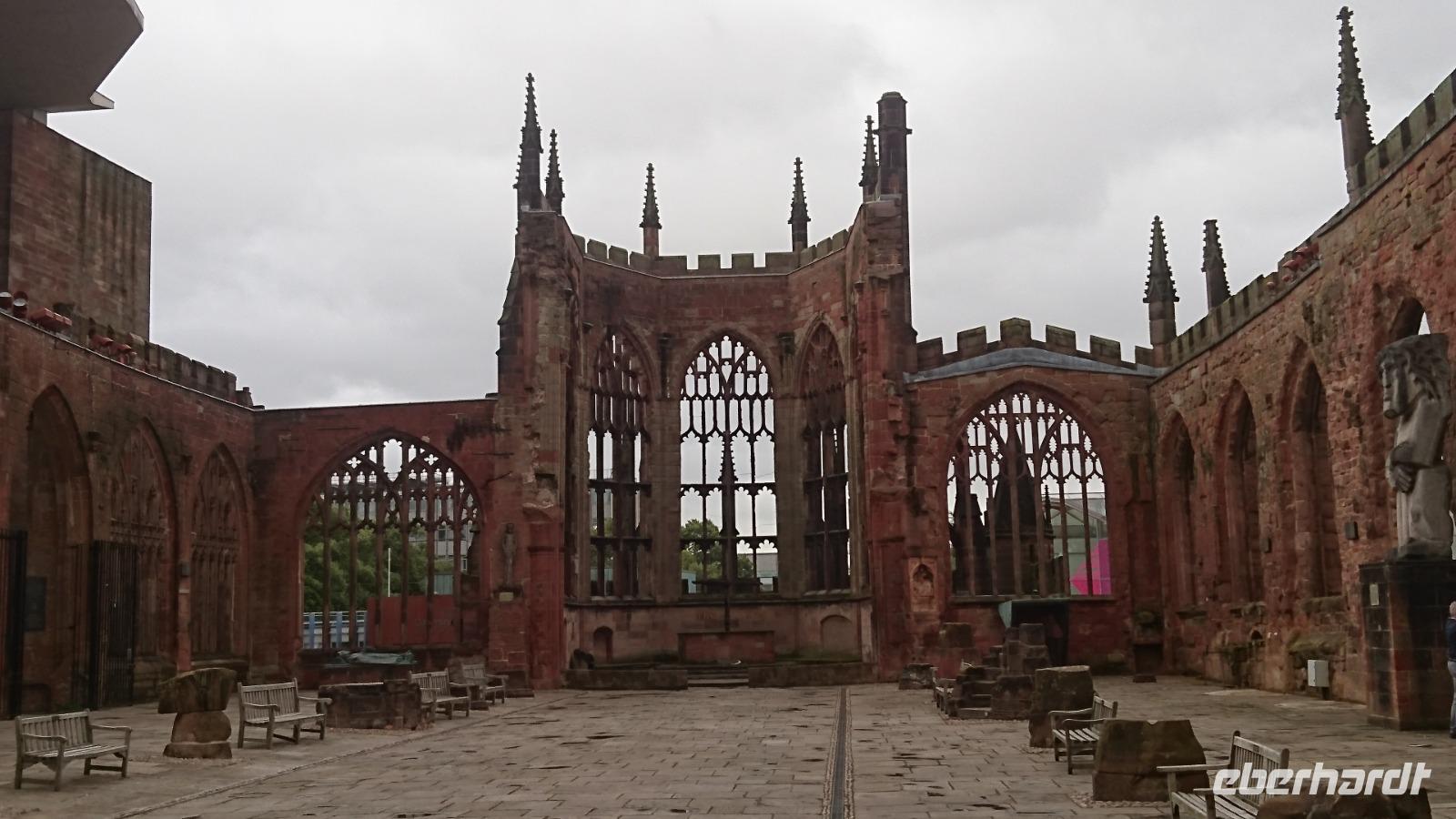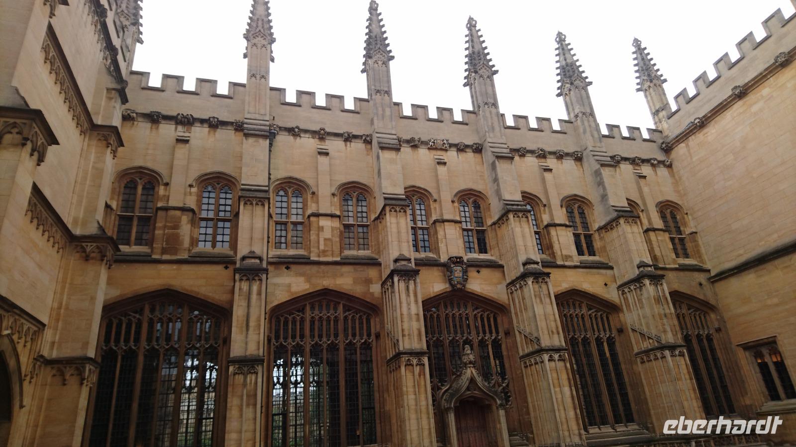 Ich glaub, es geht schon wieder los, dachte sicher mancher aus unserer überschaubaren Gruppe, als wir nach dem reichhaltigen Frühstück unsere Koffer zu Roy brachten und dann wieder im Bus Platz nahmen. Wir fuhren nach Windsor, in den zweiten Palast der Königin, die sich ja übers Jahr in den Staatspalästen Buckingham, Windsor und Holyrood, aber auch in ihren privaten Palästen, wie in Balmoral aufhält. Wir kamen pünktlich in Windsor an, spazierten vom Busbahnhof durch den Ort und kamen an eine sehr lange Schlange von ebenso Einlass begehrenden Touristen am Schloss. Geduldig warteten wir und wunderten uns schon, wie gut die dortige Organisation war, denn vermuteten wir erst, wir müssten vielleicht Stunden mit dem Warten verbringen, so waren wir bereits nach 30 Minuten im Palastgelände und schauten uns individuell dieses alte Bauwerk mit seinen vielen Besonderheiten an, ehe wir wieder zum Bus kamen, auf dem Wege dahin an Shakespeare und seine Geschichte über die Damen aus Windsor dachten und nach dem Mittagsimbiss weiterfuhren diesmal nach Oxford. Unsere Stadtführerin lud uns ein, mit ihr gemeinsam die Stadt zu erlaufen, denn nur so würden wir die schönen alten Häuser, die interessanten Hochschulen und Universitäten, die Geschichte und die Gegenwart in diesem Ort wirklich erkennen. Sie versprach uns nicht zu viel und so freuten wir uns über diese interessanten Erlebnisse, ehe wir wieder in den Bus stiegen und zu unserem Hotel in einer Stadt fuhren, die besonders die Dresdner als Partnerstadt nach dem zweiten Weltkrieg vom Namen her gut kannten. Coventry. Wir ließen uns wieder von Stefan für die Zimmer einchecken, Roy versteckte den Bus in der Nähe des Hotels in einer Nebenstraße und wir genossen am Abend noch das Abendessen und einen kleinen Spaziergang durch die nahe Innenstadt.