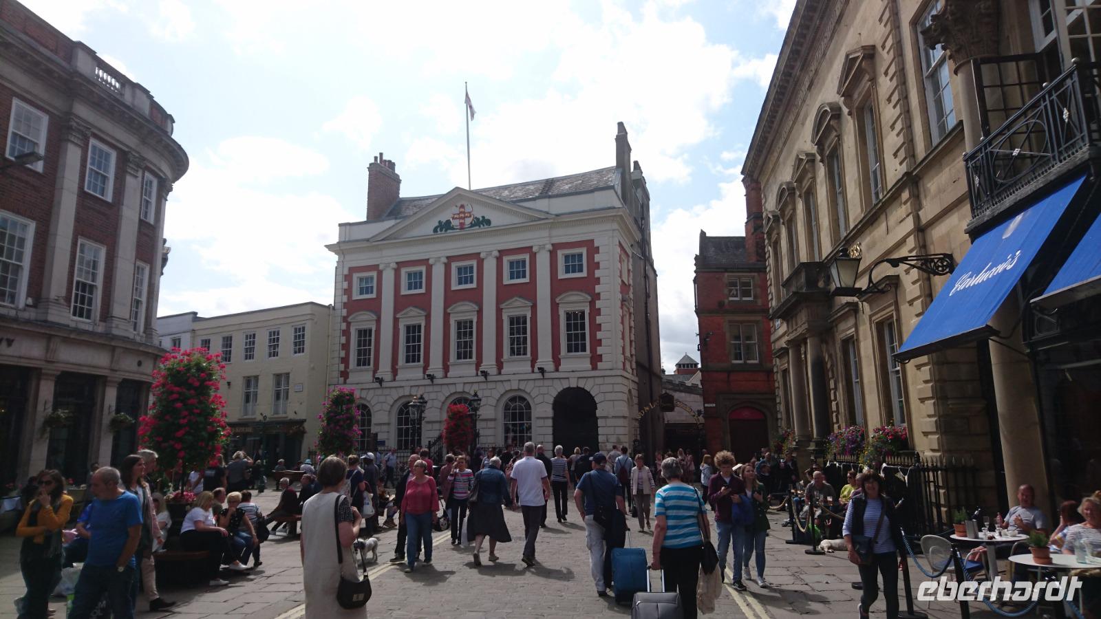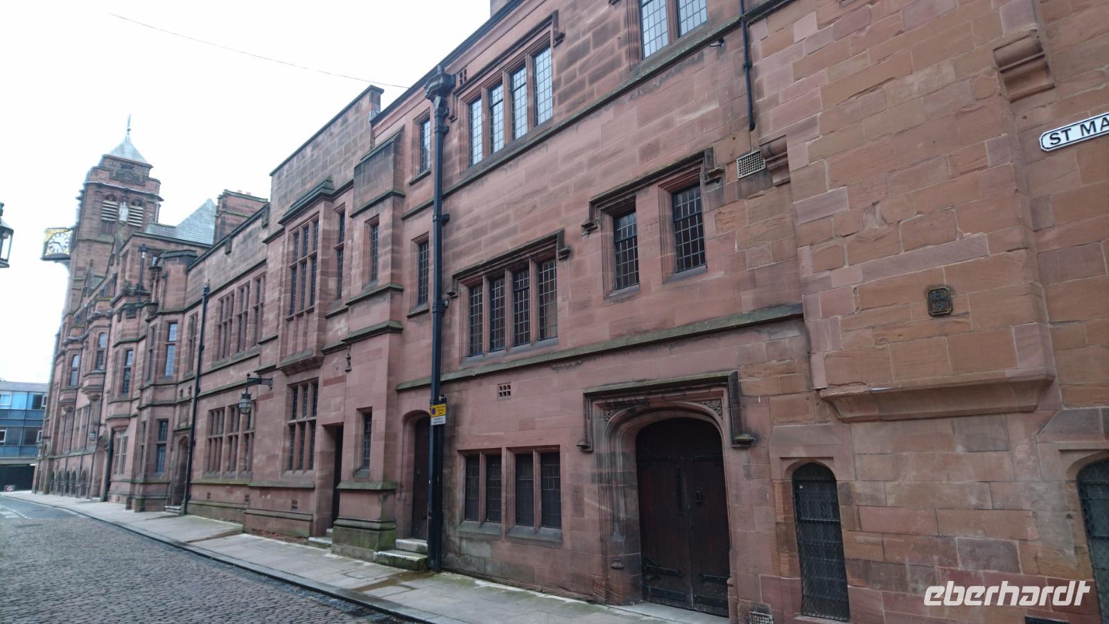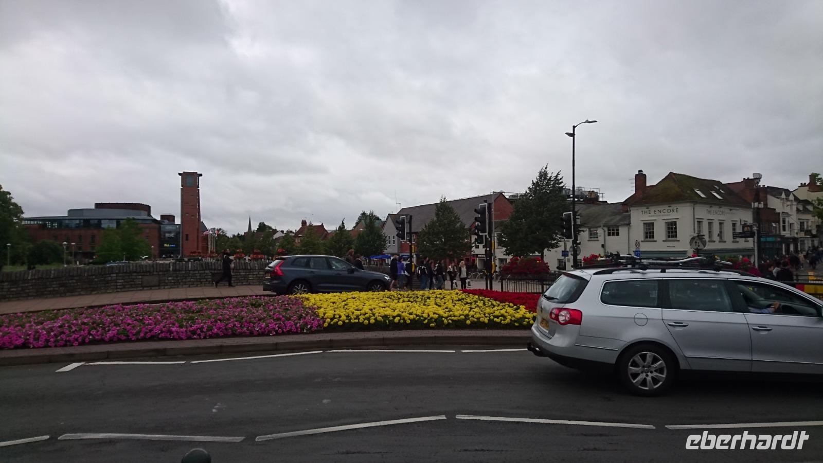 Heute hieß es, von Coventry Abschied zu nehmen. Nach dem Frühstück übergaben wir Roy wieder unsere Koffer, Stefan versorgte uns mit morgendlichen Getränken für die nicht zu lange Busfahrt und dann ging es hinauf ins Telford-Gebiet, also in jene Gegend, in der der geniale Architekt verschiedenster Großprojekte vergangener Zeiten lebte. Wir fuhren nach Ironbridge, einem Dorf, das seinen Namen daher bekam, weil dort die weltweit erste Eisenbrücke mit Nietverbindungen errichtet wurde und bis heute steht und hält. Selbst liefen wir darüber und staunten, sahen uns noch ein paar hübsche Häuser im Ort an und fuhren weiter nach Shrewsbury, sahen uns in diesem kleinen Ort mit schmalen Gassen und hübschen Fachwerkhäusern etwas um und bald schon ging es weiter in die vom Käse her bekannte Stadt Chester. Hier erfuhren wir schon auf der Fahrt in den Ort von Stefan, dass der Name von einem alten römischen Lager stammte, die Römer also eine Stadt gründeten, die uns dann Steve, unser hiesiger örtlicher Guide, genauer mit einem Spaziergang auf der alten Stadtmauer und durch die Stadt zeigte. Es gab noch das alte Amphitheater, Reste eines römischen Bades, aber auch Hinterlassenschaften der späteren Besiedlung bis hin zur Neuzeit. Die zweietagigen Laubengänge an der Geschäftsstraße und ebenso die Kathedrale beeindruckten uns sehr und so störte der plötzlich im zweiten Teil der Stadtführung einsetzende Regen nicht wirklich. Mit vielen neuen Erkenntnissen setzten wir darum später unseren Reiseweg fort und erreichten am zeitigen Abend unser nächstes Hotel in Runcorn, bezogen in alt bekannter Weise unsere Zimmer und trafen uns bald beim Abendessen wieder, um danach die Nachtstunden für neue Kraftanlagen zu nutzen.