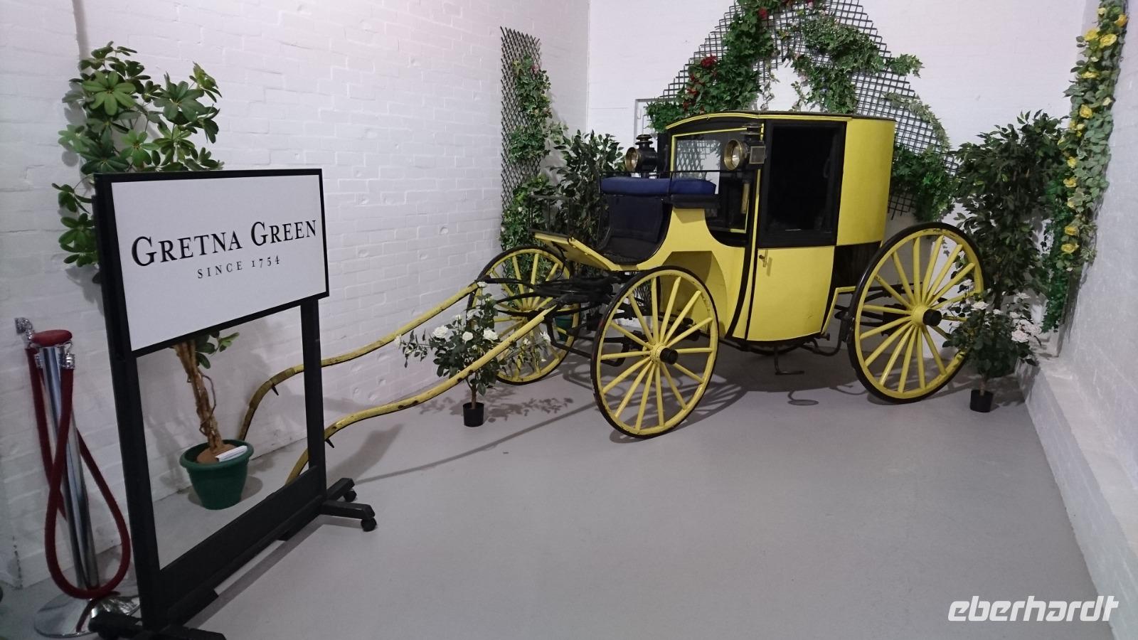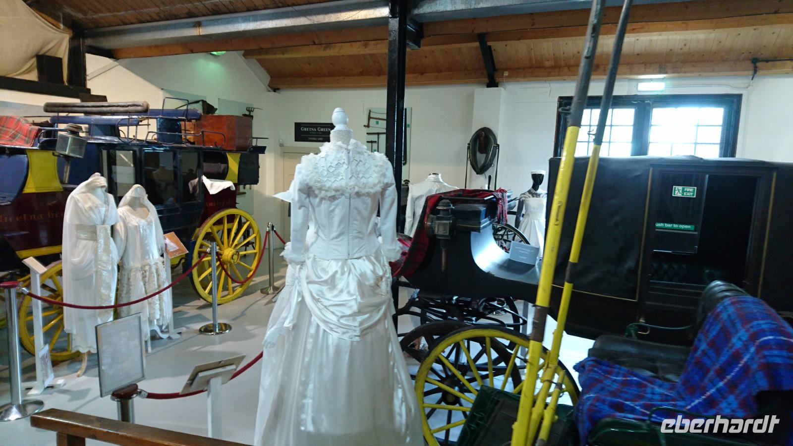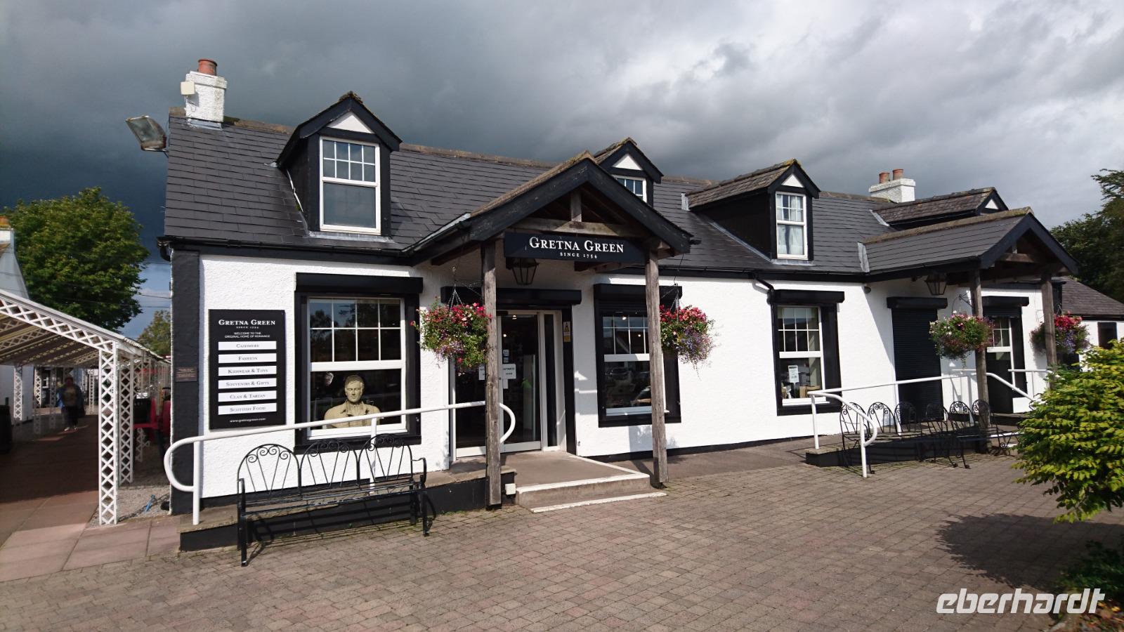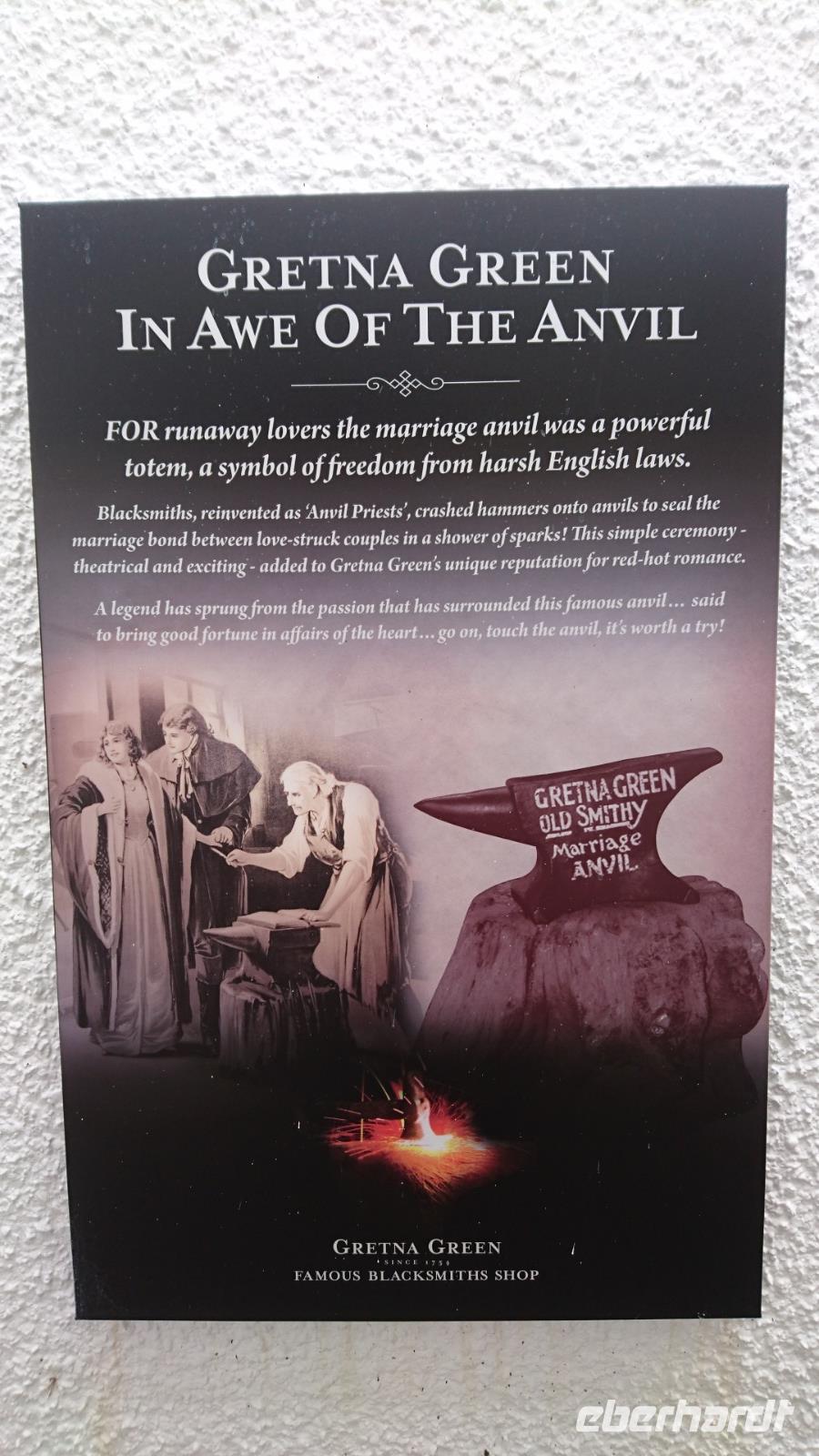 Am Morgen verlud Roy wieder unsere Koffer und nach der Tagesansprache durch Stefan, bei der wir immer besser die Antwort auf sein „good morning, ladys and gentlemen" lernten, ging es auf nach Norden, denn am Abend wollten wir das nächste und letzte Königreich unserer Tour erreichen, ehe wir nach England zurückkehren und nach den Niederlanden übersetzen würden. Doch bis dahin war noch etwas Zeit. Wir fuhren durch den landschaftlich herrlichen Lake District zum größten See der Region, dem Lake Windermere. Im kleinen Ort Lake Side stiegen wir aus und schauten uns den alten Bahnhof, aber auch den See und die Bootsstation an. Zum Glück kam gerade ein alter Dampfzug an und wir fühlten und zurückversetzt, wie bei unserer eigenen Zugfahrt am Tag vorher, in die alten Zeiten dieser Gegend, ehe unser Schiff am Kai eintraf und wir darauf Platz nahmen. Quer über den See ging es nun in den kleinen Ort Bowness, der hauptsächlich vom Tourismus lebt und auch so eingerichtet ist. Wir genossen das Bummeln eine Weile, schauten wieder zum See und stiegen schließlich in unseren Bus, um weiter gen Norden zu fahren, stoppten noch ein paar Mal für einen obligatorischen Fotostopp in herrlicher Landschaft und erreichten schließlich, vorbei am einstigen Flugzeugunglücksort Lockerbie, die englisch-schottische Grenze und den gleich an der Grenze liegenden schottischen kleinen Ort Gretna Green. In Schottland durfte früher mit 12 Jahren geheiratet werden, in England erst viel später. Ohne Genehmigung der Eltern durfte man es in England gar nicht, in Schottland ab dem 16. Lebensjahr. So war die Schmiede in Gretna Green Anlaufpunkt von vielen jungen heiratswilligen Paaren und deren sie verfolgenden, die Hochzeit verhindern wollenden Familien. In Schottland durfte jeder eine Ehe stiften, wenn drei Fragen von den Brautleuten entsprechend mit „JA" beantwortet wurden: Ist man über 16 Jahre alt, ist man frei zu heiraten und will man heiraten. Der Schmied von Gretna Green ließ dann den Hammer auf den Amboss fallen und der helle metallische Klang verkündete weithin, dass diese Ehe geschlossen war. Oft wandelten sich bei dieser schnell durchgeführten Zeremonie die wütenden Eltern in weinende, dem jungen Paar alles Gute wünschende Menschen und so konnte die Ehe gut beginnen. Wir erlebten nach ein wenig Freizeit im Schmiedehof solch eine Zeremonie und zwei unserer Reisegäste erklärten sich bereit, hier zu heiraten, zwei weitere stellten die Eltern des Paares dar und so bekamen wir einen schönen Einblick in das damalige Geschehen, ehe wir uns noch das zur Schmiede gehörige Museum anschauten und schließlich wieder in den Bus stiegen und weiter zu unserem Hotel mitten in der Innenstadt von Glasgow fuhren. Nach dem Zimmerbezug und ein wenig erfrischender Zeit trafen wir uns alle in der Lobby wieder und spazierten mit Roy und Stefan zu einem Pub in der Nähe des George Square, nahe des Glasgower Rathauses, um unser Abendessen typisch schottisch einzunehmen, die Atmosphäre noch etwas zu genießen und dann individuell zu unserem schönen Hotel am Hauptbahnhof der größten und bevölkerungsreichsten Stadt Schottlands zurückzukehren und uns für die morgige Schottland-Highland-Tour auszuschlafen.