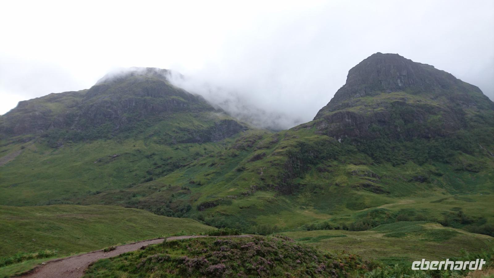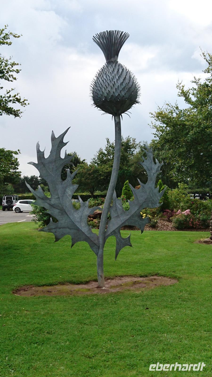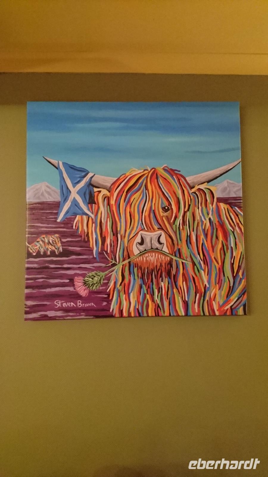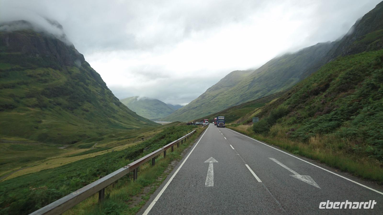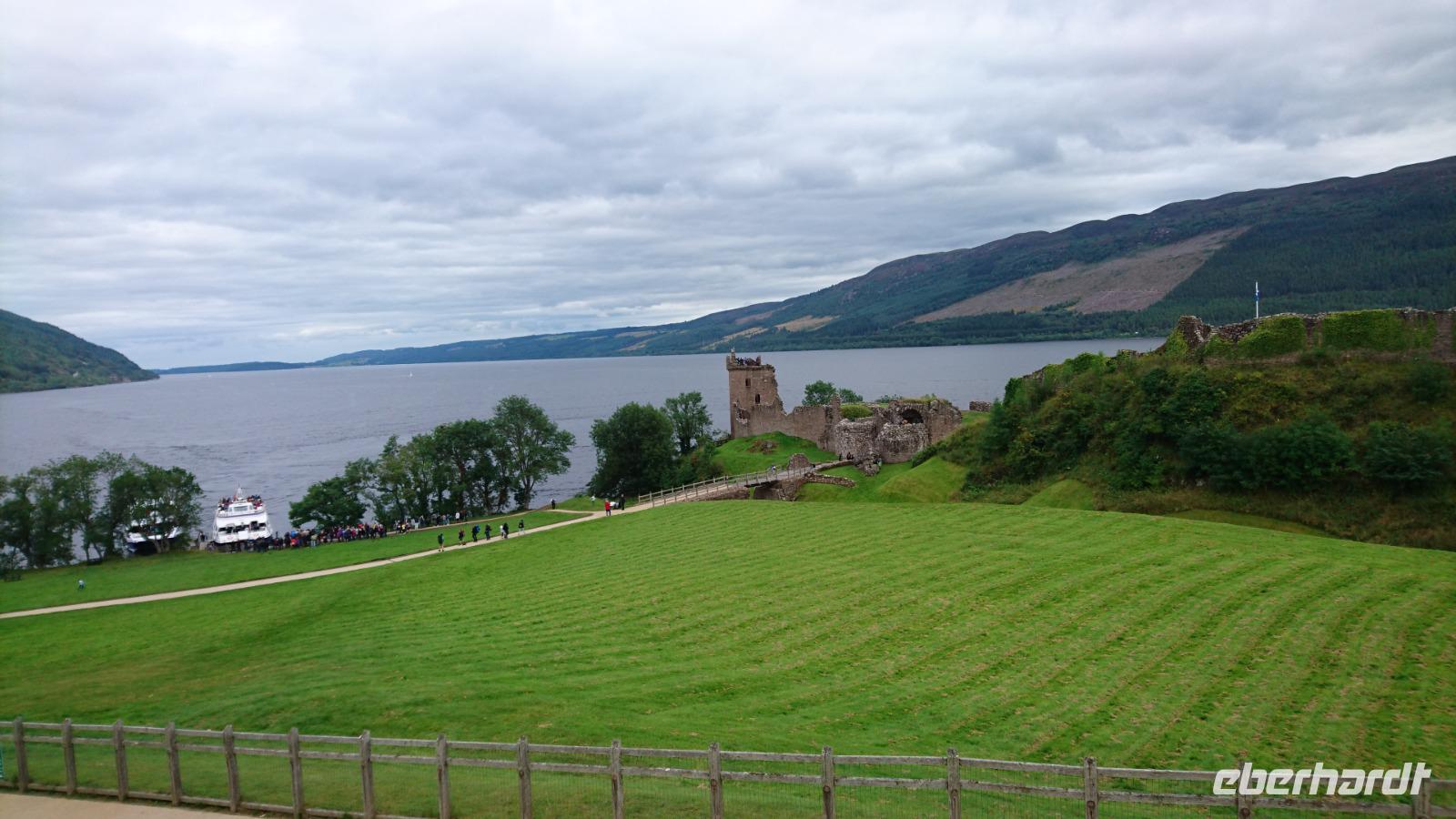 Womit beginnt man einen schönen und sicher wieder rund werdenden Reisetag am Morgen nach dem Frühstück und der Verladung der Koffer? Mit einem frohen Lied. Nein, wir sangen nicht selbst, sondern unser Reiseleiter Stefan sang heute das Lied vom Loch Lomond, als wir nach wenigen Fahrminuten den See erreichten und seine Schönheit ein erstes Mal in Luss erleben durften, ehe wir weiter nach Inveruglas fuhren und dort nahe des alten Pumpspeicherkraftwerkes an einem neuen Aussichtsturm auf den See und den leider von Wolken verhangenen Ben Lomond eine wunderbare Aussicht hatten. Zwischendurch erzählte und Stefan die unglaubliche Geschichte von der Jahrhunderte lang illegal arbeitenden Whiskybrennerei mitten auf einer Insel im See, die später in einem Ort nahe des Sees legal ihren Betrieb fortsetzte und heute Whisky mit dem Namen des Sees überall in der Welt anbietet. Unser weiterer Weg führte uns ins Glen Coe, einem wunderbaren Tal südlich des Caledonia Canals, wo einst der erste schottische Whisky gebrannt worden sein soll, wo der auch in Irland bekannte Riese Finn McCool lebte und wo das schlimmste von den Engländern angezettelte Massaker an einem schottischen Clan stattfand, warum dieses wunderschöne Tal heute den Beinamen „Tal der Tränen" trägt. Nach Fotostopps und einem Besuch des Informationszentrums ging es weiter, durch Fort William, dem westlichen Ende des von Telford geplanten Caledonia Canals, zum Command Memorial mit einem verwolkten Blick auf den höchsten Berg der Insel Großbritannien, den Ben Nevis, weiter nach Fort Augustus, wo wir uns eine alte und immer noch in Betrieb befindliche Schleusentreppe anschauten, zum Urquhart Castle am sagenumwobenen Loch Ness. Wir hatten zwar Haribo-Bärchen dabei, aber leider wollte Nessi nicht herauskommen und so schauten wir uns eben die Castle-Ruine und den unter die Haut gehenden 8-min-Film über 1.000 Jahre des Castle an, stärkten uns mit einem Imbiss. Auf der weiteren Tour entlang des alten, schon von den Römern überdachten und später genial zwischen den langgezogenen Seen gegrabenen Kanal, kamen wir nahe an Inverness heran, dem östlichen Ende des Kanals, fuhren mitten durch die Berge und erreichten schließlich die verschlafene kleine Ortschaft Newtonmore und damit unser Highland-Hotel, die einzige Attraktion des Ortes, wo wir in modern-alte Zimmer einzogen, später das Abendessen und sehr günstige Getränkepreise an der Bar genossen, um dann noch Callum Wallace, einem Künstler und Musiker, den Stefan schon einige Jahre kannte, zu lauschen, weil er direkt in der Bar für die sehr gute abendliche Unterhaltung sorgte.