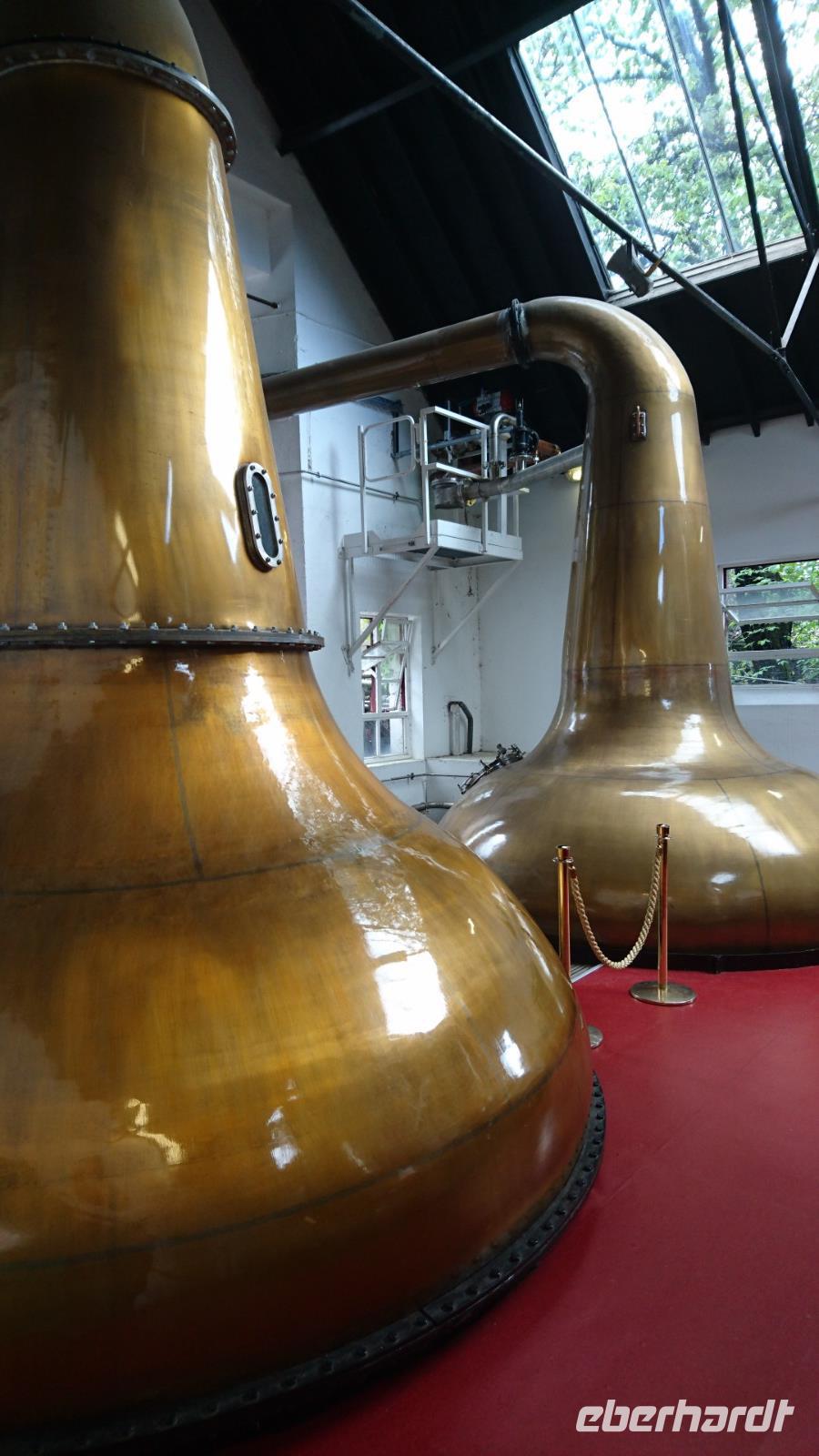 Morgendliches Frühstück ist wichtig. So speisten wir wie die Könige, um für unseren ersten Programmpunkt des heutigen Tages gewappnet zu sein. Zuerst hieß es wieder einmal, die Koffer zu verladen, und dann ging es über schmale Straßen quer durch die Highlands zur Destillerie von Dalwhinnie, die wir heute leider nur von außen sahen, denn unser Ziel war Pitlochy, eine Kleinstadt an der Highlandroute von Edinburgh hinauf nach Inverness und gleichzeitig Heimat eines wunderbaren Castle und einer sehr alten Destillerie, deren Name aus dem Gälischen kommt und „Fluss des Otters" bedeutet. Blair Athol. Diese dem Bell-Konzern und damit heute Diagero, dem multiglobalen Unternehmen für alle Arten von Spirituosen gehörende Destillerie verweist auf eine alte Geschichte und ebenso auf ein Destillationsverfahren, welches heute nur noch von wenigen Whiskyherstellern so rein und einfach genutzt wird. Wir hatten die Gelegenheit, mit Jamie, unserem dortigen Guide, und der Simultan-Übersetzung von Stefan den gesamten Prozess der Whiskyherstellung im doppelten Destillationsverfahren von Schottland nicht nur erläutert, sondern dinglich zu sehen zu bekommen, ehe wir uns dann über dem kleinen Verkaufsraum, in dem auch extra für die beliebte Serie „Game of Thrones" destillierte Whiskys verschiedener zum Diagero-Konzern gehörender Destillerien in Schottland angeboten wurden, den reinen Whisky von Blair Athol zu probieren. Das ist etwas Besonderes, denn aufgrund dessen, dass rund 95% der dort destillierten Alkohole zur Herstellung anderer, meist Blended Whiskys, genutzt werden, ist ein echter Blair Athol Single Malt schon etwas Besonderes. Nachdem wir nun wussten, wie er schmeckt, ging es weiter in den kleinen Ort Dunkeld. War Pitlochy in der kurzen Freizeit vor dem Destillenbesuch schon interessant, wirklte Dunkeld nun beschaulich. Die Kathedrale allein ist sehenswert, der River Tay am Ortseingang bietet schöne Plätze zum Verweilen und die dortige Brücke ist heute noch der Stolz der Bewohner, denn sie ermöglichte einst, dass die Hochland-Rinderherden, die sich auf ihrem Werge zu den Schlachtbänken in Edinburgh hier vereinigten, nicht mehr den Fluss durchschwimmen mussten und dabei viele Tiere ums Leben kamen, sondern einfach und verlustarm über die Brücke getrieben werden konnten. Aus Dunkeld kam auch eine Standard-Elle. Leider war der kleine Laden, wo wir heute mehr darüber erfahren hätten können, geschlossen, aber Stefan wusste einiges zu berichten und so fuhren wir ohne das Gefühl ab, etwas verpasst zu haben. Unser Weg führte uns nun immer weiter nach Süden, jedoch östlicher, als unser Weg vorher in den Norden. Nahe Edinburgh überquerten wir den Firth of Forth, und zwar über die Queensferry Quering, die Firth of Forth New Bridge, hatten dabei einen wunderbaren Blick auf die Firth of Forth Roar Bridge und die imposante Firth of Forth Railroad Bridge. Natürlich fuhren wir kurz darauf noch zum Aussichtspunkt für die drei Brücken und konnten schöne Fotos machen, ehe wir hinein in die tosende schottische Hauptstadt kamen und dort mitten in der Innenstadt, unweit der Royal Mile mit Stefans bekannter Unterstützung unser Hotel für die kommenden zwei Nächte bezogen, bald dort zu Abend aßen und noch etwas in die Stadt gingen. Immerhin fand nun eben das Edinburgh Fringe, das Laienkünstler-Festival statt, welches nicht nur viele Künstler, sondern auch viele zusätzliche Touristen und Besucher anlockte. Leider auch düstere Gestalten und so kam einem unserer Gäste leider an jenem schönen Abend in dieser pulsierenden Stadt seine Brieftasche abhanden. Daraufhin wurden Karten gesperrt und Anzeige erstattet, doch auch wenn wir dem Betroffenen alles Gute wünschen, nahm niemand an, dass das Gestohlene einst zurückkehrt. Zum Glück verfügte er noch über einen Reisepass an anderer Stelle im Gepäck, sodass der Rückreise, auch aufgrund der geteilten Finanzen, nichts im Wege stand. Trotzdem wieder einmal ein Hinweis, dass Vorsicht stets geboten ist, denn auch wenn die Kriminalität in Schottland nicht anders hoch ist, als in Deutschland, sind wir dort Touristen, damit Ziele. Wir sollten uns auch so benehmen und wachsam(er) sein. Hoffentlich würde dieses diebische Geschehen nun nicht die letzten Reisetage überschatten? Wir nahmen es an und ruhten uns für den letzten Schottlandtag aus.
