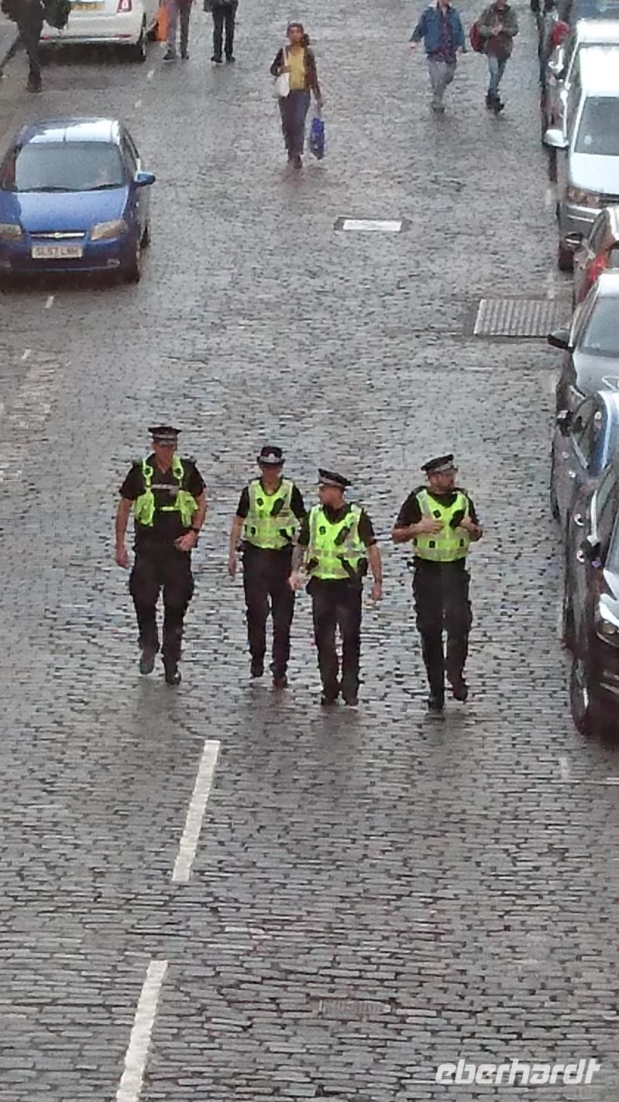 Hatten einige am gestrigen Abend die Gelegenheit genutzt, das Abendessen privat in die Innenstadt zu verlegen, so trafen wir uns doch heute alle beim Frühstück. Es hieß schon, Abschied nehmen, denn ein Reisegast trat schon heute seine Heimreise an. Für uns andere begann der Tag mit der Stadtrundfahrt und unserem örtlichen Guide, der uns aufgrund der vielen Festivalsperrungen in der engen Innenstadt Teile Edinburghs zeigte, die sonst kaum ein Tourist zu Gesicht bekommt. Nachdem wir nun Altstadt, Neustadt, sogar den Liegeplatz der letzten königlichen Jacht Britannia sahen, war es Mittag und wir besuchten gemeinsam das Edinburgh Castle, kochen durch alte Mauern, genossen eine schöne Aussicht auf die schottische Hauptstadt und traten dann in unsere gut bemessene Freizeit über. Am Abend nach vielen tollen Erlebnissen trafen wir uns wieder zum Abendessen und die meisten von uns machten sich danach auf, um das Edinburgh Tattoo zu besuchen. Ein Erlebnis schlechthin, bei dem Musikkapellen und Tänzer/Schausteller aus vielen Ländern weltweit jedes Jahr ein Feuerwerk von Musik und Lebensfreude im Takt des Gleichschrittes herüberbringen, dazu Lichtspiele auf der Esplanade und an der Castlefront zu sehen sind und alles zum Schluss mit einem eindrucksvollen Feuerwerk abgeschlossen wird. Dass die letzten zehn Minuten vom Regen geprägt wurden, störte uns fast nicht und danach traten wir mit den vielen hunderten abendlichen Tattoo-Besuchern individuell den Heimfußweg zum Hotel an, vorbei an vielen noch offenen Pubs, in dem der eine oder andere noch ein schottisches Abschiedsgetränk zu sich nahm, ehe sich am kommenden Morgen die Wege von Bus- und Fluggästen zur Heimreise hin trennen würden. Doch vorher wurde noch einmal geschlafen.