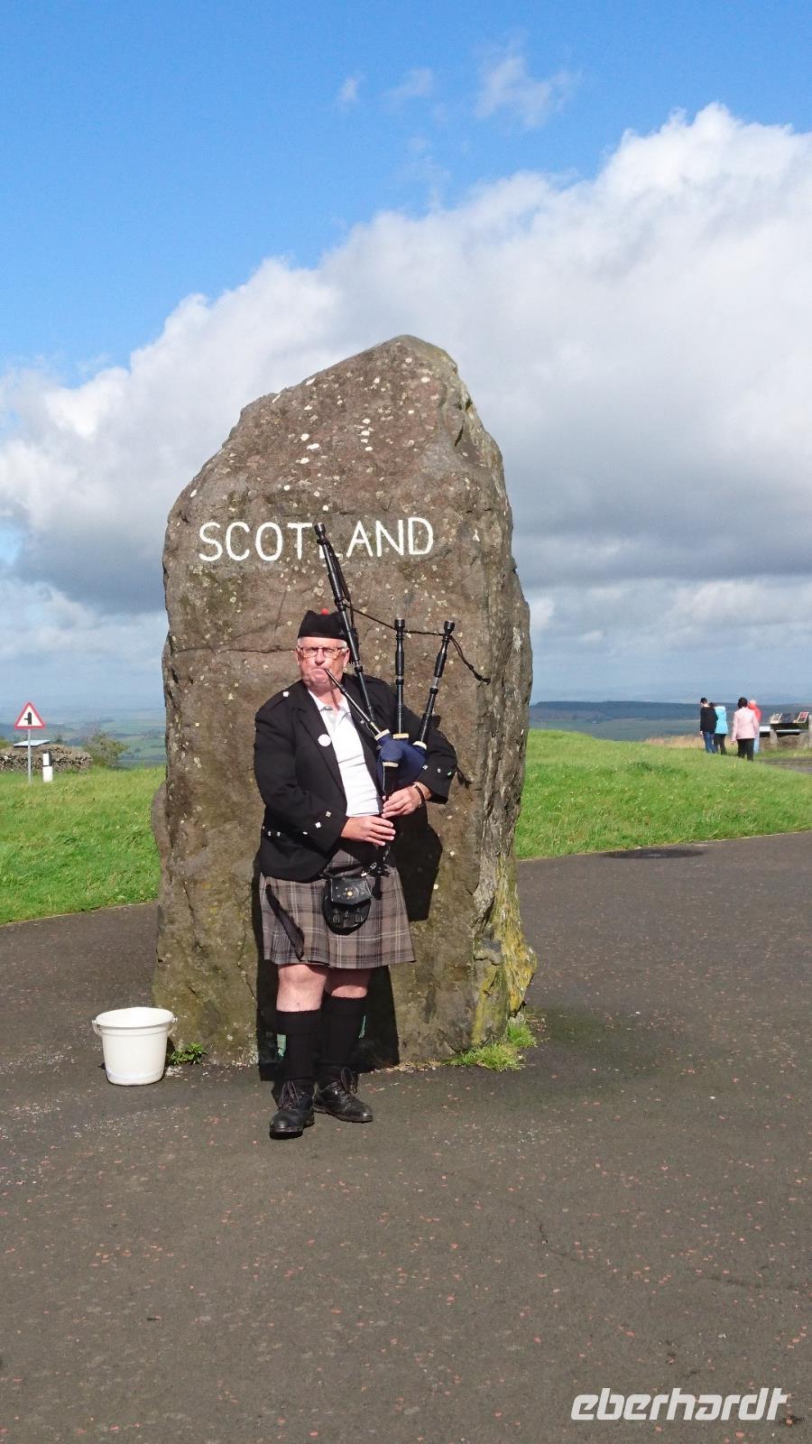 Dass eine Reisegruppe sich untereinander und mit ihrem Reiseleiter und Busfahrer gut versteht, zeigt sich auch darin, dass alle später am Tage abreisenden Fluggäste noch einmal am Morgen zum Bus kamen und sich von den Abreisenden verabschiedeten, später auch mitteilten, dass sie gut am Flughafen ankamen und die Heimreise beginnen könne. So fuhren wir nach Frühstück und Kofferverladung beschwingt, wenn auch traurig aufgrund der dem Ende entgegengehenden Reise auf unsere letzte große Fahrt durch Schottland und England. In der schottischen Grenzstadt Jedburgh shoppten wir noch ein wenig in den beiden dort gelegenen Woolen Mills, schauten uns ebenso die Ruine der alten Grenzkathedrale an und fuhren dann weiter zur schottisch-englischen Grenze, wo direkt am Grenzstein einer der besten schottischen Borderpiper seine Kunst mit dem Dudelsack demonstrierte, ehe wir weiter durch England mit Mittags-Imbiss-Zwischenstopp an der Servicestation Washington nach York fuhren. Hier hatten wir noch etwas Zeit und Stefan zeigte uns die alte englische Stadt mit ihren vielen verwinkelten Gassen, der schönen Kathedrale, die auf 1080 zurückgeht, und ließ uns auch noch etwas Freizeit zwischen Nationalgalerie, Stadtmauer, Königshaus, Theater, Stonegate und Kopfsteinpflaster, ehe wir wieder im Bus saßen und weiter zum Fährhafen in Kingston upon Hull fuhren, dort durch Stefan und Roy eingecheckt wurden, gemeinsam durch die Sicherheitsschleuse fuhren, dann zu Fuß auf die Fähre gen Rotterdam gingen, während Roy den Bus allein hineinfuhr, dort unsere Kabinen bezogen, individuell im großen Buffetrestaurant zu Abend aßen und uns den Amüsements an Bord hingaben, ehe wir uns von der leichten Bewegung des Schiffes auf der Nordsee in den Schlaf wiegen ließen, in dem wir sicher von all den schönen Erlebnissen der letzten Tage in England, Wales und Schottland träumten und somit wohlig ruhten.