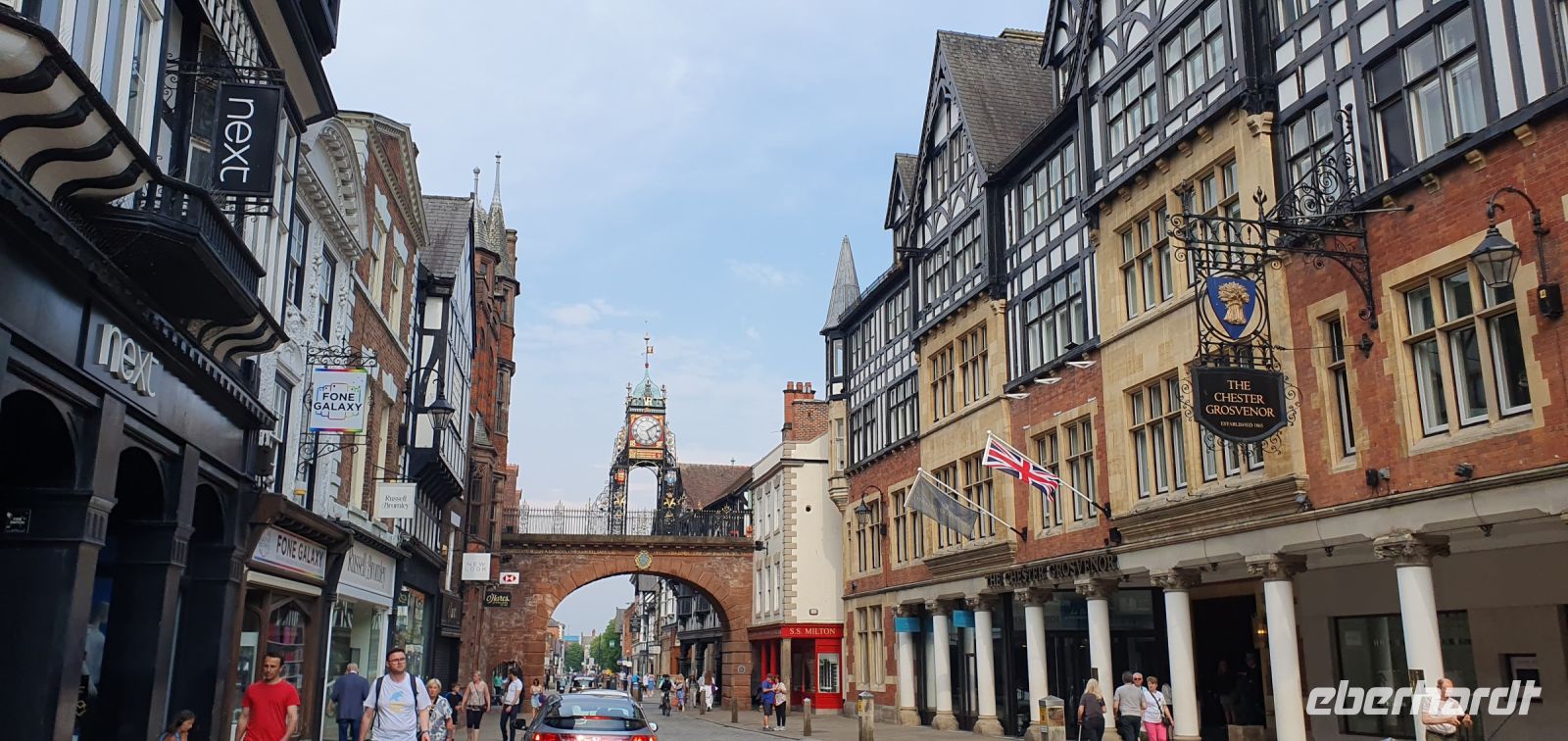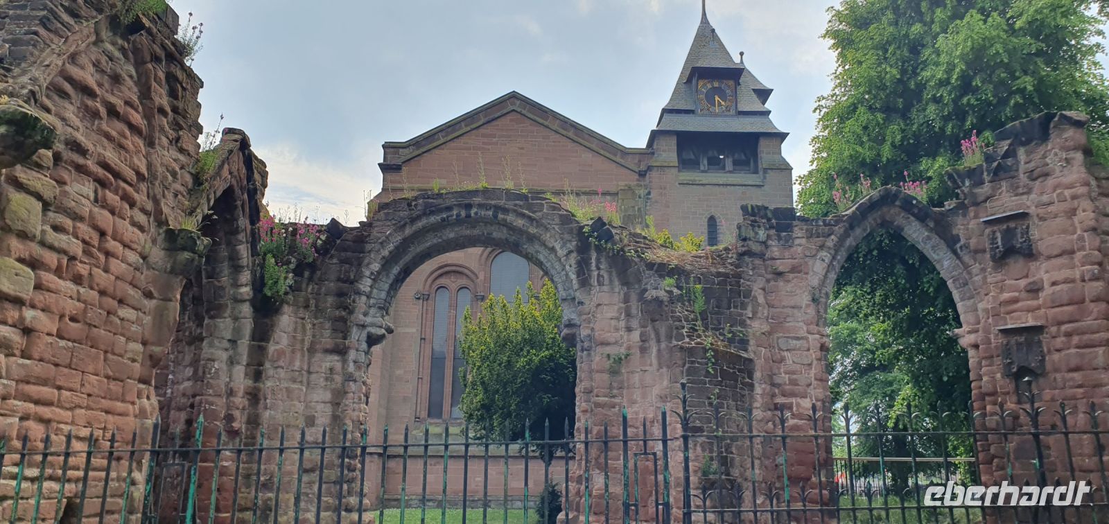 Die Sonne begrüßt uns heute morgen- das ist gut, denn wir wollen das Arley Arboretum besuchen, einen Park mit 300 verschiedenen Baumarten und Sträuchern. Also heißt es: Koffer laden und los. Viele Gäste hatten sich an den vergangenen Tagen auch individuell in der Stadt umgesehen. Nun heißt es Abschied nehmen und auf nach Norden. Pünktlich erreichen wir unseren Park und können uns umsehen: im italienischen Garten, dem ummauerten Garten oder in den Parkanlagen mit den außergewöhnlichen (aber gott sei dank beschrifteten) Bäumen und Pflanzen. Ein Übersichtsplan hilft zudem bei der Orientierung und so finden wir uns gut zurecht. Und genießen das Zwitschern der Vögel und die Ruhe zu dieser frühen Stunde. Auch wenn er noch nicht voll blüht- der längste Goldregen-Bogen des Landes beeindruckt und ist ein schöner Abschluss unseres Besuches hier. Noch eine kleine Stärkung mit frischer Limonade, dann geht es weiter zu unserem nächsten Stopp für heute: Ironbridge. Hier gab die weltweit erste Brücke aus Eisen dem Ort seinen Namen. Mit hohen Bögen überspannt sie seit 1779 den Fluss Severn. Damals mußte noch eine Brückengebühr gezahlt werden und so besuchen wir als erstes das Zollhaus am Ende der Brücke. Gemütlich bummeln wir dann zum Busparkplatz hinunter. Hier befinden sich verschiedene Museen, die zur Geschichte der Schlucht und der Industrie erzählen und im Merrythought Village befindet sich die letzte Teddybären-Manufaktur Großbritanniens. So verbringen wir unsere MIttagspause hier und brechen nun nach Chester auf. Alle Zimmer (bis auf die vom Busfahrer und der Reiseleiterin) sind fertig und so können alle einchecken. Unsere Stadtführerin Jann wartet bereits auf uns und zu Fuss erkunden wir diese wunderschöne Stadt. Die Römer haben hier bereits ihre Spuren hinterlassen, Ausgrabungen zeigen Überreste eines Amphitheaters und Badeanlagen. Der Fluss Dee verband einst die Stadt mit dem Meer und machte sie zu einem wichtigen Handelsstandort. Bis er versandete und eine junge Stadt im Norden diese Stellung übernahm: Liverpool. Wir spazieren durch das Ost-Tor mit seinem eindrucksvollen Uhrenturm in die Innenstadt und staunen über die Fachwerkhäuser, ihre überhängenden Arkaden und die doch breiten Straßen, die am Chester Cross zusammentreffen. Vom Rathaus geht es dann zur Kathedrale und zur alten Stadtmauer weiter. Das Kaleyard Gate erzählt die Geschichte, wie Mönche endlich einen Durchgang durch die Stadtmauer bekamen, um in ihre davor liegenden Gärten zu gelangen ohne den weiten Umweg durch das Stadttor machen zu müssen. Hier verabschieden wir uns von Jann und alle genießen die freie Zeit in der Stadt. Zum Abendessen im Hotel treffen wir uns wieder und lassen den Tag langsam ausklingen.