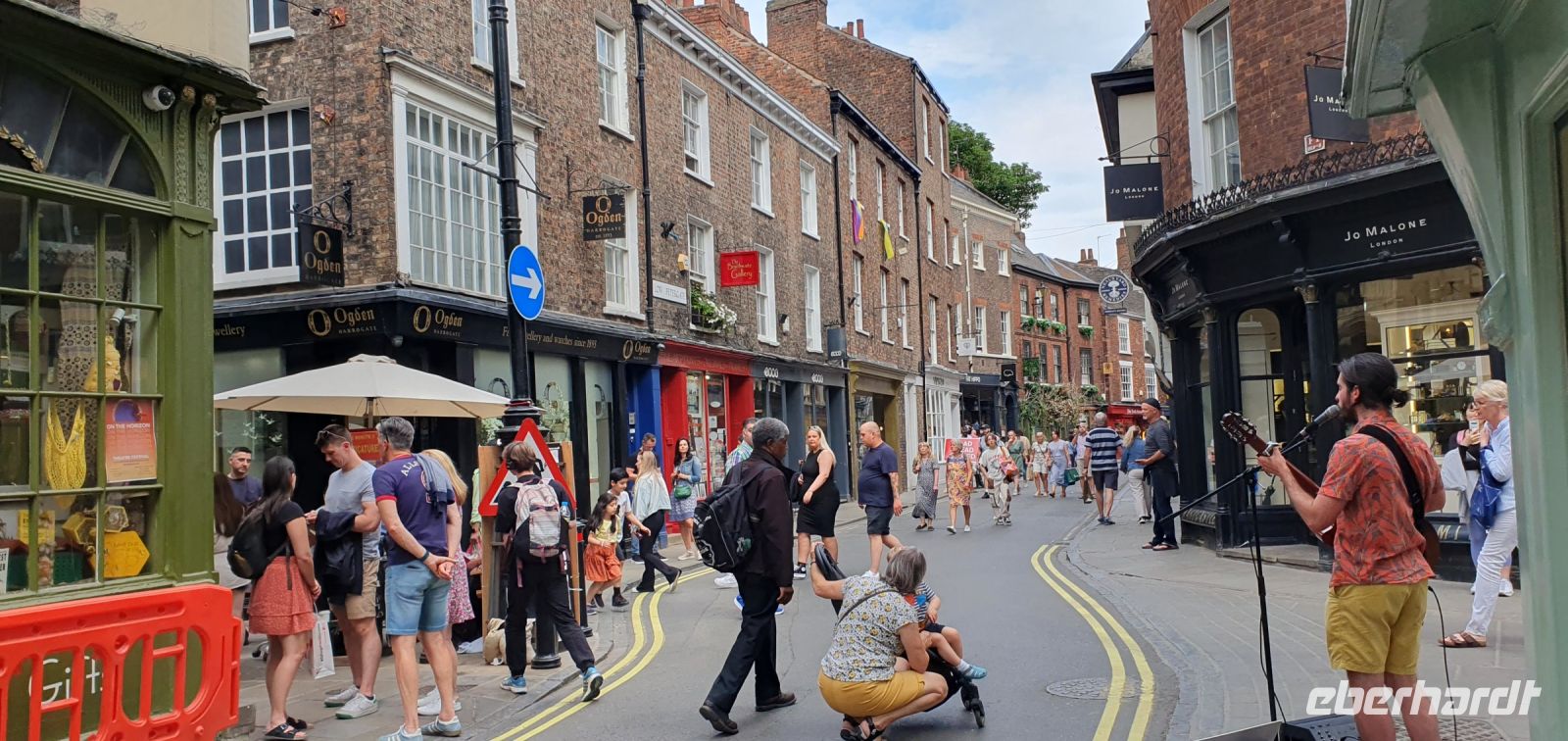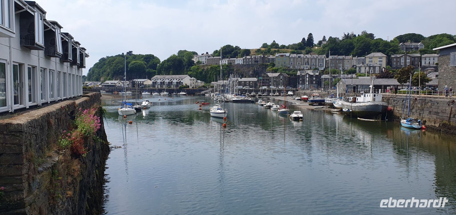 Heute geht es nach Wales. Das kleinste Land im vereinigten Königreich ist das einzige, das nicht auf der Landesflagge vertreten ist. Vielleicht war für den walisischen Drachen einfach kein Platz. Wir fahren zunächst auf die Insel Anglesey. Sie hat nichts mit Engeln zu tun sondern ist die walisische Bezeichnung für "die Insel des Ongul". Mit dem Festland verbinden sie nur zwei Brücken- die Menai- und die Pont Britannia Bridge. Mitten in dieser Meeresenge steht ein einsames weißes Haus auf einer kleinen Insel- das Fotomotiv für uns schlechthin. Also fährt uns Roy zu einem Aussichtspunkt, der den Blick auf beide Brücken und eben jenes Haus erlaubt. Von hier aus geht es zu einem Ort mit dem längsten Namen der Welt. 58 Buchstaben sind es, meist abgekürzt als Llanfair oder wie die Engländer sagen: Gogogoch. Dann reisen wir in die Geschichte: Wir besuchen eine der 4 Burgen von Edward I., die er hier erbauen ließ um die eroberten walisischen Gebiete kontrollieren zu können. Als eiserner Ring werden sie bezeichnet und so bedrohlich und furchteinflößend sind sie heute noch. Wir können uns in aller Ruhe hier umsehen, auf den Burgmauern spazieren und den Blick bis zur Straße von Menai genießen. Viele Ausstellungen erzählen vom frühen Leben hier aber auch von der Tradition, hier den Prince of Wales zu krönen, traditionell der älteste Sohn des Königs bzw. der Königin. Am Fusse der Burg ließ es sich wunderbar durch die Gassen bummeln bevor wir dann nach Porthmadog aufbrachen. Hier stiegen wir in den Dampfzug um, der auf der alten Strecke der Schiefer-Transporte heute die Touristen fährt. Die Streckenführung war so genial geplant, dass bis Blaenau Ffestinog das natürliche Gefälle genutzt wurde und keine Antrieb notwendig war. Hinten fuhren Pferde in ihren Wagen mit und zogen die Wagen zurück nach Porthmadog. Das übernimmt heute die Dampflok und wir genießen das Flair und die Fahrt durch den Snowdonia Nationalpark. Nicht minder schön ist unsere weitere Fahrt durch das Tal des Conwy. Roy bringt uns sicher zu diesem Küstenstädtchen und hier besuchen wir natürlich eine Besonderheit: das Kleinste Haus des Landes. Am Fusse einer weiteren Burg des "Eisernen Ringes" spazieren wir zum Hafen und möchten ganz sicher nicht mit dem Eigentümer des "Smallest House" tauschen. Fischerboote liegen hier im Hafen, Möwen posieren geduldig für unsere Fotos und die Sonne verwöhnt uns noch einmal mit einer Extra-Portion. So "aufgeladen" fahren wir zurück nach Chester und am Abend bringt der ersehnte Regen endlich auch etwas Abkühlung. Das Abendessen im Hotel lassen wir uns schmecken und dann zieht es einige noch in die Stadt...