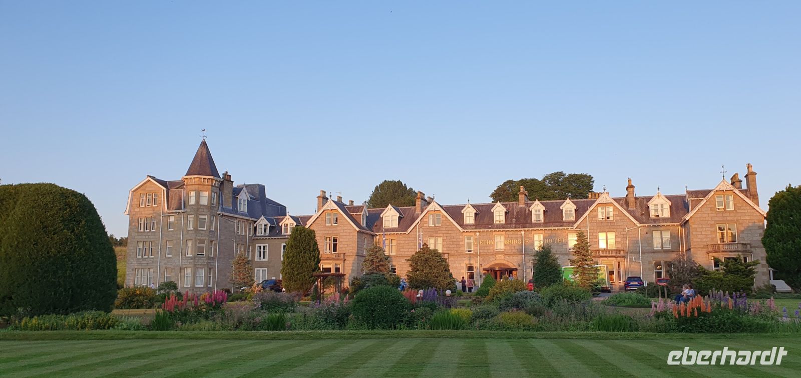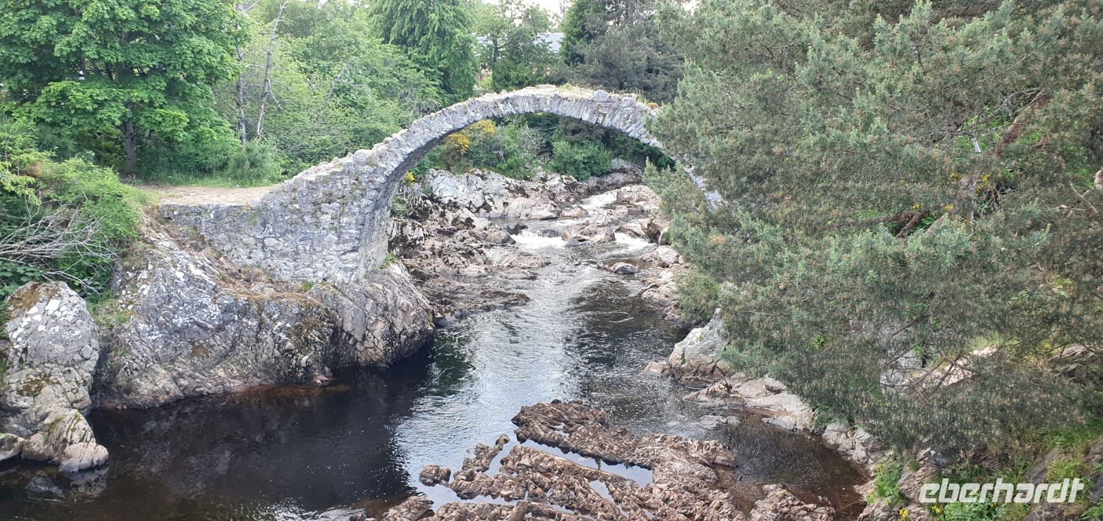 Die Highlands präsentieren sich heute von ihrer besten Seite, immer wieder könnten wir für Fotostopps anhalten. So belassen wir es beim Blick auf das Loch Tulla, spazieren ein wenig auf Moor und Torfboden im Rannoch Moor bevor wir das schönste Tal Schottlands erreichen: das Glen Coe. Unfassbar die düstere Geschichte, weshalb es auch Tal der Tränen genannt wird: Mitglieder des Clans der Campbells nutzten hier das heilige Gastrecht der Mc Donalds aus und ermordeten auf Befehl des Königs alle Männer bis 70 Jahren. Sie zündeten die Hütten an und so kamen auch Frauen und Kinder in der Eiseskälte des Winters um. Noch heute gilt diese Tat als Schandfleck in der Geschichte der Campbells. Im Besucherzentrum können wir uns noch ein klein wenig umsehen und einen Blick auf und in die Torfhütte werfen, die hier originalgetreu aufgebaut wurde. Weiter führt uns unsere Fahrt nach Norden, Roy hält in Spean Bridge am Commando Memorial noch einmal an. Ein grandioser Blick auf die Berge, inklusive des Ben Nevis, des höchsten Bergs Großbritanniens, begeistert uns und auch die Geschichte des Ortes läßt kurz innehalten. Am Nachmittag erreichen wir schließlich den wohl mysteriösesten See der Welt: Loch Ness. An seinem Ufer befinden sich die Ruinen des Urquhart Castle, eingestimmt mit einem kleinen Film zur fast 1000jährigen Geschichte der Burg können wir diese entdecken. Leider läßt sich Nessie nicht blicken und so fahren wir weiter durch die Highlands. Kurz vor unserem Hotel noch ein kleiner Stopp: In Carrbridge bestaunen wir die Old Packhorse Bridge. Sie wurde 1717 gebaut und sollte den Besuch der gegenüberliegenden Kirche auch bei Hochwasser ermöglichen, inklusive der Beerdigungen. Die Seitengeländer wurden von der Flut 1829 weggerissen und so präsentiert sich sich bis heute, als stolzer Bogen über das fast schwarze Wasser des Flusses Dulnain. In Nethybridge schließlich beziehen wir unsere Zimmer im alten Herrenhaus, der Charme dieses Hauses ist einfach unglaublich. Das gemeinsame Abendessen bringt uns alle wieder zusammen und so lassen wir den Tag Revue passieren.