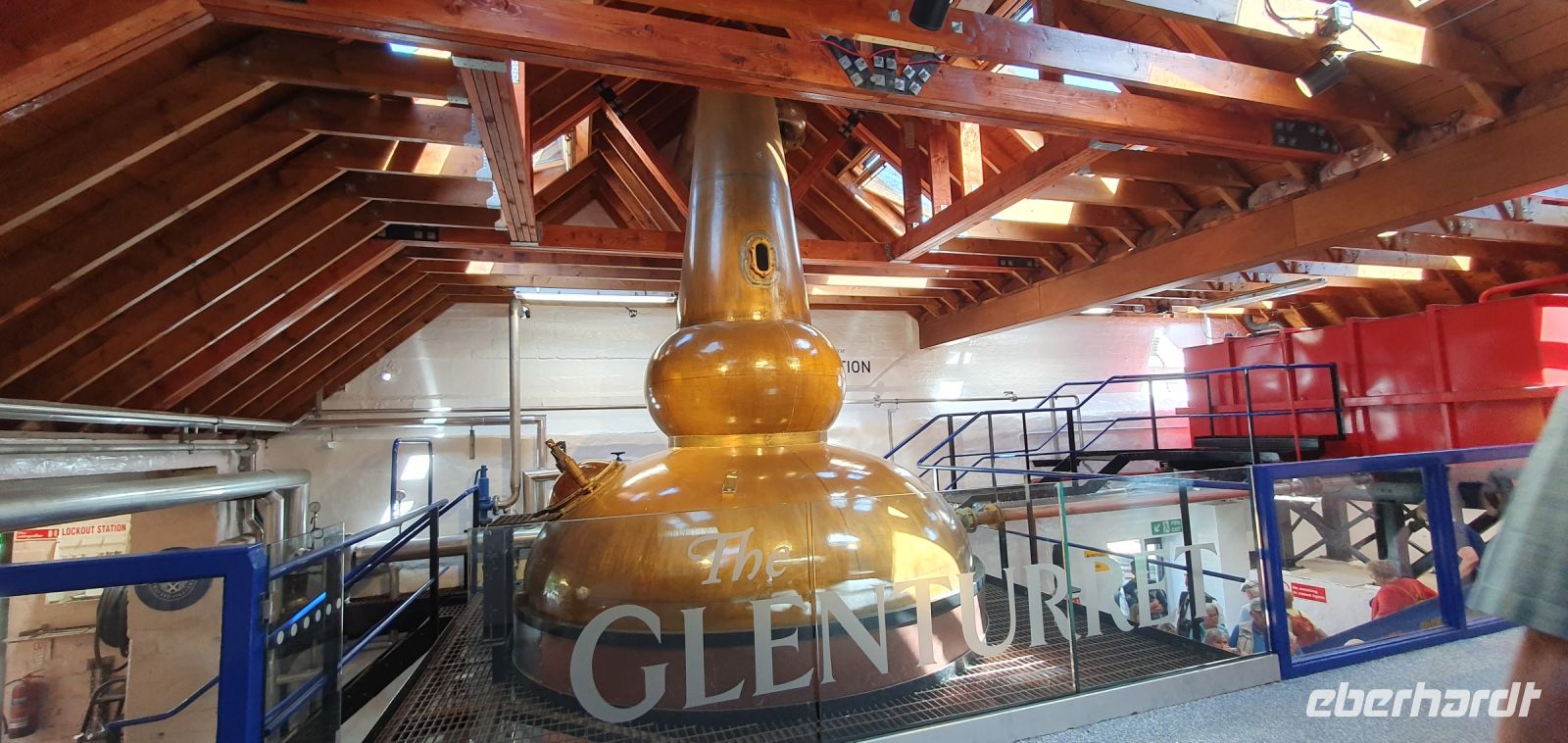 Auch heute empfängt uns strahlender Sonnenschein am Morgen. Wir besuchen zuerst Roys Castle- das wirklich so heißt - und bemerken, dass seine Abbeygale doch umbenannt werden müsste, ist eben keine Kuh...Dann geht es durch die grandiose Landschaft der Grampion Mountains. Der Caingorms Nationalpark wurde hier eingerichtet- einer von 2 Nationalparks in Schottland. Rings um den Cairn Gorm- den "blauen Berg" erstreckt er sich und ist für den Verkehr tabu. Es führt keine Straße hindurch, nur zu Fuss kann man die einzige frei lebende Rentierherde Schottlands erreichen. Sie werden von den Rangern versorgt und manchmal kann man mit ihnen auf Tour gehen. An einer der ältesten Whisky-Destillerien machen wir einen kleinen Fotostopp- zu schön die Aussicht von hier auf Dalwhinnie. So erreichen wir schließlich Pitlochry. Das hübsche Städtchen punktet mit seiner Autentizität und lokalen Anbietern und so genießen wir einen kleinen Bummel hier. Jetzt müssen wir aber weiter: wir haben einen wichtigen Termin: die Glenturret Destillerie. Also freuen wir uns an der Fahrt durch die Highlands und erreichen schließlich das Städtchen Crieff. Unmittelbar in der Nähe befindet sich die Destillerie. Wir werden herzlich begrüßt und erfahren dann von Janne alles über das Mälzen, Maischen und Brennen des "Wassers des Lebens", des Whiskys. Die großen kupfernen Brennblasen beeinflussen schon mit ihrer Form den Whisky, dazu kommt noch die Lagerung in Eichenfässern, in denen vorher Cherry oder amerikanischer Bourbon gelagert wurde. Nach 3 Jahren und 1 Tag in Eichenfässern darf sich der Spirit, der gebrannt wurde, dann auch Whisky nennen. Am Rande erfahren wir noch von Glen und Turret, den Hauskatzen, die ihren eigenes Penthaus haben und mit ihren Mäusefängen glatt im Guiness Buch der Rekorde landen würden. An den Lagerhäusern - sssst- "Quiet please- whisky sleeping" vorbei gelangen wir schließlich zur Verkostung. Nicht ohne die wunderschönen Auslagen von Lalique bewundert zu haben, denn Glenturret und Lalique arbeiten zusammen, haben sogar ein Sterne- Restaurant hier. Die Verkostung erweist sich als sehr lecker und so wandert die eine oder andere Flasche in unsere Taschen. Dann fährt uns Roy zur Ostküste- Dundee ist unser Ziel. Die Stadt der drei J- Jam, Jute und Journalismus. Jam, weil hier die industrielle Abfüllung von Marmeladen ihren Anfang nahm, Jute, weil hier die Juteherstellung und Verarbeitung ihren Hauptsitz hatte (was übrigens ohne das Waltran nicht möglich gewesen wäre, erst das machte die Jute verarbeitungsfähig) und Journalismus weil hier etliche Zeitungen ihren Sitz haben und sich viele ihrer Comics als Figuren im Stadtbild wiederfinden lassen. An der RRS Discovery, dem Schiff, mit dem Scott zu seinen Arktis-Expeditionen aufbrach, können wir parken und jeder kann entscheiden, was er/sie anschauen möchte, die Discovery oder lieber das V&A, das Design-Museum oder lieber ein Bummel an der Promenade des Tay. So vegeht die Zeit wie im Flug und unser Hotel wartet bereits auf uns. Wir checken im "Indigo" ein. Gebaut in einer alten Fabrikhalle bietet es Platz ohne Ende und eine Ausstattung, die keine Wünsche offen ließ. Zum Abendessen treffen wir uns wieder und ein leckeres Menü beendet unseren Tag- oder auch nicht, etliche zieht es noch in die Stadt am Abend. Also dann, bis morgen.