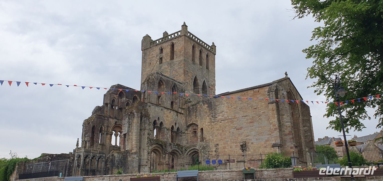 Heute geht es zurück in die Lowlands, genauer gesagt in die "Borders", das Grenzgebiet zwischen Schottland und England. Viele Kriege und Schlachten wurden hier geschlagen, immer auch Ziel der Angriffe: die Grenzland-Abteien. Sie wurden geplündert, zerstört aber auch immer wieder aufgebaut und vergrößert. Wir besuchen die Melrose Abbey, ein Kloster der Zisterzienser. Vorher aber stoppen wir an einer beeindruckenden Brücke: dem Leaderfoot Viaduct. Die Eisenbahnbrücke war noch bis 1965 in Betrieb, mußte dann aber wegen der massiven Hochwasserschäden aufgegeben werden. 38 Meter erhebt sie sich über den Tweed, spannt sich in 19 Bögen über den Grenzfluss. Daneben die alte Straßenbrücke aus dem Jahr 1776 und die neue Brücke, über die wir gefahren sind. Alle drei werden Tripontium genannt- lateinisch für drei Brücken. Weitergeht unsere Fahrt nach Melrose. Das Städtchen wurde vor einiger Zeit zum schönsten Ort Schottlands gewählt, davon können wir uns gleich selber überzeugen. Wir stoppen neben der Abbey und können uns dann umsehen, zwar ist die Abbey selber noch abgesperrt, da umfangreiche Bauwerks-Prüfungen stattfinden, wir können trotzdem die vielen Steinmetzarbeiten bewundern- äußerst ungewöhnlich für Zisterzienser, die ja für Schlichtheit und Konzentration auf das Wesentliche bekannt sind. Neben der Abbey ein besonderer Stein: Hier soll das Herz von Robert the Bruce begraben sein. Ein Besuch des kleinen Museums und ein Spaziergang über den Königs-Friedhof (wer findet das Dudelsack-spielende Schwein am Dach der Abbey?) runden den Besuch hier ab und dann ist Zeit für einen Bummel durch Melrose, ein Eis oder ein Besuch der Priory-Gardens. Weiter geht unsere Fahrt nach Jedburgh. Hier steht die zweite der vier Grenzlandabteien und es ist Zeit für einen Kurzbesuch. Wer wollte, stattete dem Haus von Mary, Queen of Scots, einen Besuch ab. Hier wohnte sie während ihrer Flucht nach England. Das Haus ist noch in demselben Zustand, nichts wurde verändert. Auch eine Totenmaske von ihr gibt es, sie muß eine sehr schöne Frau gewesen sein. Dann heißt es Abschied nehmen von Schottland: an Carter Bar, der Grenze zu England, empfängt uns Alan und verabschiedet uns herzlich mit einem Dudelsack-Ständchen. Mit einem Lächeln sagen wir Good Bye und setzen unsere Fahrt fort. York ist unser letztes Ziel und die A68 bringt uns dahin. Sie erweist sich als reine Achterbahn-Straße, falls also heute Nacht ordentlicher Seegang herrscht sind wir schon mal bestens vorbereitet. Am Nachmittag erreichen wir York und ein kleiner Spaziergang bringt uns vom Busparkplatz zum Tor in der Stadtmauer. Dahinter erhebt sich York Minster mit seinem Zwillingsturm. Die größte englische mittelalterliche Kirche wurde 1472 fertiggestellt- nach fast 250 Jahren Bauzeit. Natürlich schauen wir uns die neueste Statue an: Queen Elisabeth II. wurde hier oberhalb des Eingang-Portals verewigt. Die Gasse am Minster wird Shambles genannt, die Fachwerkhäuser sind zum Teil aus dem 14. Jahrhundert und ihre Stegböden reichen weit in die Straße hinein, überdachen sie quasi. Alle genießen die Zeit und und am Bus gibt es noch eine kleine Überraschung: Unser Jubelpaar bedankt sich bei allen für die Glückwünsche mit einem Gläschen Sekt. Am Abend erreichen wir schließlich den Fährhafen von Kingston upon Hull, checken ein und schon können wir uns an Bord unser Abendessen vom Buffet schmecken lassen. War das wieder lecker! Wer möchte kann den Sonnenuntergang verfolgen, gegen 21.15 ist sie im Meer verschwunden. Nach englischer Zeit! Wunderschön.