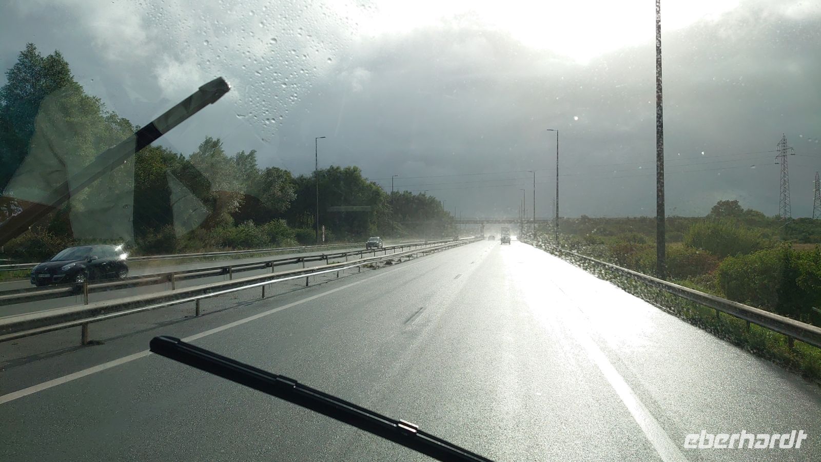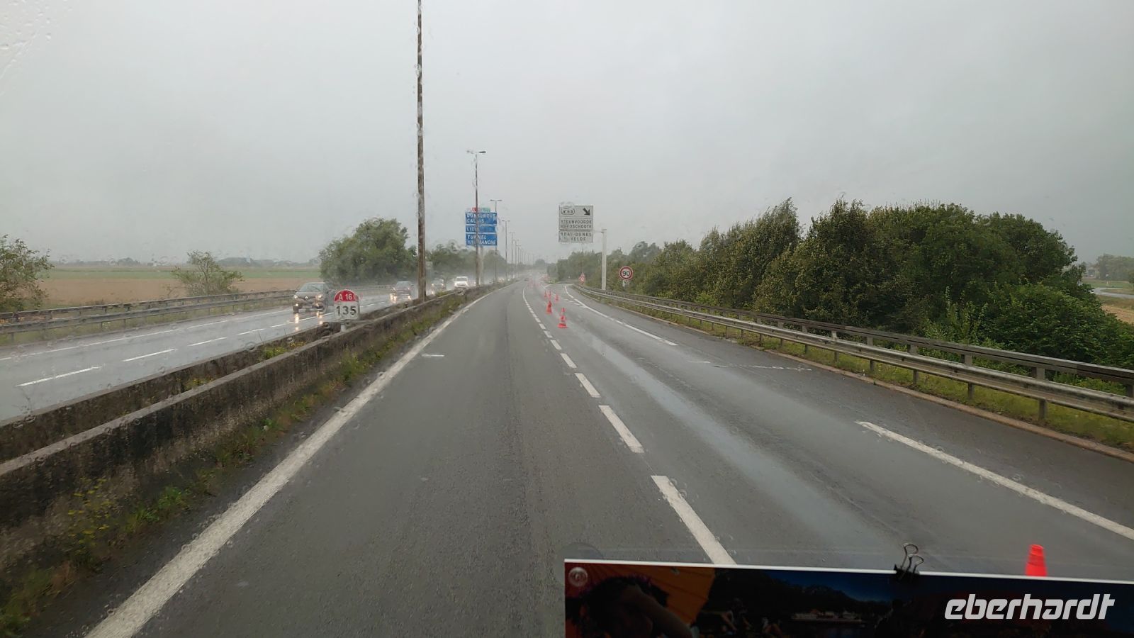 Bei Aachen haben wir Deutschland verlassen. Durch Holland, Belgien und schließlich Nordfrankreich ging es zu unserem Hotel nach Calais, wobei das Wetter sich mehr und mehr verschlechterte. Starker Wind, mitunter starker Regen, dunkle Wolken.