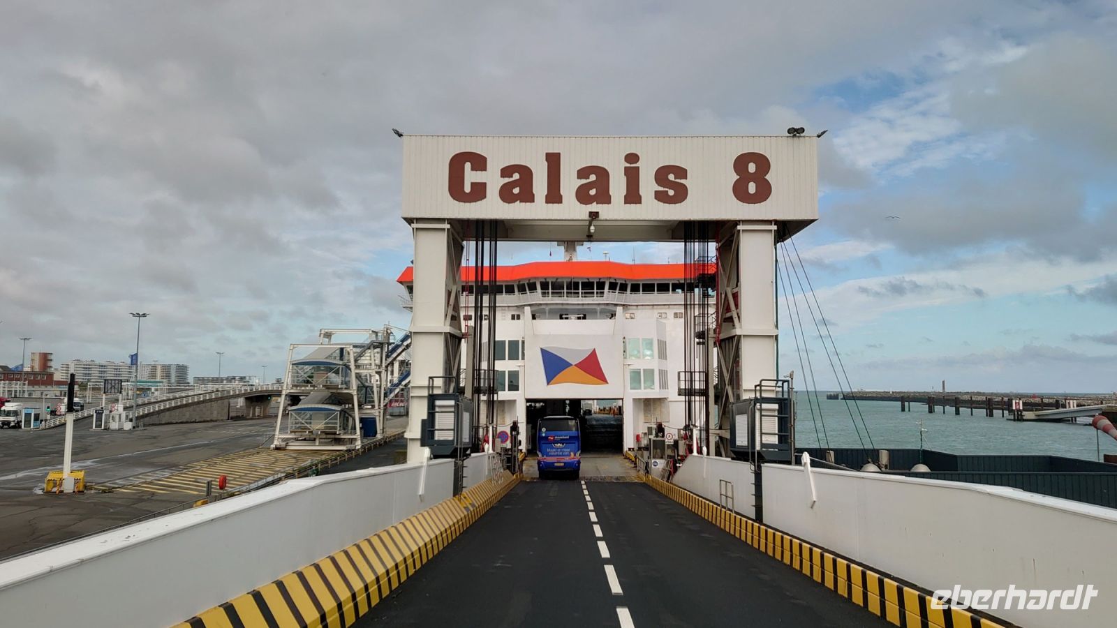 Für die Distanz zwischen Calais und Dover, die ca. 33 km beträgt, ist eine Fahrzeit von ca. 90 Minuten veranschlagt.