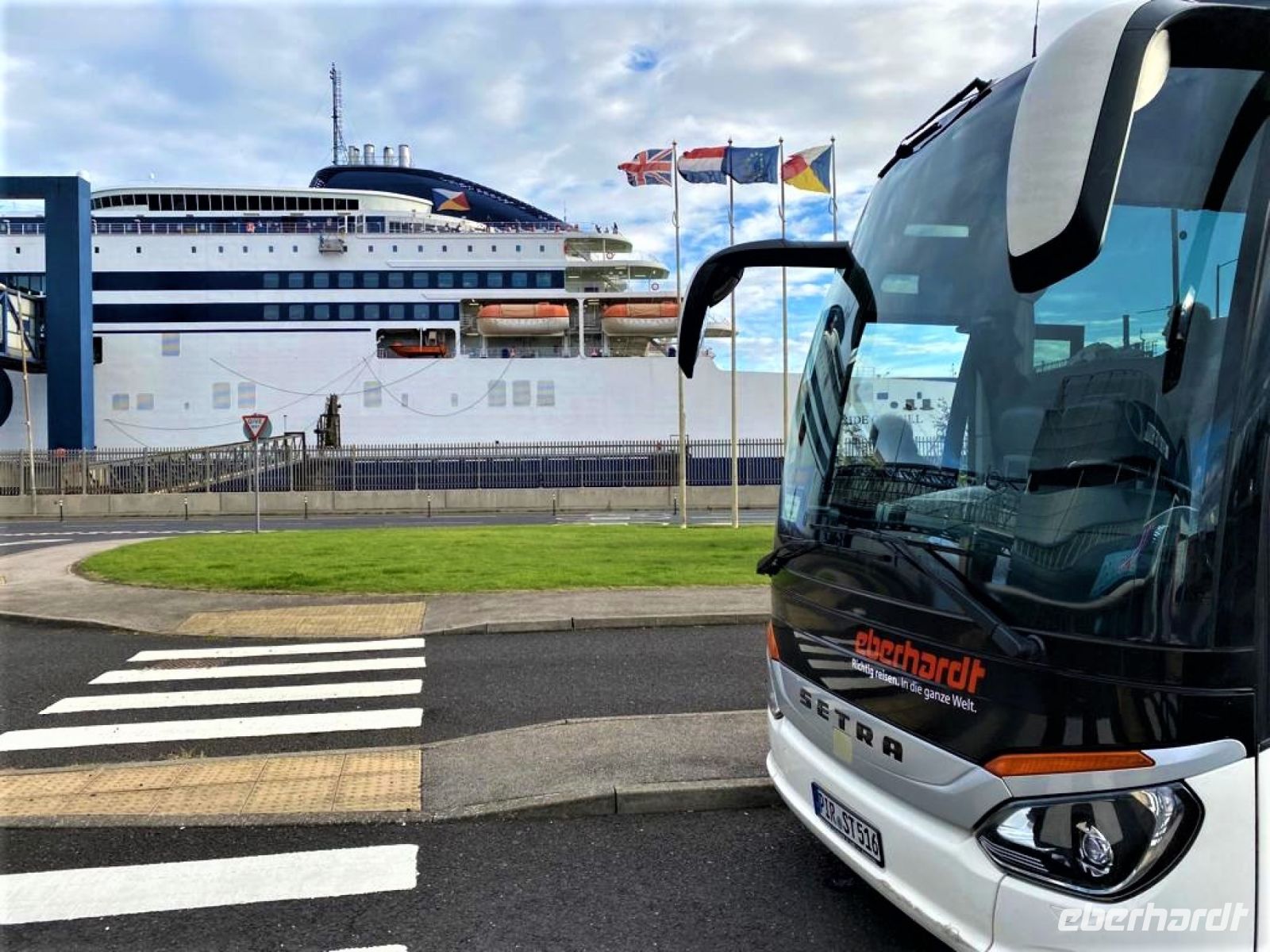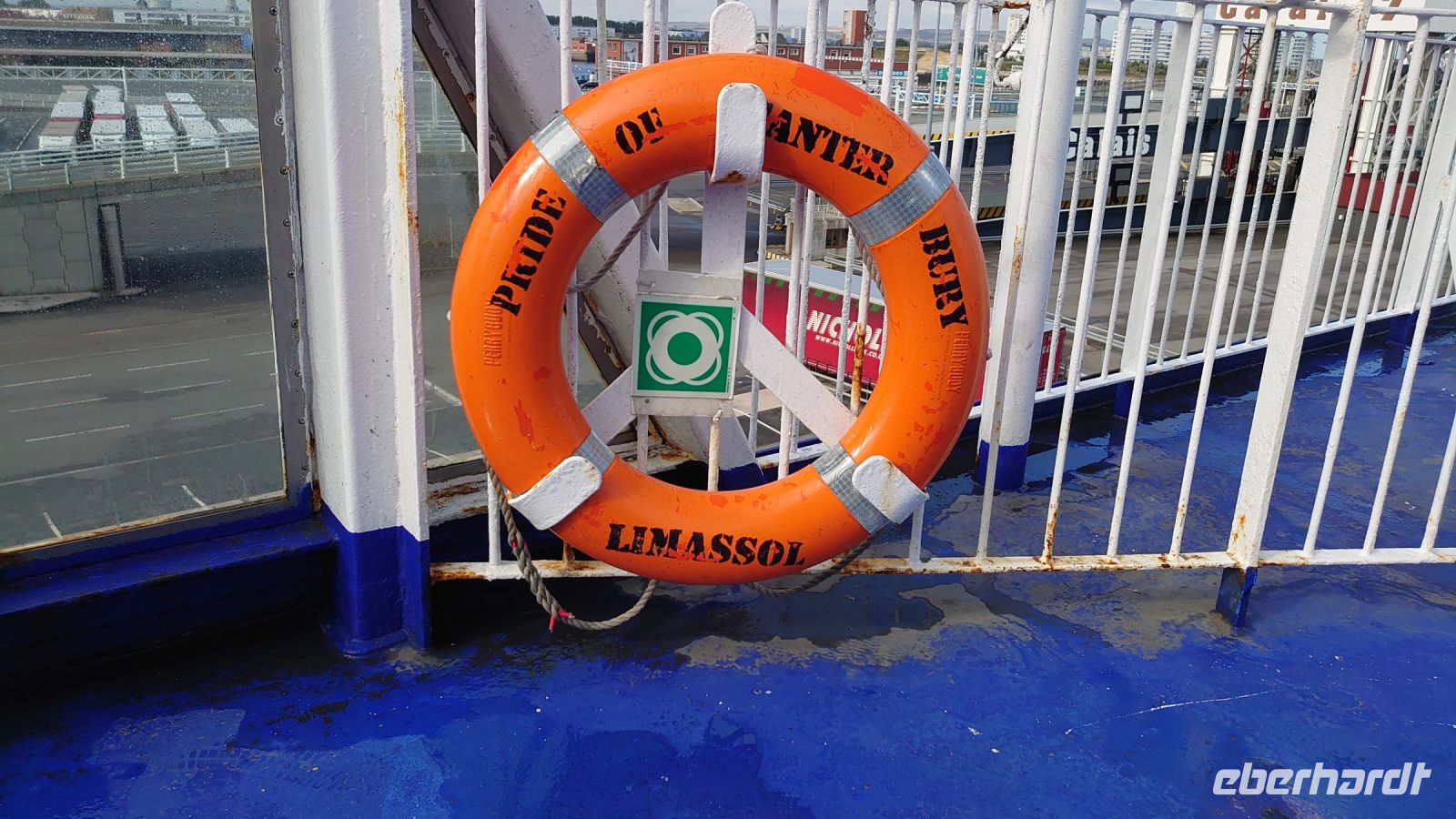 Am Morgen waren zwar noch viele Wolken am Himmel, doch Wind und Regen hatten aufgehört. Wir fuhren direkt zu Fährhafen. Es war nicht viel los. Die Größe des Fährhafens ließ aber erahnen, was zu Stoßzeitenzeiten alles los sein könnte. Pass- und Sicherheitskontrolle haben wir zügig passiert. Nun hieß es erst mal warten. Geplante Abfahrtszeit war 9 Uhr. Los ging es aber leider erst eine Stunde später. Was der Grund dafür war, wurde uns nicht mitgeteilt. Mit großer Wahrscheinlichkeit könnte es das stürmische Wetter über Nacht gewesen sein. Doch das ist reine Spekulation.