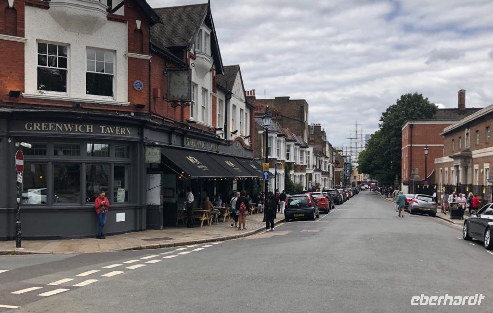 Auf dem Weg nach London versuchen wir einen kurzen Stopp beim Royal Greenwich Observatory (RGO) zu machen. Für einen richtigen Besuch reichte die Zeit leider nicht aus. Unser Bus hielt in der Nähe vom St. Marys Gate. Wir liefen vorbei am Denkmal vom William IV. in Richtung der Nachbildung von Admiral Nelsons Flaggschiff in einer überdimensionalen Flasche zu den Queens House Kolonaden. Von dort konnten wir einen Blick auf das Königliche Observatorium von Greenwich werfen. Nach einer halben Stunde waren wir alle wieder im Bus und fuhren weiter ins Zentrum von London, wo wir im Parkhaus bei der Tower Bridge unweit des weltbekannten Towers of London unsere Stadtführerin Christina trafen. Christina ist eine Künstlerin aus Deutschland, die seit 7 Jahren in London lebt. Nach einer kurzen Verschnaufpause sind wir mit dem Bus zu einer Stadtrundfahrt aufgebrochen. Für unseren Busfahrer Jörg war es keine leichte Aufgabe, unseren Bus durch die Londoner Innenstadt zu manövrieren.