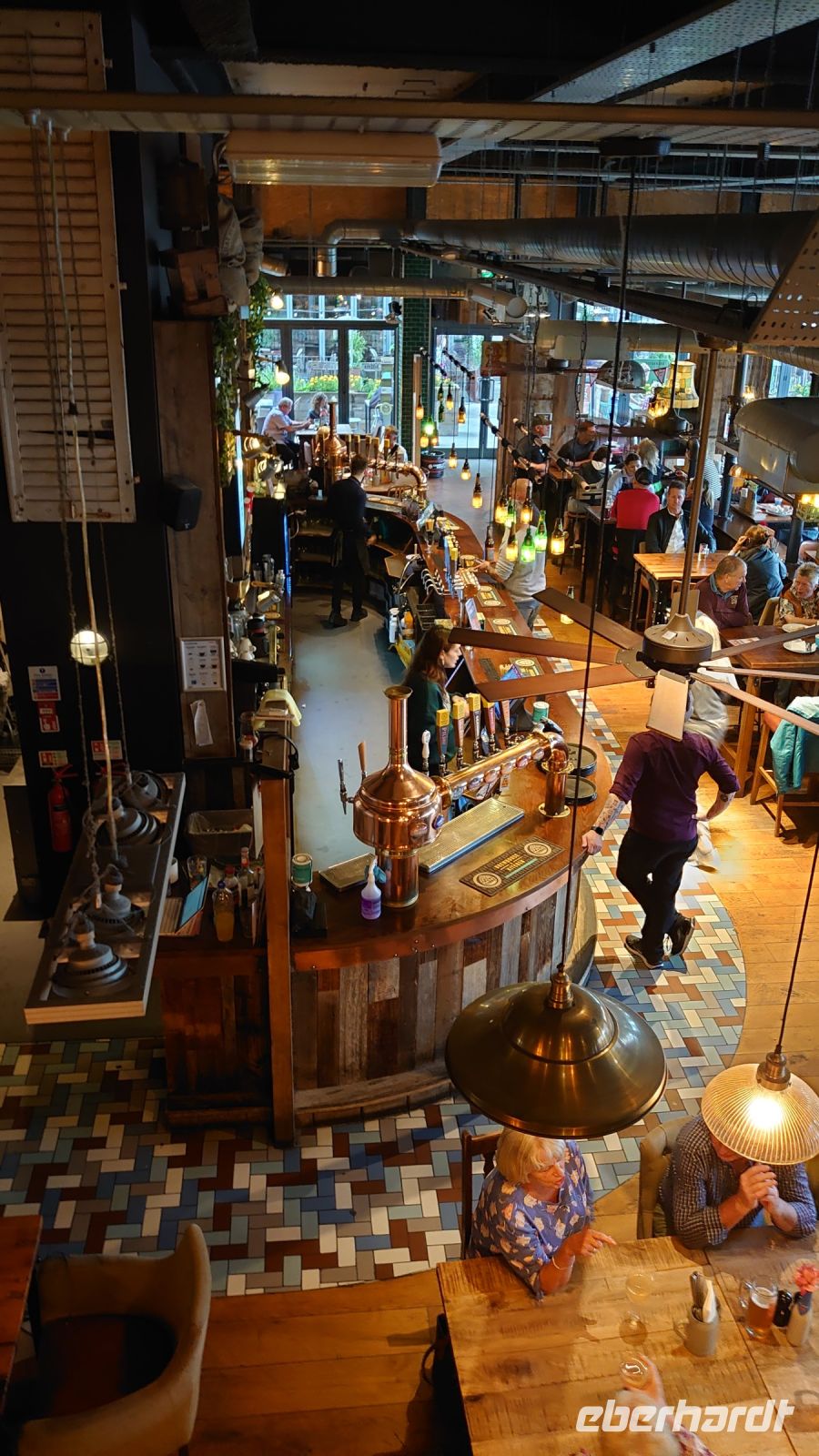Beim Afternoon Tea handelt es sich um ein britisches Ritual, das es bereits seit ca. 1840 gibt. Im Grunde genommen handelt es sich um eine Mini-Mahlzeit am Nachmittag, die den größten Hunger bis zum eigentlichen Abendessen vertreiben soll. Der Afternoon Tea besteht in aller Regel aus drei Gängen. Gang 1 besteht aus Sandwiches, im Gang 2 folgen Scones mit Clotted Cream und Konfitüre. Im dritten Gang darf man sich über Kuchen, Schokolade oder Kekse freuen. Wir hatten von allem. Jeder konnte sich nach Herzenslust bedienen. Der Wermutstropfen: Tee in Pappbechern, geht in einer Lokalität eigentlich gar nicht. Da wir aber, wie jeder gut sehen konnte, in einem Pub waren, das auch noch selbst eigenes Bier braute, waren vermutlich nicht ausreichend Porzellantassen vorhanden.
