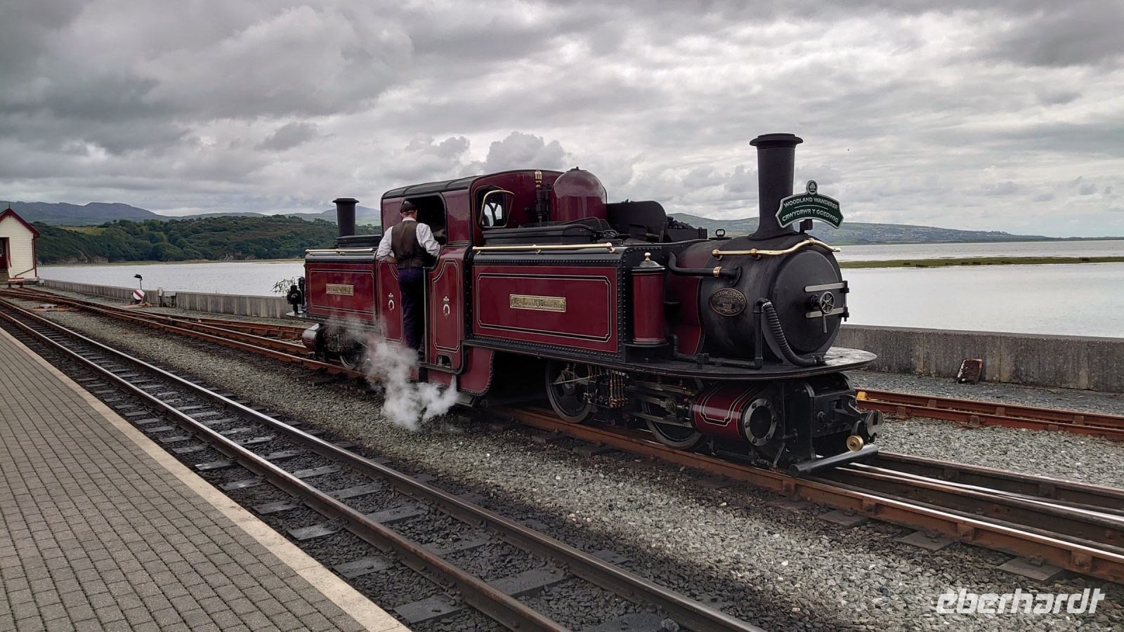 Weiter führte uns unsere Tour durch Wales nach Porthmadog, wo eine Fahrt mit einer historischen Dampfeisen-bahn nach Blaenau Ffestiniog mit der Ffestiniog Railway auf dem Plan stand. Doch bevor es losging, haben wir uns erst einmal mit Würstchen und Kaffee aus der Bordküche gestärkt. Lecker.