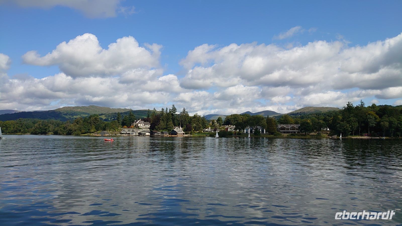 Heute führt uns unsere Fahrt zunächst in den Lake District National Park. Obwohl wir keine Messer dabei haben, wollen wir heute in See stechen, d.h. eine Bootsfahrt auf dem Lake Windermere unternehmen. Das Wetter passte, die Sonne schien, kaum Wind – alles beste Voraussetzungen für eine schöne und angenehme Bootstour. Herrlich!