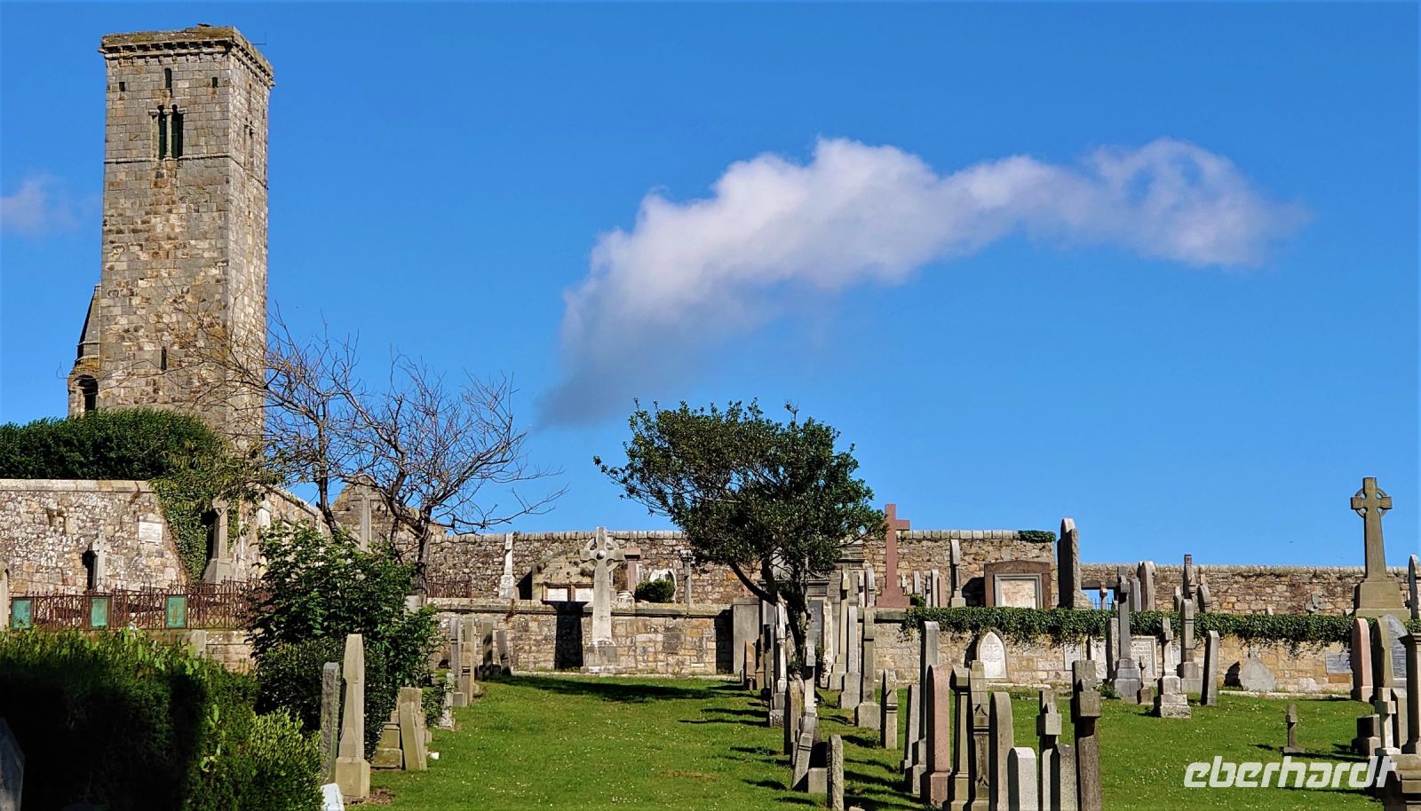 Wir stiegen hinter dem Golf Museum aus unserem Bus und spazierten bei bestem Wetter entlang The Scores zu den Ruinen der Kathedrale. Leider war Bereich der Kathedrale wegen stattfindender Baumaßnahmen für Besucher nicht zugänglich. Jedoch konnte man auch von außen einen guten Eindruck von der ehemaligen Mächtigkeit und Bedeutung vergangener Tage erahnen. Die Kathedrale wurde in den Wirren der Reformationszeit zerstört. Nur der St. Rules Tower ist nahezu unbeschadet geblieben.