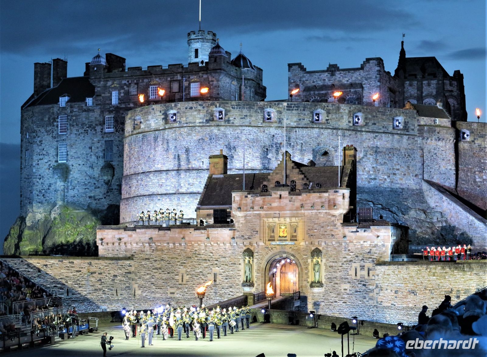 Das Royal Edinburgh Military Tattoo ist das größte Musikfestival Schottlands. Es ist Teil des Edinburgh Festivals und findet seit 1950 jedes Jahr im August auf dem Platz direkt vor dem Edinburgh Castle statt. Ursprünglich war das Edinburgh Military Tattoo ausschließlich der Militär¬musik gewidmet. Heute verfügt es über ein stark erweitertes Programm. Neben dem nach wie vor dominierenden militärischen Teil werden seit einigen Jahren auch weit-gehend zivile Tanz- und Gesangsdarbietungen gezeigt. Davon konnten wir uns überzeugen. Leider war für unseren Tag kein Überflug der Royal Air Force vorgesehen. Schade. Das wäre das Tüpfelchen auf dem i gewesen.