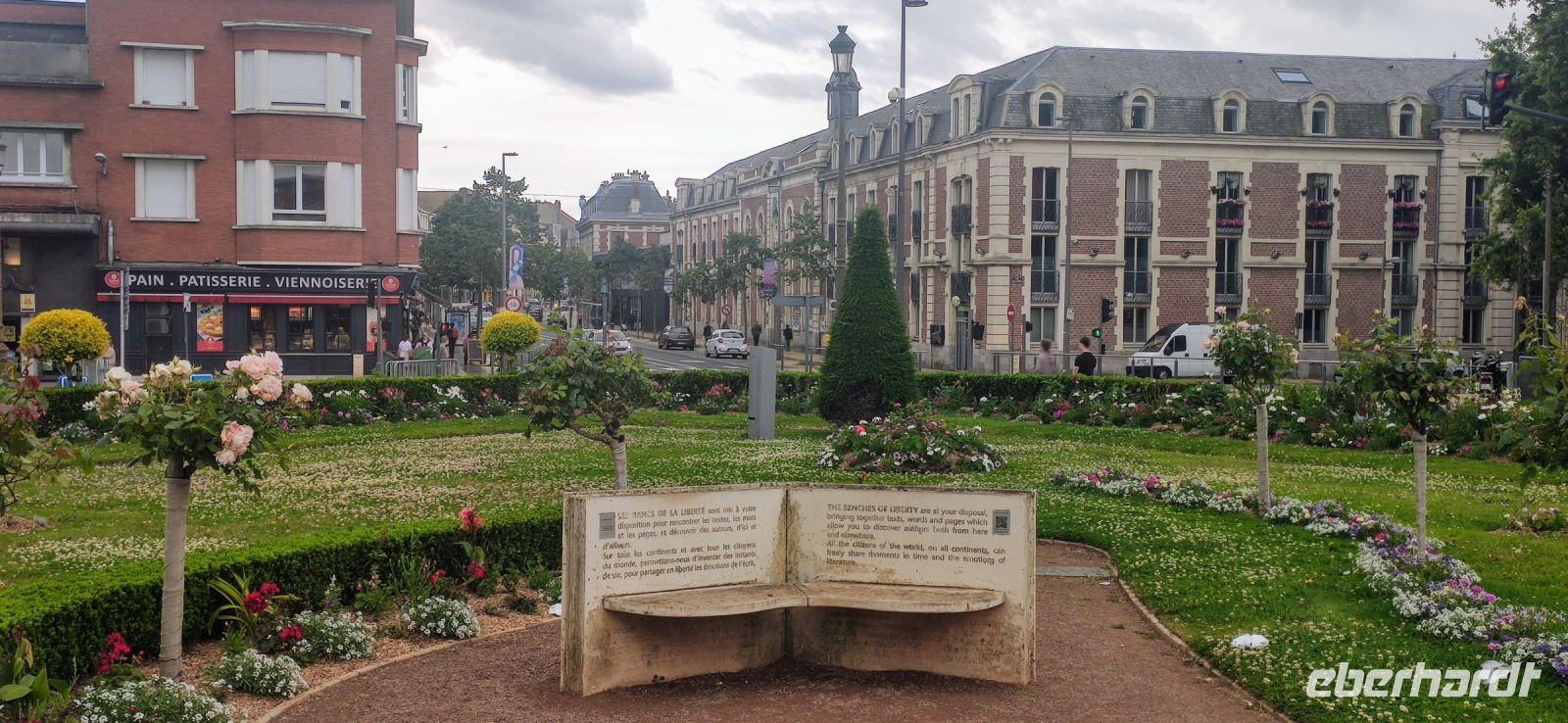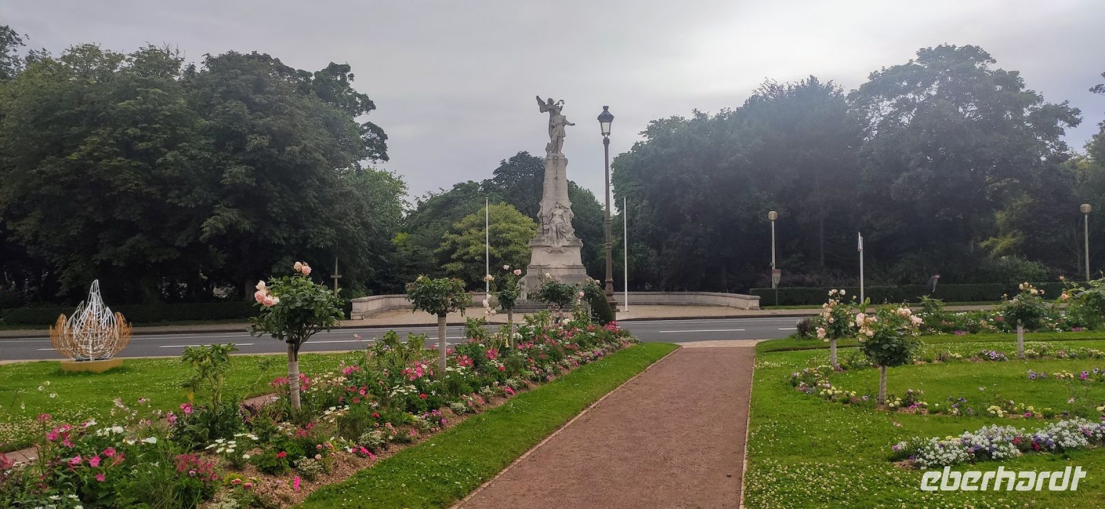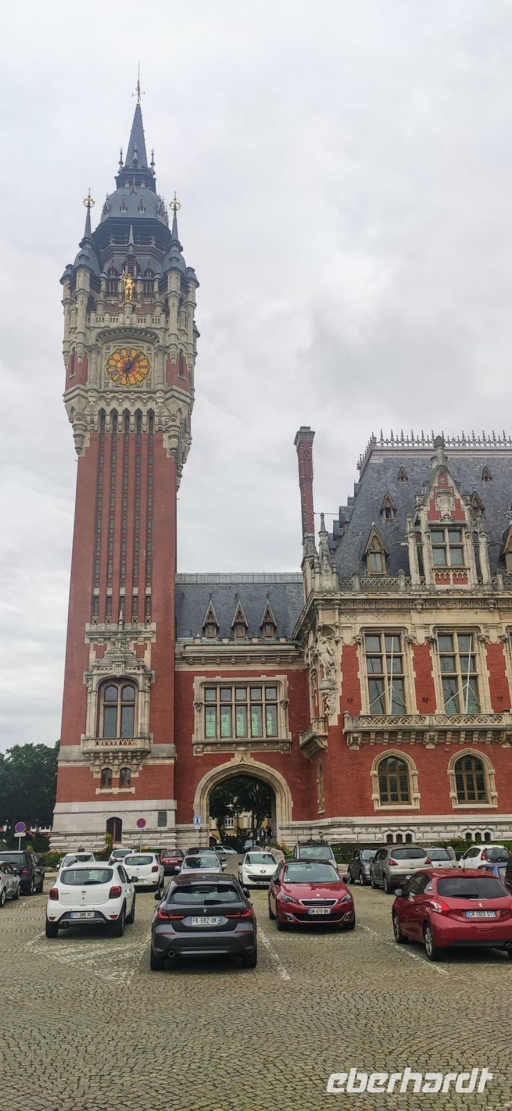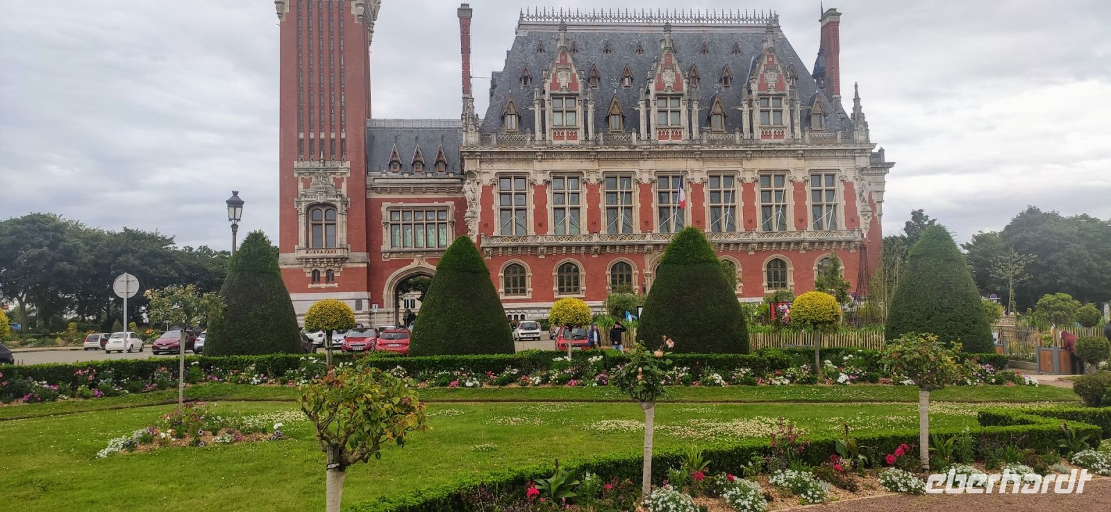 Bei der Ankunft in Calais nutzten wir die herausgefahrene Zeit für einen Kurzbesuch des Zentrums von Calais. Vorbei am Theater ging es durch die Haupteinkaufsstraße zum Rathaus – hier unternahmen wir einen Fotostopp und bewunderten die wunderschön gestalteten Blumenrabatten und das berühmte Denkmal der Sechs Bürger des Widerstands von Calais, geschaffen von Rudin.