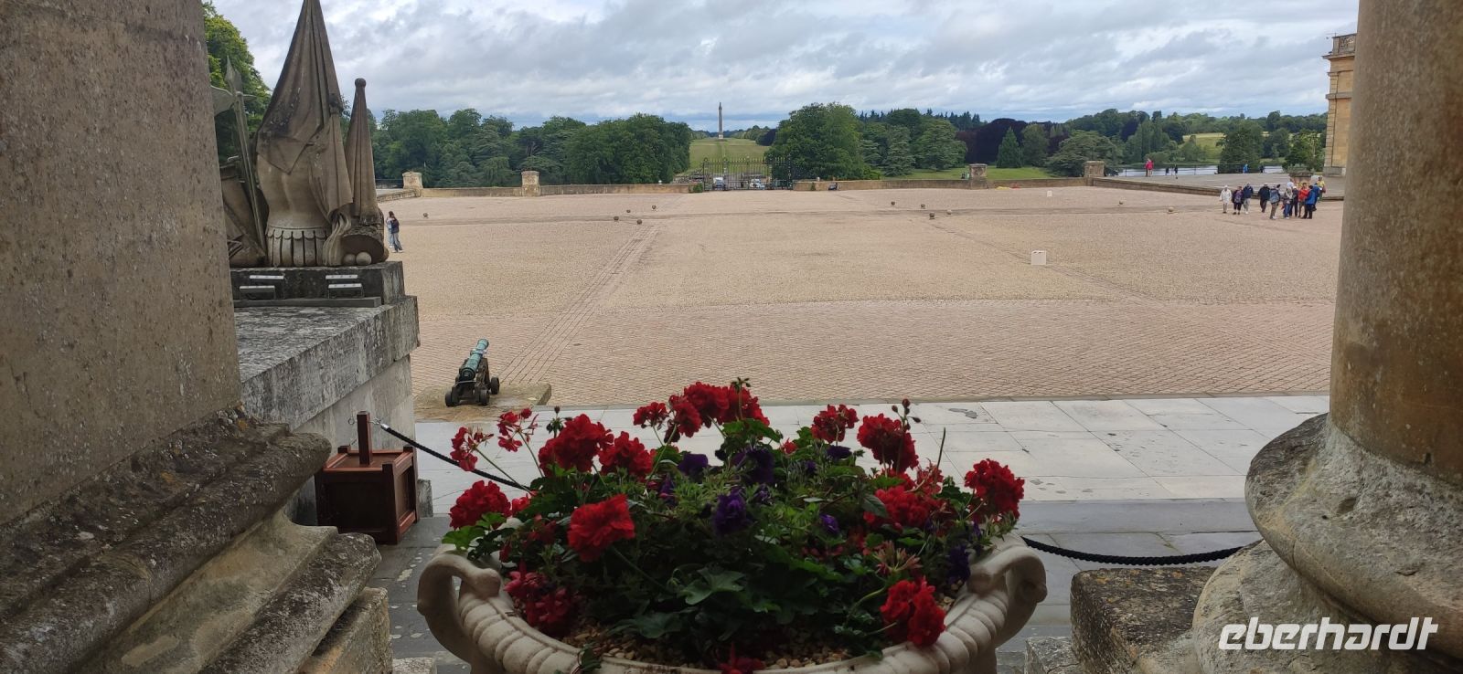 Wir fuhren nach dem Frühstück hinüber nach Windsor. Von der Themsebrücke hatten alle einen schönen Blick auf Windsor Castle. Dann ging es auf der Autobahn Richtung Oxford. Pünktlich zur Öffnungszeit erreichten Englands größtes Schloss, Blenheim Palace, wo seit eine Schenkung der Königin Ann die Herzöge von Malborough residieren. Der uns bekannteste ist natürlich Winston Churchill. Wir besichtigten das Schloss, den schönen Garten und den herrlichen Landschaftspark mit der Siegessäule.