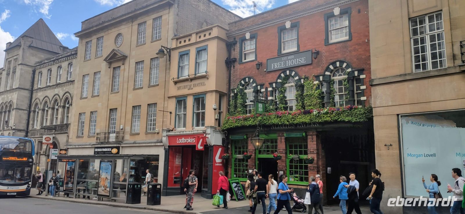 Am späten Mittag starteten wir zu unserem nächsten Reiseziel, der Stadt Oxford. Am Ashmoleon Museum trafen wir unseren Stadtführer Patrick. Er führte uns wunderbar durch die Stadt der Colleges. Wir besichtigten die Hauptstraße mit der Kathedrale und dem Christ Church College, sahen die Gebäude der Universität mit ihren berühmten Bibliotheken, die Seufzerbrücke und erfuhren viel über die britischen Bildungswege und Abschlüsse. Auch ein Abstecher zum historischen New College und zur versteckten Taverne an der alten Stadtmauer waren absolut sehenswert. Ab der Städtischen Markthalle hatten wir noch etwas Freizeit für die Geschäfte und Bars der Innenstadt.