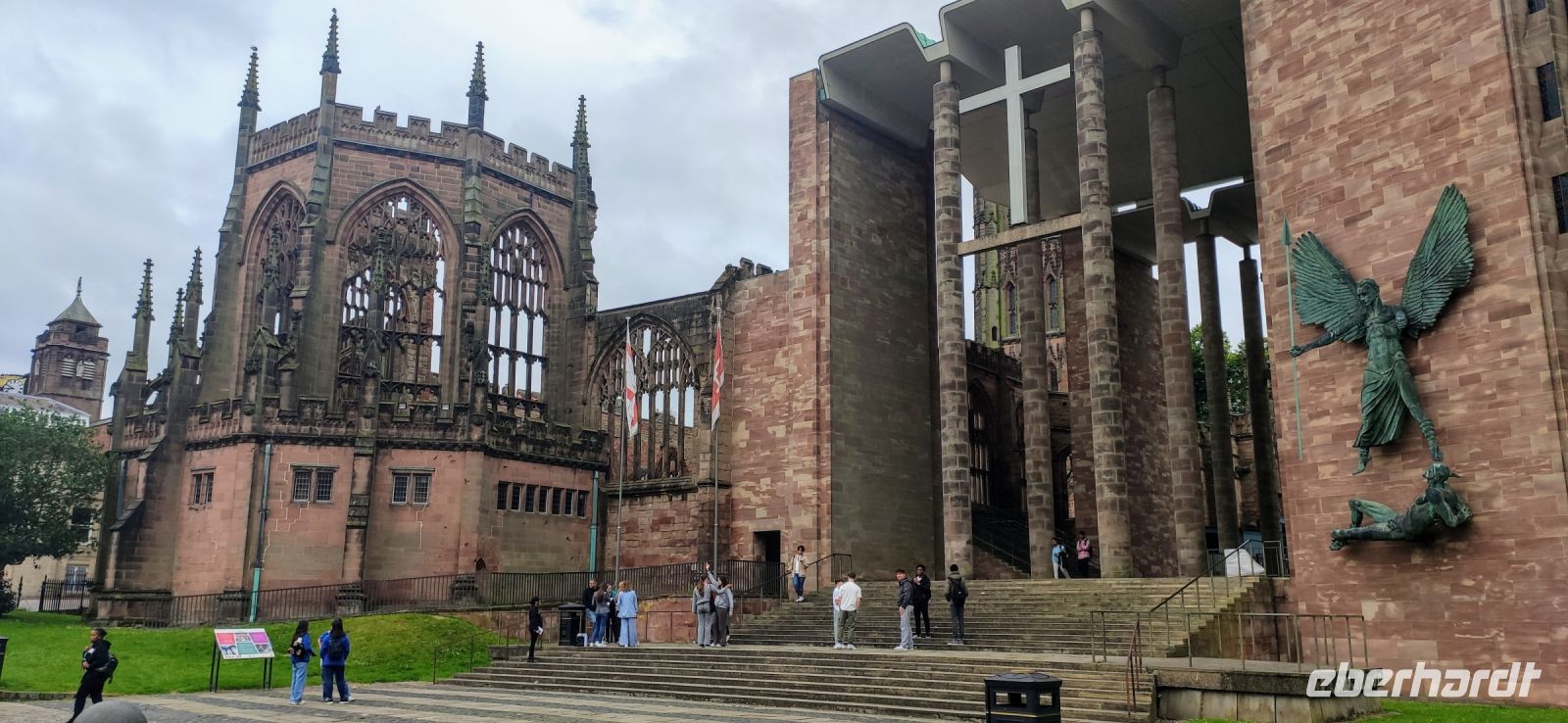 Mit einem deftiges English Breakfast eröffneten den neuen Tag und die Sonne schaute auch durch die Wolken. Um 9:00 Uhr starteten wir in die Innenstadt unserer Partnerstadt Coventry um zuerst die sehenswerten Ruine der Alten Kathedrale und daneben die Neune Kathedrale von 1962 zu besichtigen.