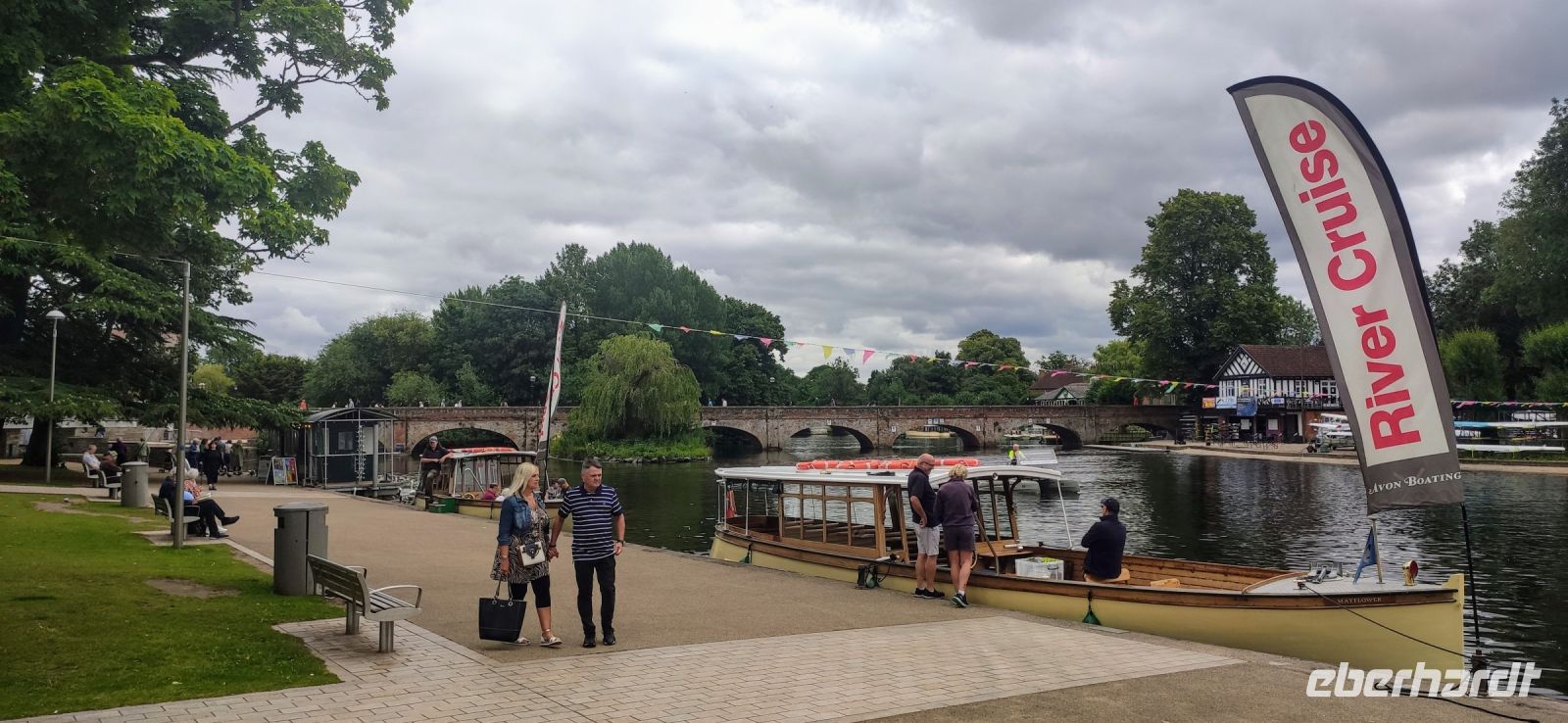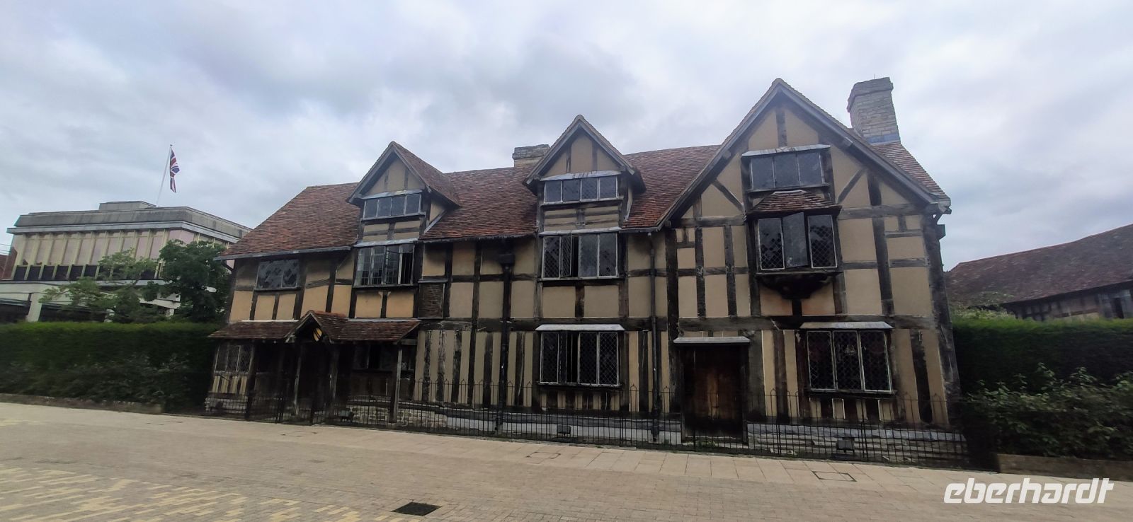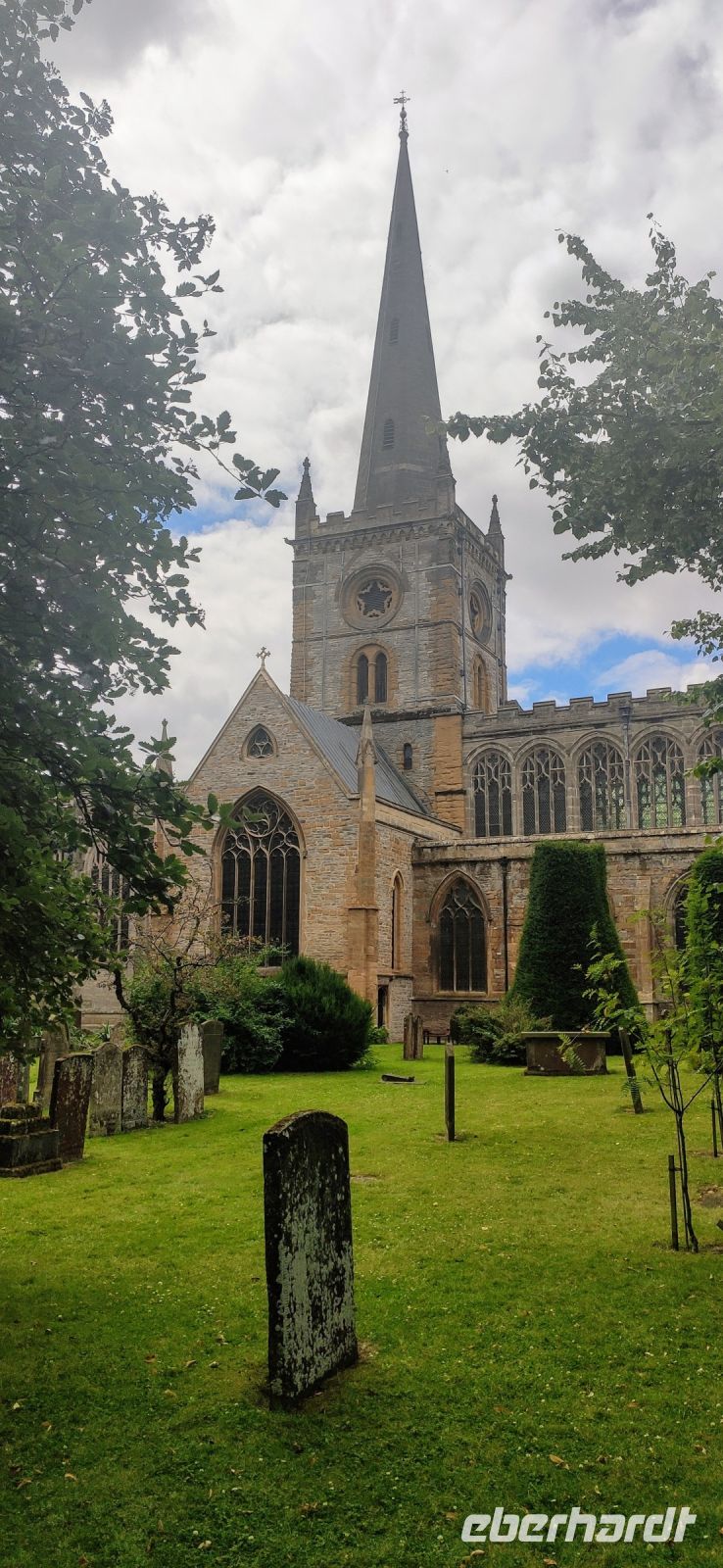 Danach ging es zu unserem ersten planmäßigen Ziel weiter, der Shakespeare-Stadt Stratford-upon-Avon. Vom Parkplatz am Besucher- und Freizeitzentrum spazierten wir gemeinsam zum Glowell Memorial. Hier erhielten alle einen Stadtplan und weiter ging es in die Fußgängerzone und zum Geburtshaus Shakespeares. Durch die Gassen mit wunderschönen Fachwerkhäusern des 16. und 17. Jahrhunderts liefen wir zum New Place, zu Nash’s House und zur Guild Hall, zum Royal Shakespeare Theatre und zum Swan Theatre, danach am Avon-Ufer entlang zur Trinity Church mit dem Grab Shakespeares.