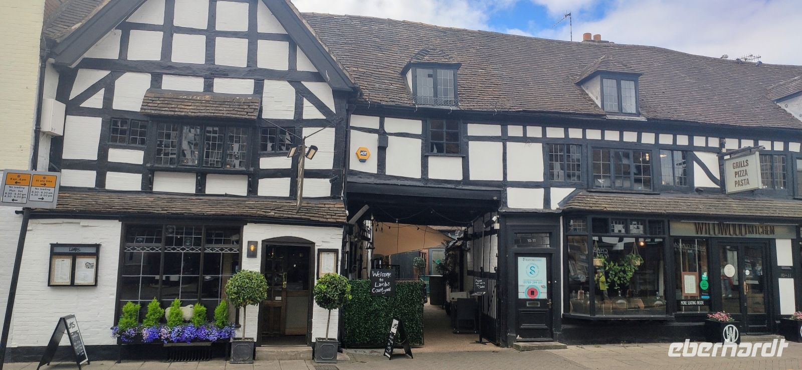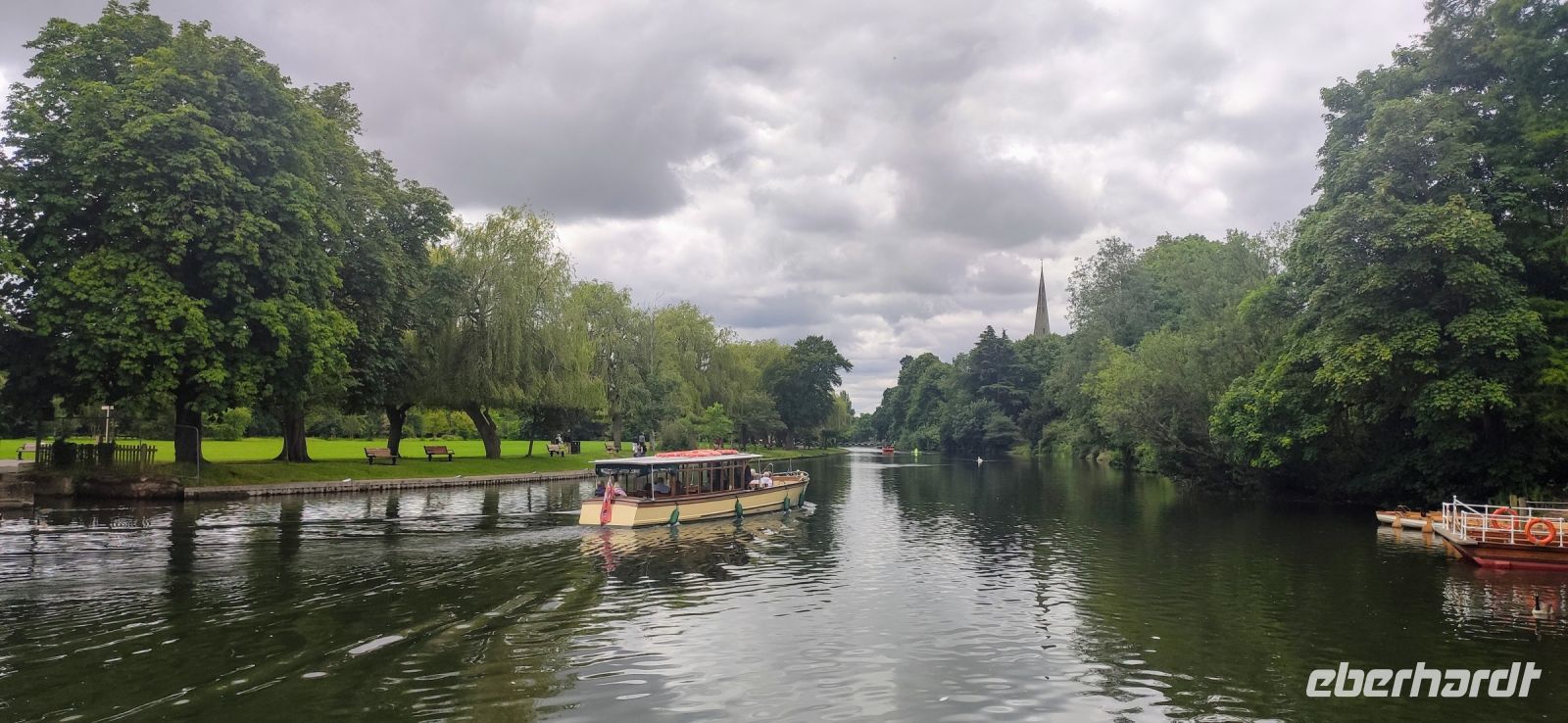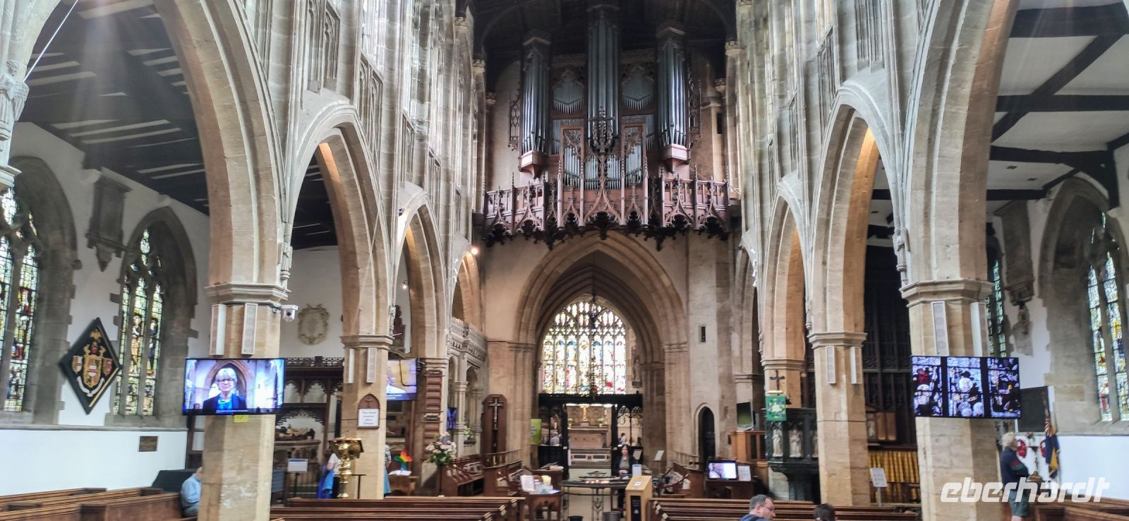 Danach ging es zu unserem ersten planmäßigen Ziel weiter, der Shakespeare-Stadt Stratford-upon-Avon. Vom Parkplatz am Besucher- und Freizeitzentrum spazierten wir gemeinsam zum Glowell Memorial. Hier erhielten alle einen Stadtplan und weiter ging es in die Fußgängerzone und zum Geburtshaus Shakespeares. Durch die Gassen mit wunderschönen Fachwerkhäusern des 16. und 17. Jahrhunderts liefen wir zum New Place, zu Nash’s House und zur Guild Hall, zum Royal Shakespeare Theatre und zum Swan Theatre, danach am Avon-Ufer entlang zur Trinity Church mit dem Grab Shakespeares.