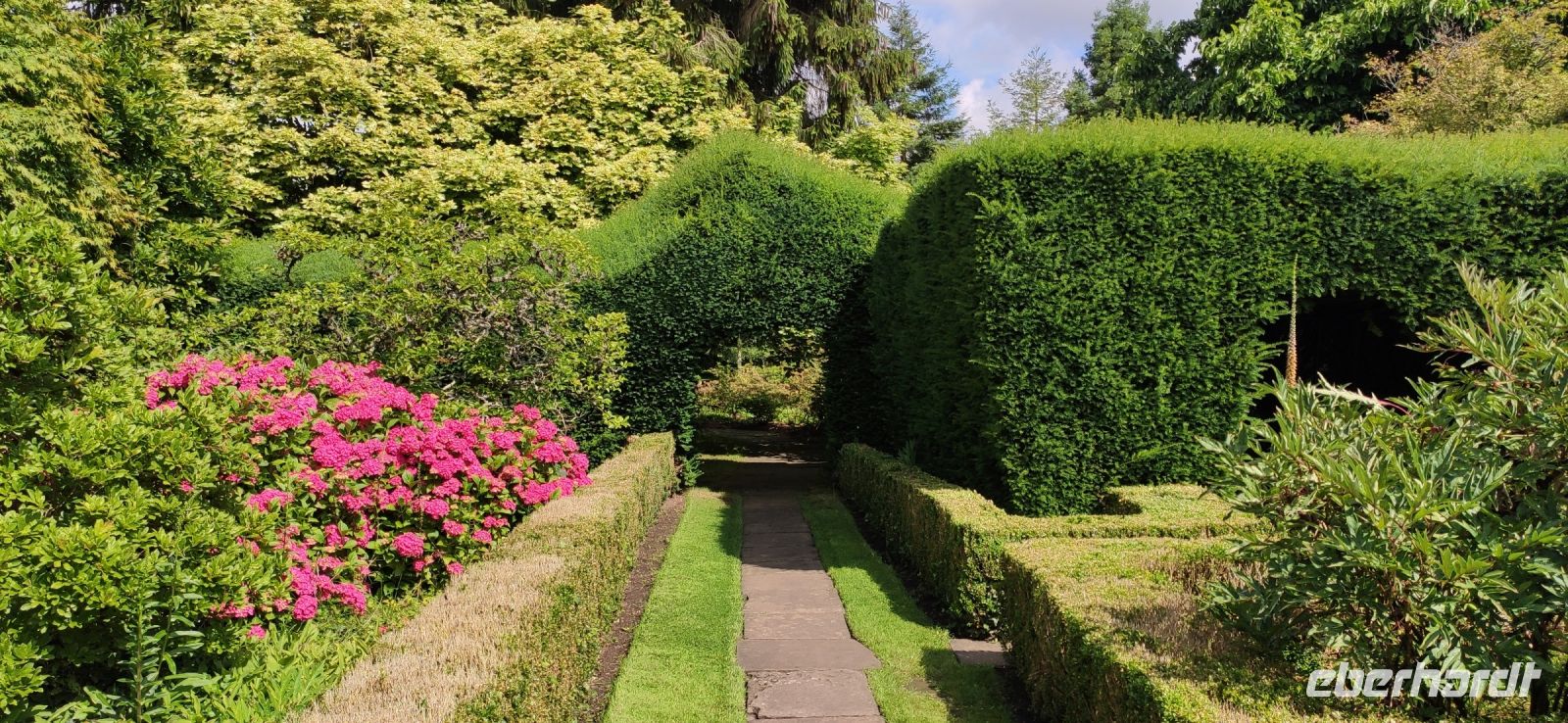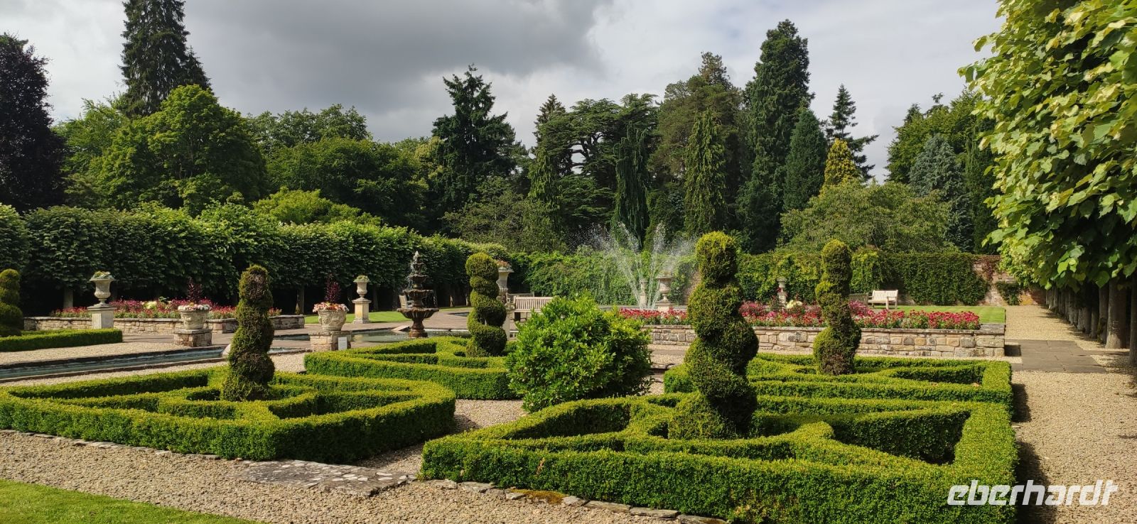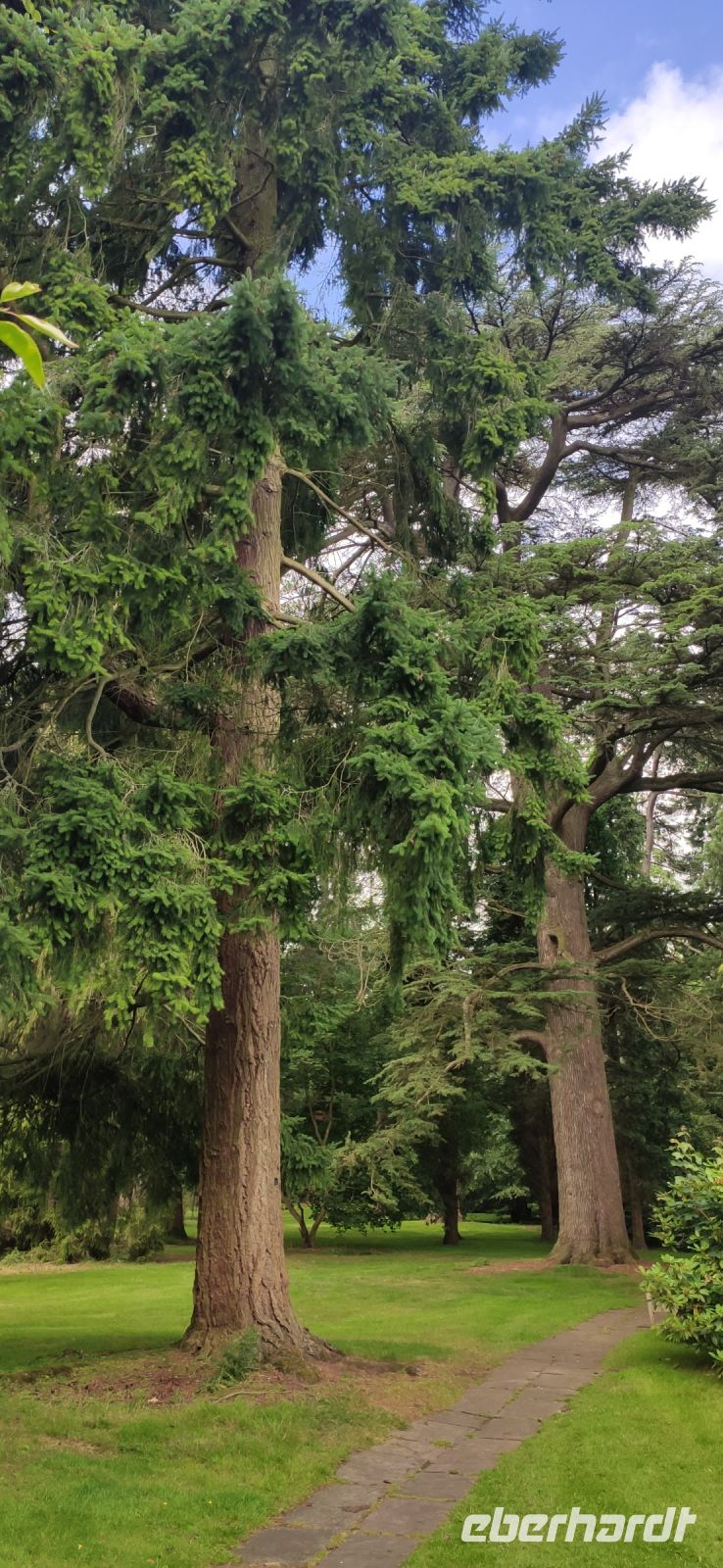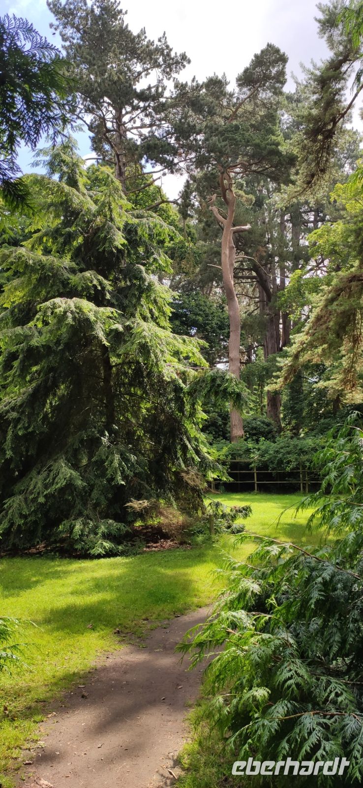 Ein wunderschön gestalteter Garten und ein beeindruckender Landschaftspark mit einer spektakulären Baumsammlung erwarteten uns hier. Die Kalifornischen Mammutbäume und Douglasien überwältigend groß.