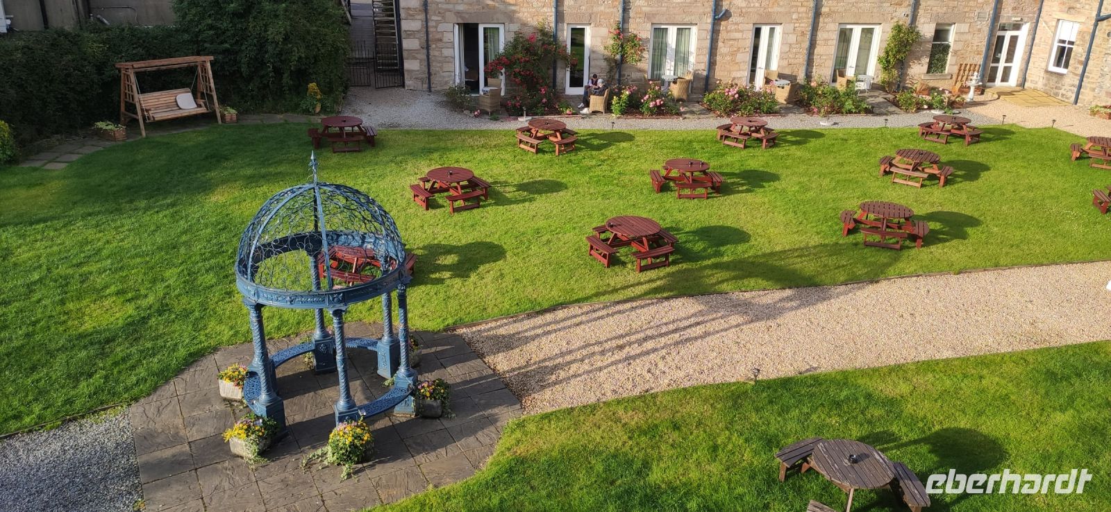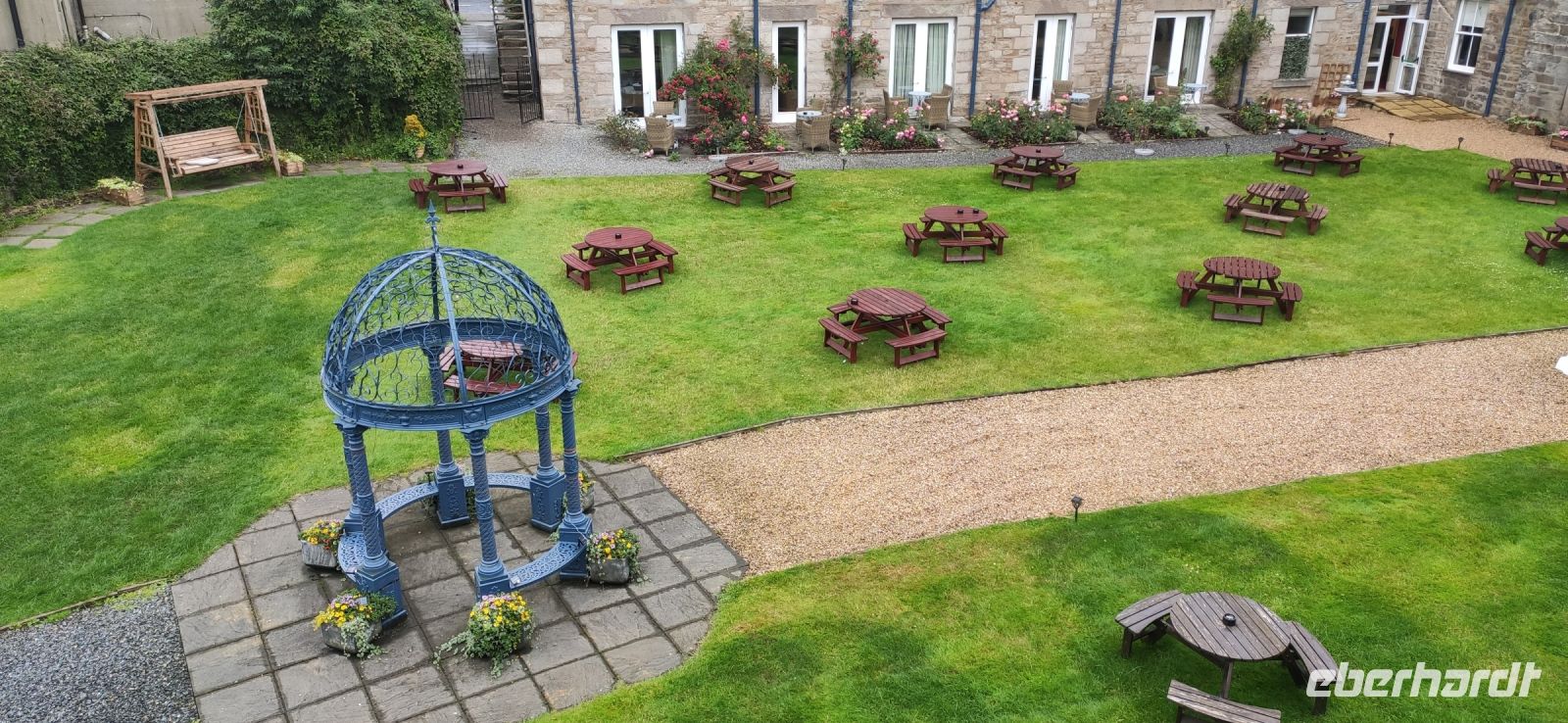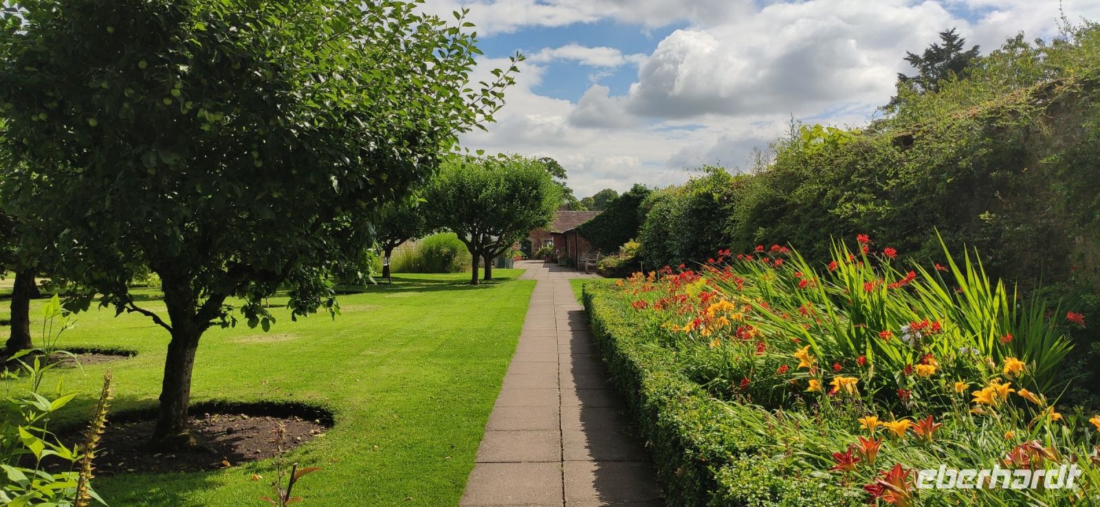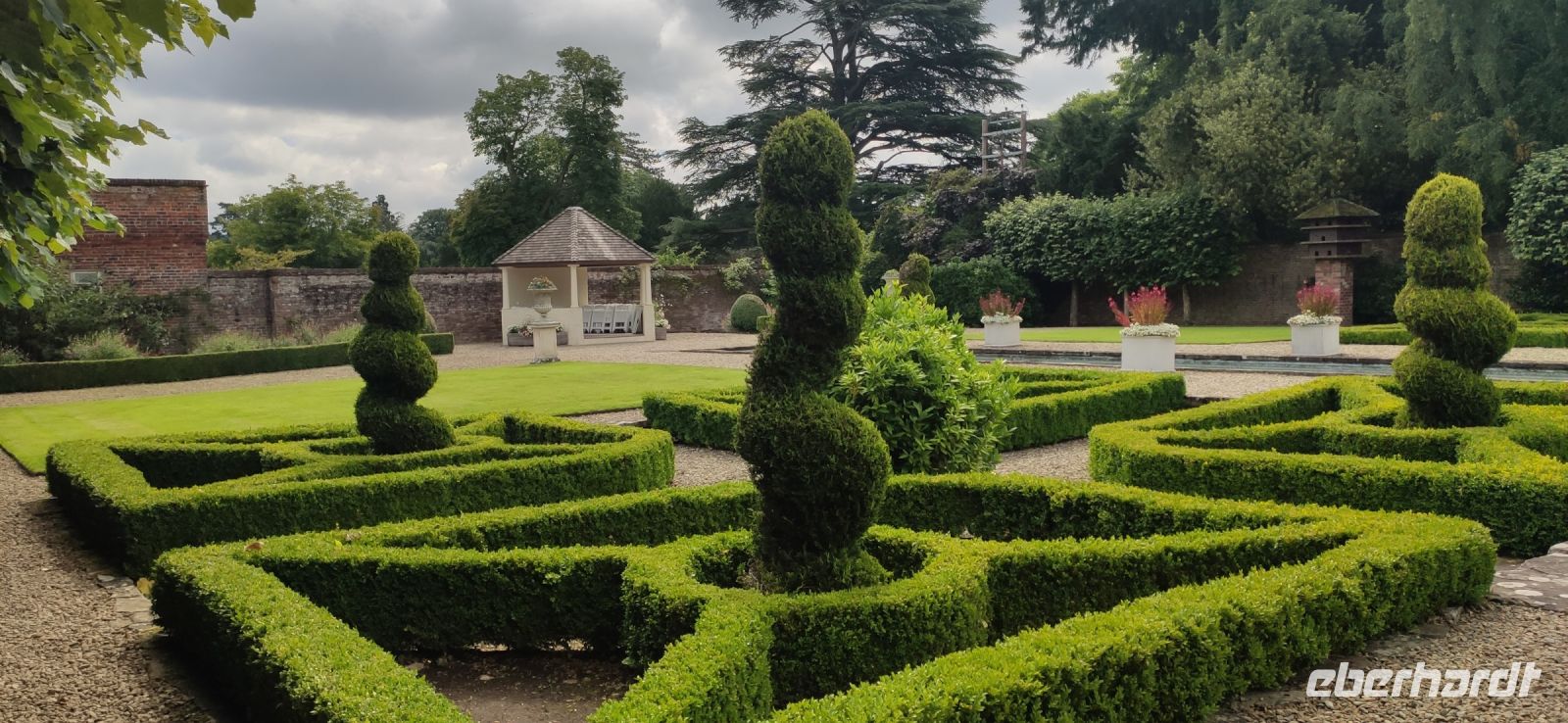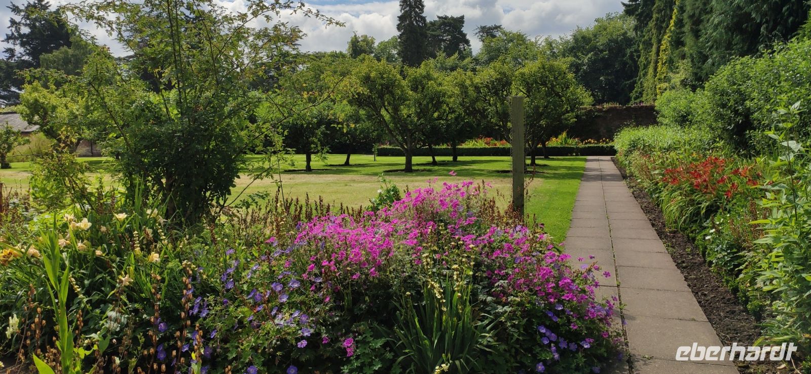 Ein wunderschön gestalteter Garten und ein beeindruckender Landschaftspark mit einer spektakulären Baumsammlung erwarteten uns hier. Die Kalifornischen Mammutbäume und Douglasien überwältigend groß.
