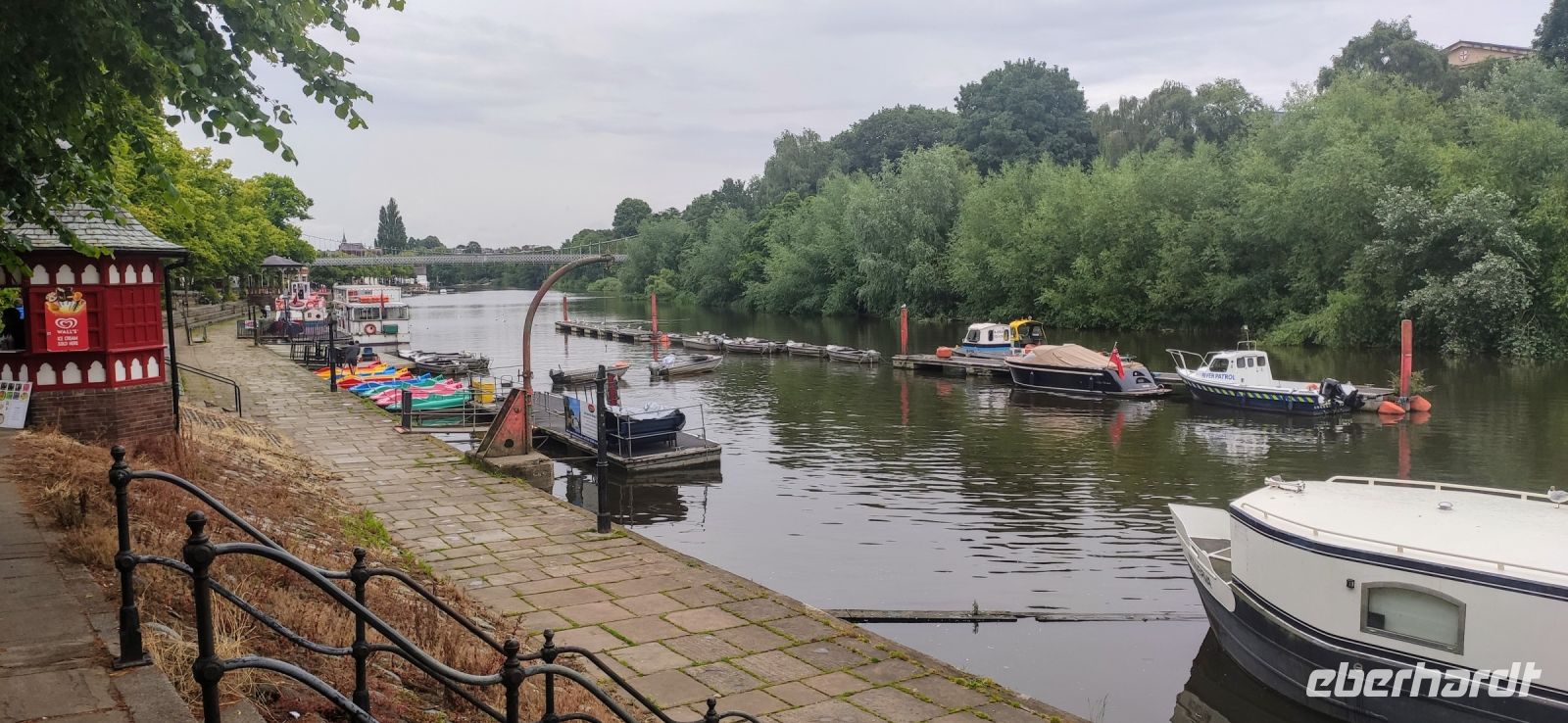 Am Little Rodee Coach Park in Chester treffen wir Ann, die uns mit ihrer wunderschönen und historischen Stadt bekannt macht. Bei wunderschönem Wetter laufen wir am Schloss immer entlang des Flussufers des Dee, dann zur alten Abbey, an den römischen Ruinen vorbei zu den Gassen mit den berühmten Rows. Die Stadtführung bringt uns auch zur Victorianischen Uhr und zur Kathedrale sowie zum Rathaus, welches ja keine Uhr auf der Waliser Seite besitzt. Anschließende spazierten wir zurück zum Reisebus und fuhren zum Hotel. Das Mercure Abbots Chester Well Hotel empfängt uns am Abend.