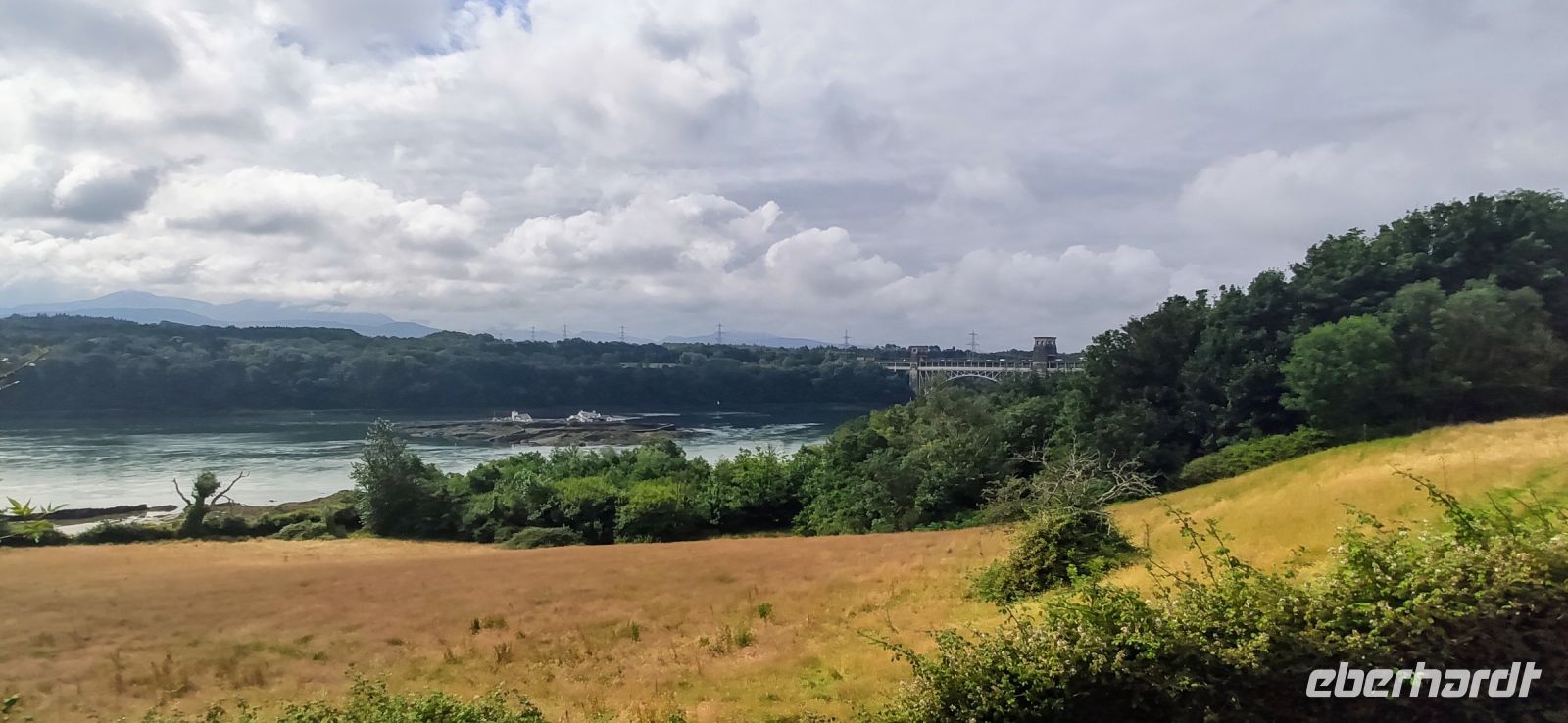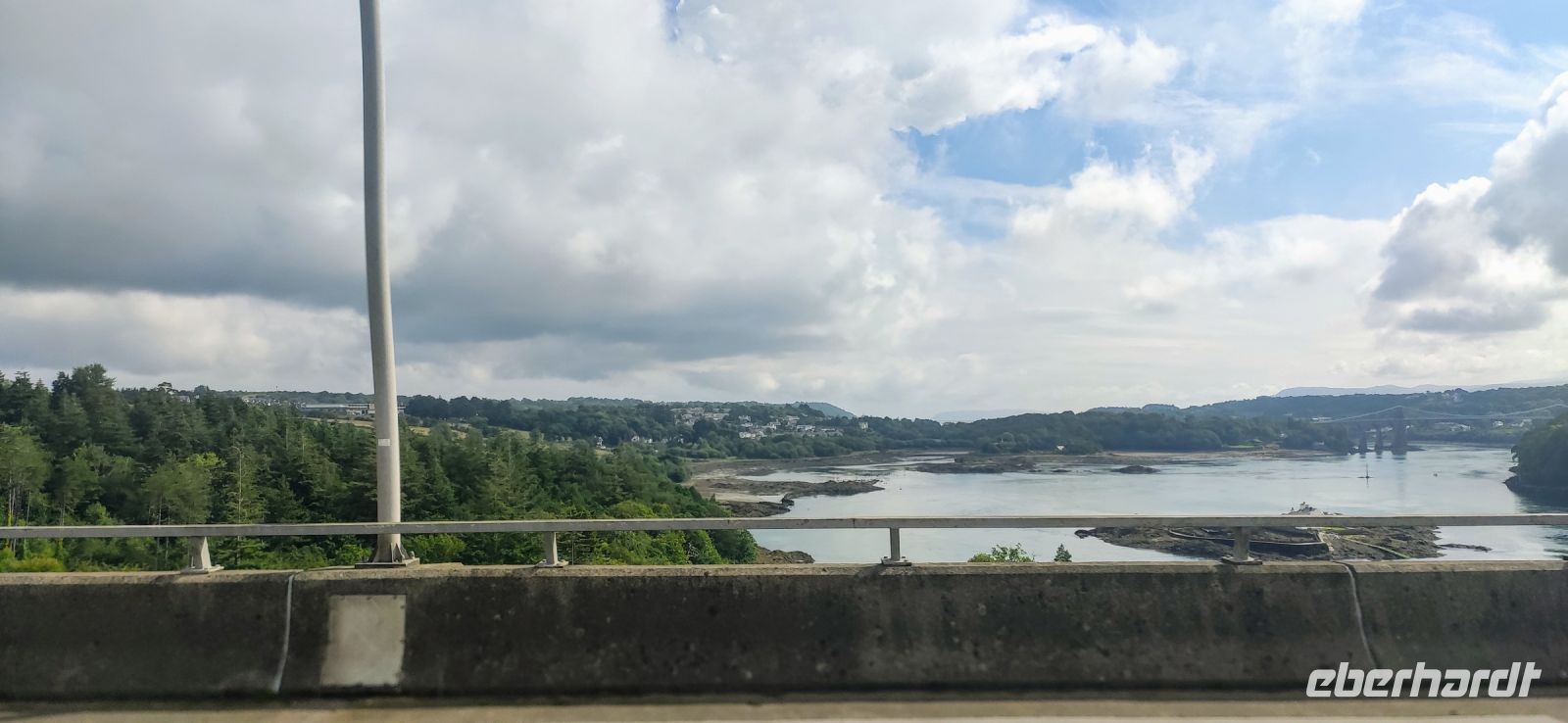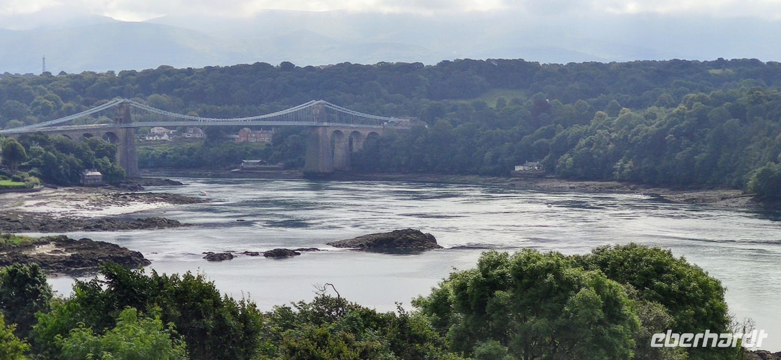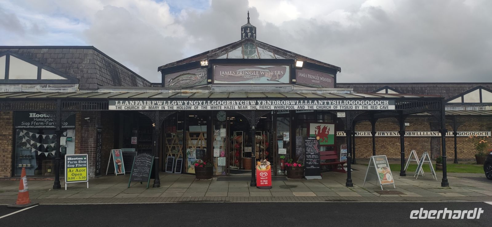 Vorbei an Conwy und Penrhyn kommen wir schließlich zur Insel Anglesey. Wir fahren über die Britannia Bridge von Robert Stevenson hinüber. An der Aussicht auf Thomas Telford`s Menai Bridge, der Kettenbrücke von 1826 machen wir den ersten Fotostopp. Den nächsten dann im Ort mit dem längsten Namen der Welt: Llanfairpwllgwyngyllgogerychwyrndrobwllllantysiliogogogoch