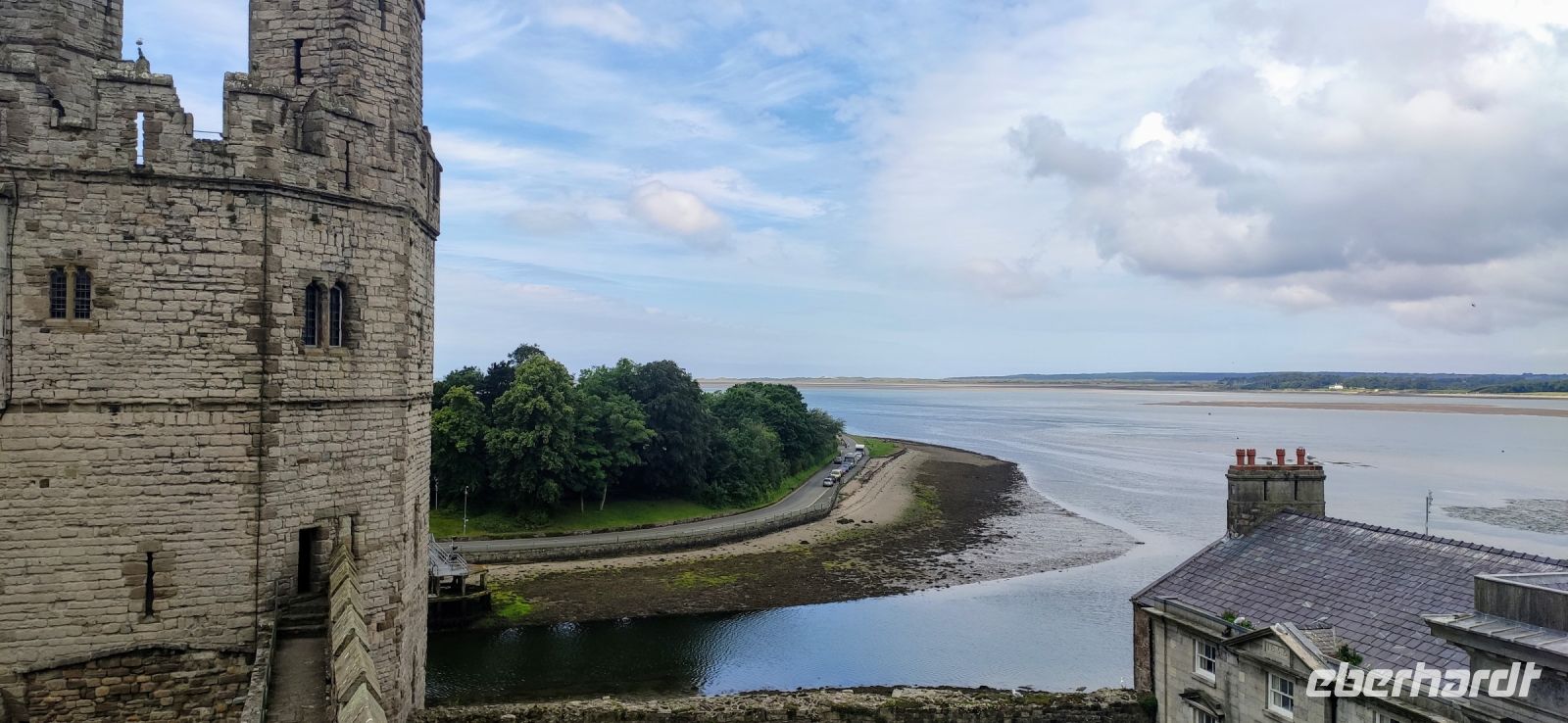 Es geht die Küstenstraße mit Blicken auf die irische See, die Berge, den walisischen Badeorten und den Burgen des eisernen Ringes entlang.