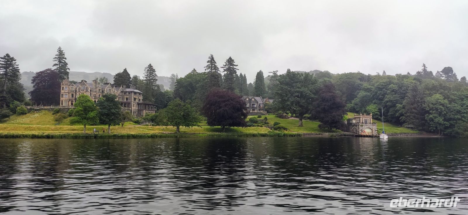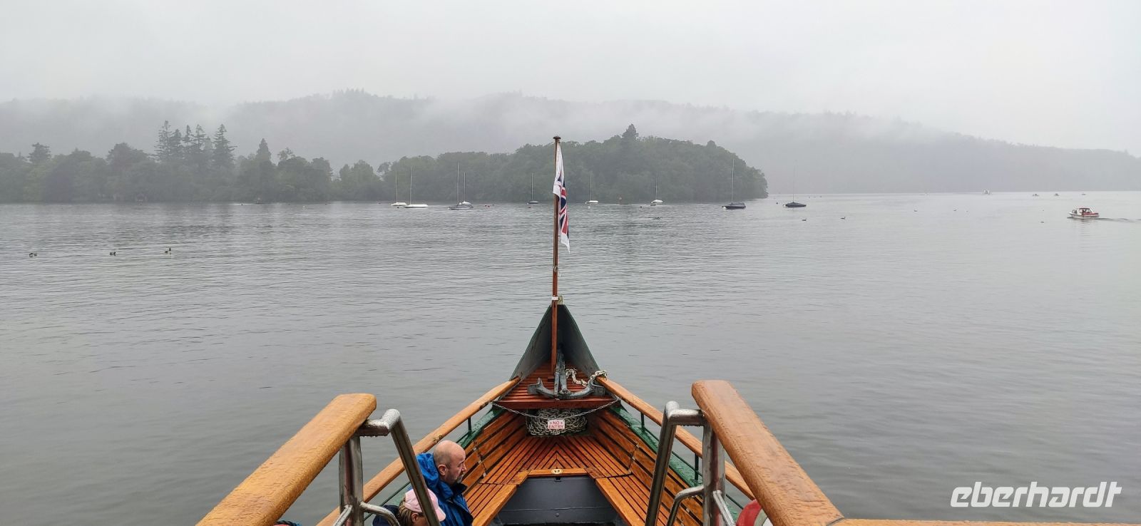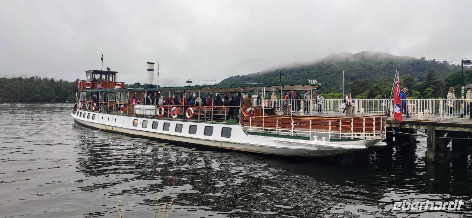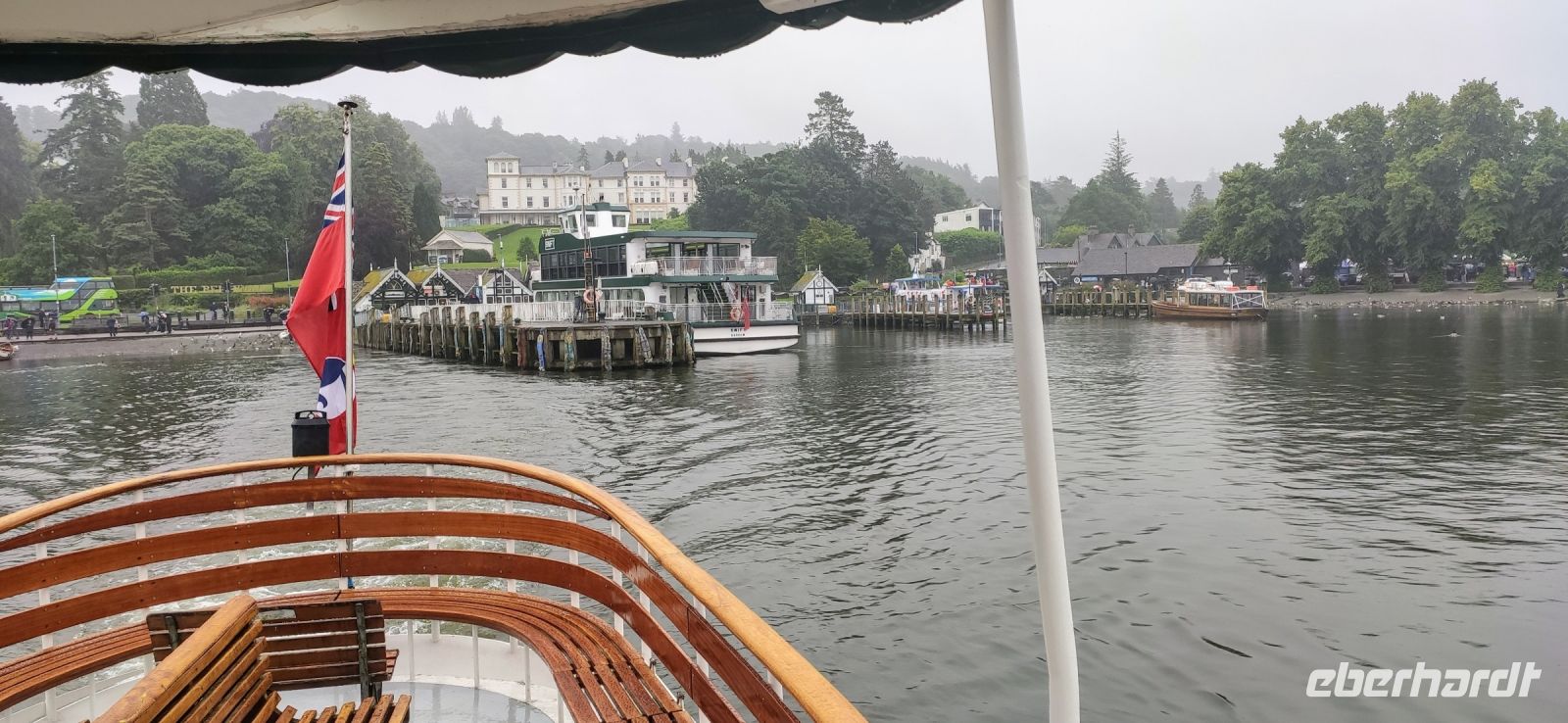 An der Schiffsanlegestelle steigen wir aus und müssen nicht lange auf unser Ausflugsschiff warten. Leider regnet es weiter, auch als wir auf das Ausflugsschiff steigen. Gemächlich schippern wir nach Ambleside am nördlichen See-Ende. Nach einer kleinen Pause fahren wir hinein ins Gebirge, Richtung Keswick und zum Steinkreis von Castlerigg, wo wir bei einem Fotostopp die schöne Aussicht genießen, umgeben von einigen der höchsten Berge des Lake Disticts. Hier machen wir auch Mittag.