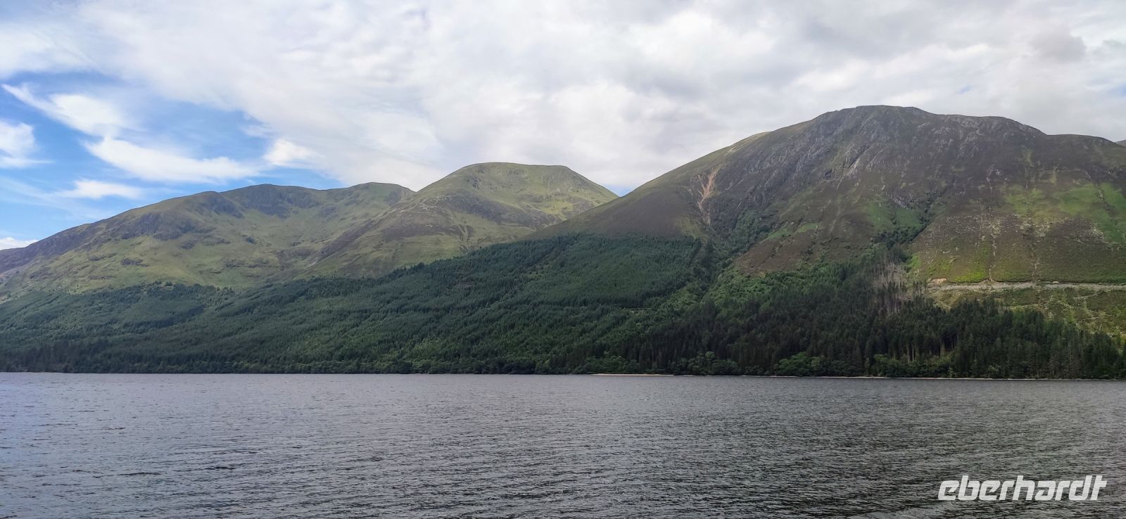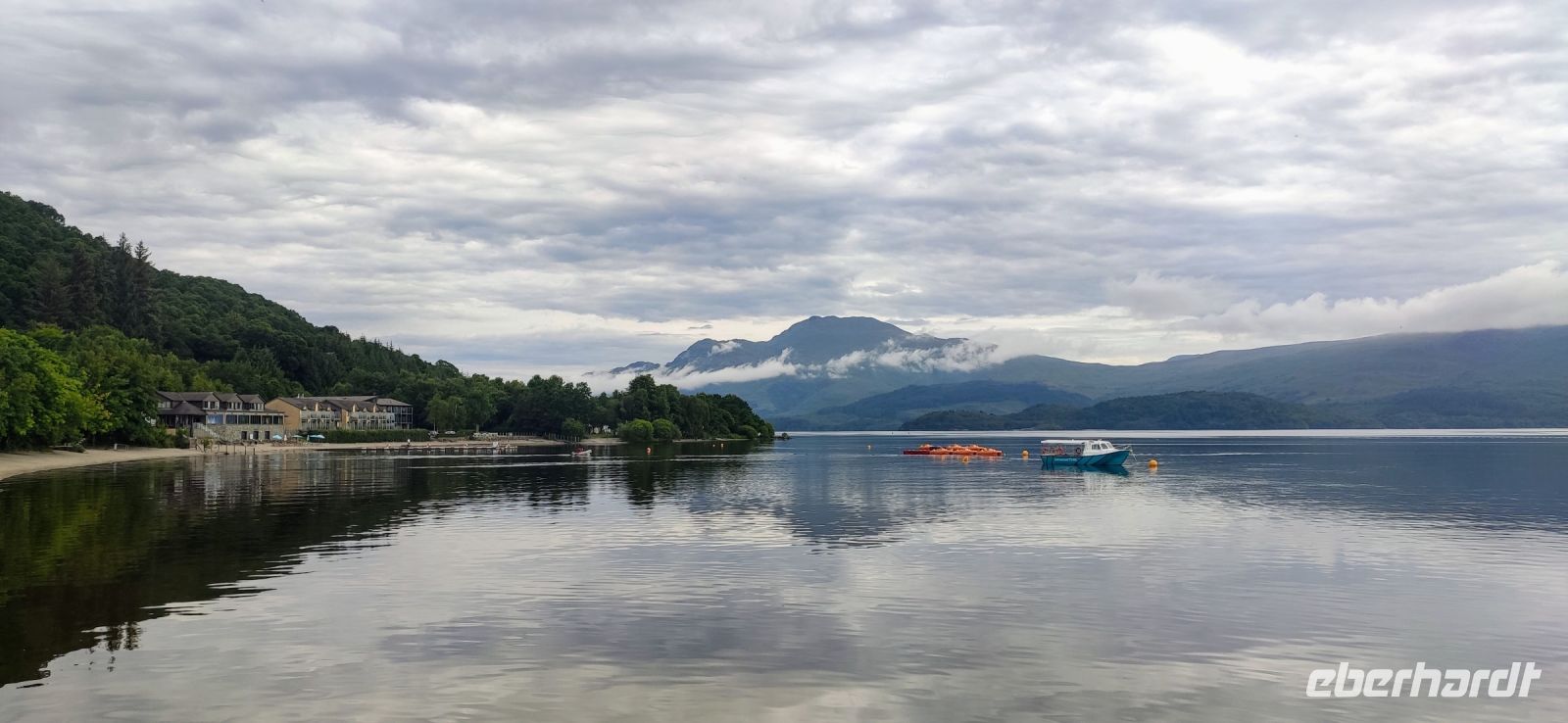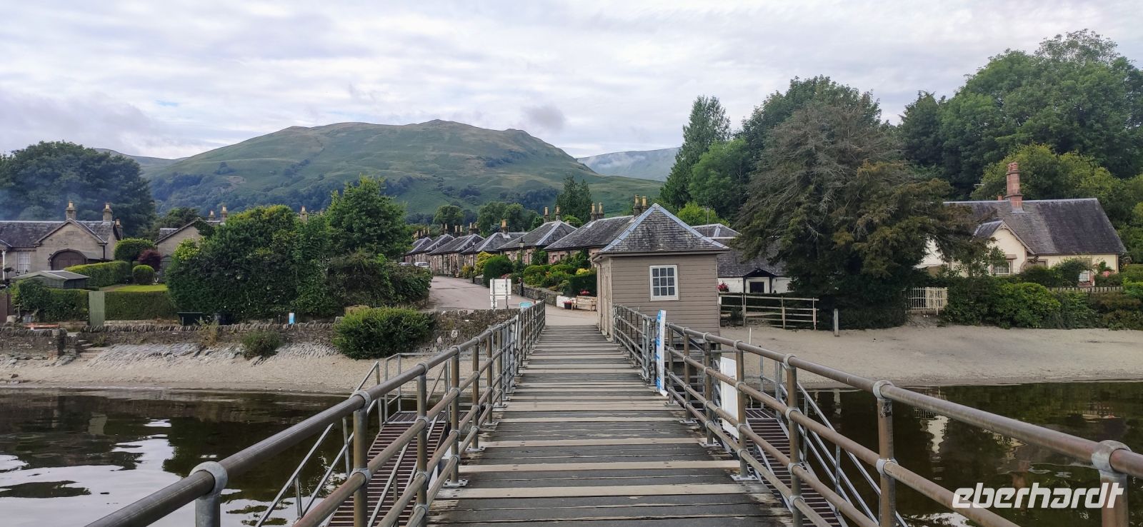 Das erste Scottish Breakfast hat geschmeckt, die Sonne scheint. Nun geht es weiter den Clyde abwärts und hinüber zum Loch Lomond im Trossachs Nationalpark. Wir halten zum Fotostopp in Luss. Ein gemeinsamer Spaziergang führt uns zum Pier am See, mit Blick auf den 974 m hohen Ben Lomond, dem höchsten Berg des Trossachs Nationalparks. Am See entlang geht die Fahrt weiter bis nach Crainlarich und Tyndrum hinein in die Highlands.