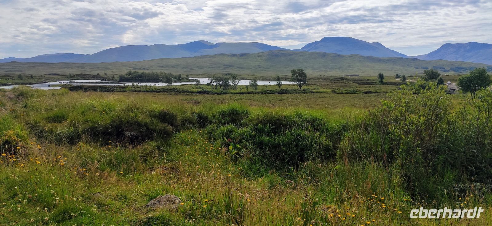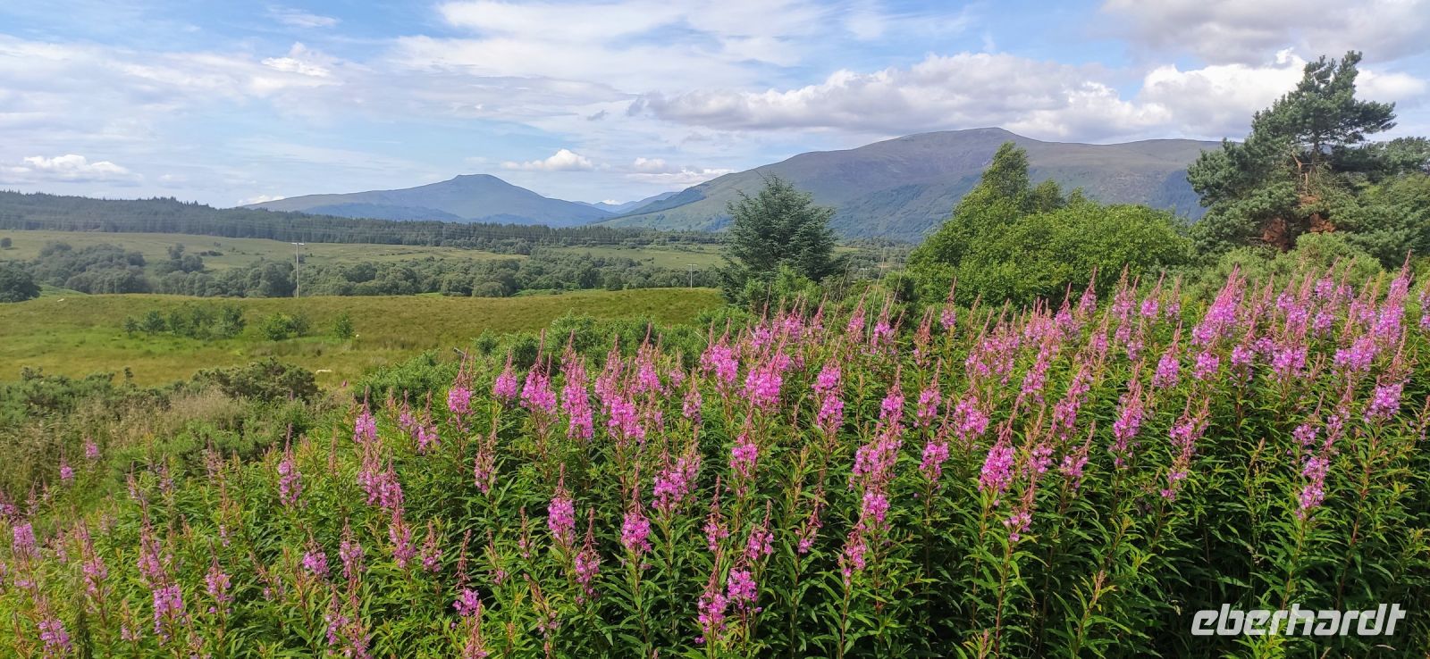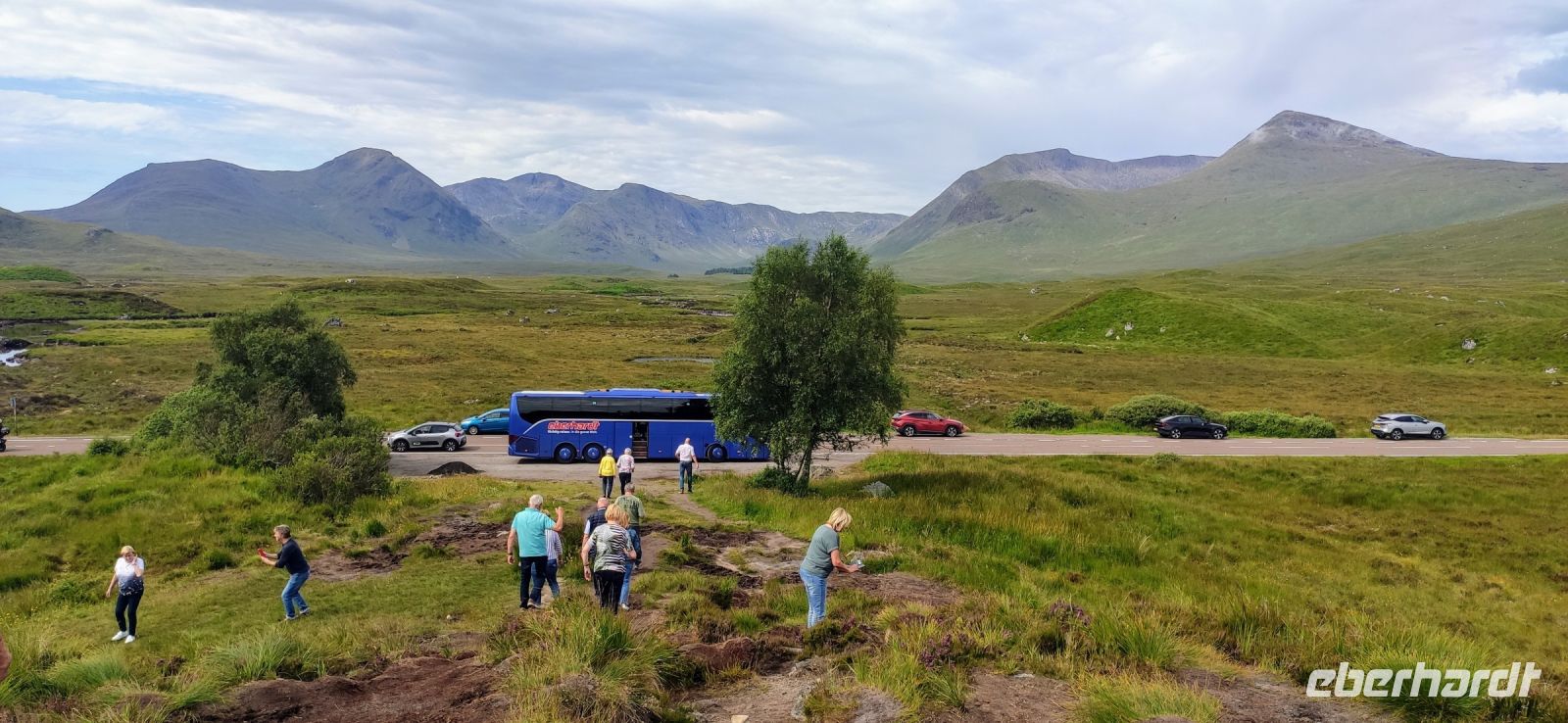 Das erste Scottish Breakfast hat geschmeckt, die Sonne scheint. Nun geht es weiter den Clyde abwärts und hinüber zum Loch Lomond im Trossachs Nationalpark. Wir halten zum Fotostopp in Luss. Ein gemeinsamer Spaziergang führt uns zum Pier am See, mit Blick auf den 974 m hohen Ben Lomond, dem höchsten Berg des Trossachs Nationalparks. Am See entlang geht die Fahrt weiter bis nach Crainlarich und Tyndrum hinein in die Highlands.