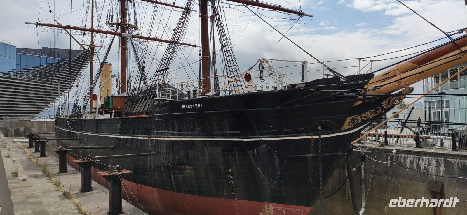 Am Discovery Point machen wir Halt und einen Fotostopp. Hier liegt das Schiff von Scott, mit dem er die ersten Südpol-Expeditionen unternahm. Von der Uferpromenade des Firth of Tay hat man auch einen schönen Blick auf die Firth of Tay Bridges und das neue Victoria & Albert Museum, welches wir natürlich auch besuchen.