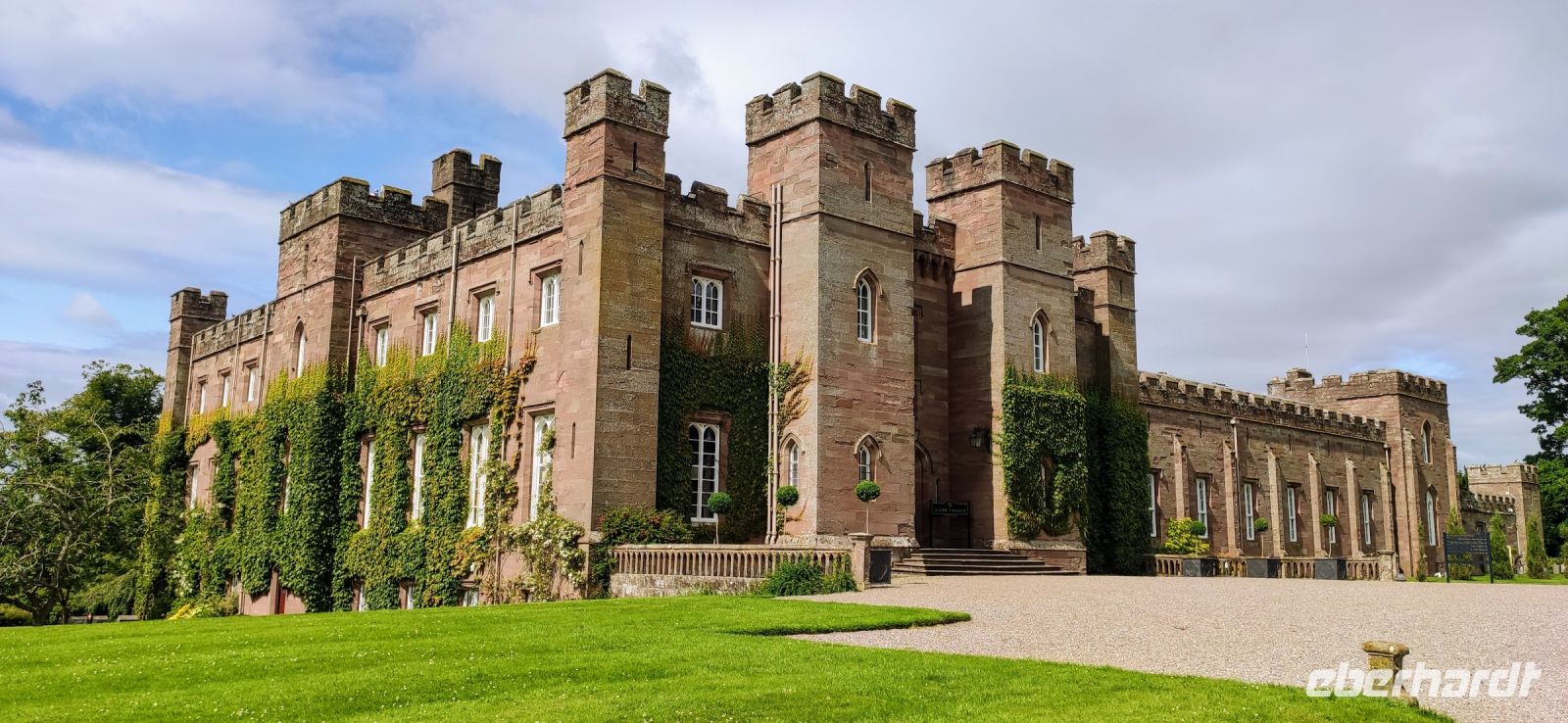 Die Sonne lässt uns nicht mehr im Stich und wir fahren heute nach Perth und zum Scone Palace nahe der Stadt. Das schöne, neogotische rote Sandstein- Schloss ist der Sitz der alten Familie Morrey, des heutigen Earls of Mansfield.