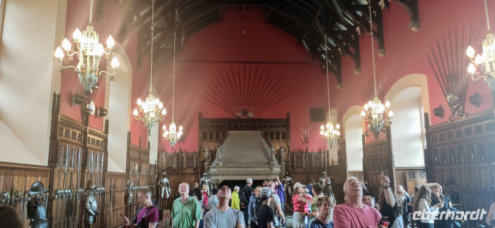Von hier ist es nur noch ein kurzes Stück bis Fort Augustus. An den Schleusenstufen des Caledonian Canals schauen wir zu, wie die Schleusenkammern befüllt werden. Dann geht es am Loch Ness entlang zum Urquhart Castle, die Treppe hinunter zur Kasse, dann gemeinsam nach unten in den Shop, dort links das kleine Kino, wo der Film über die Geschichte des Castles in englischer Sprache mit deutschen Untertiteln gezeigt wird (8 Minuten). Ein sehr schöner Effekt entsteht am Ende, wenn sich der Vorhang öffnet.