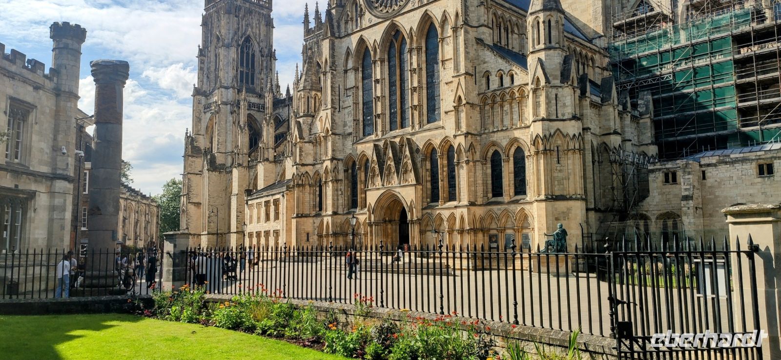 Unsere Fahrt geht durch die Borderlands Richtung Jedburgh. Durch die Täler der Flüsse Leader und Tweed. Fotostopps am Leaderfoot Viaduct und an der Jedburgh Abbey sind selbstverständlich. Wir fahren aber auch kurz hinauf zu Scotts View, denn die schöne Aussicht hat nicht nur Sir Walter Scott gefallen, sondern auch uns. Ein herrlicher Blick über das Tweed Tal und zu den Cullin Hills. Ein kleines Stück nach Jedburgh erreichen wir mit Carters Bar die Grenze zwischen Schottland und England. Dann geht’s hinein in die Natur von Norththumbria und vorbei an Newcastle. Die weitere Fahrt geht zur Autobahn M1, mit Mittagspause am Washington Services und der anschließenden Weiterfahrt in die alte englische Hauptstadt York, wo wir vom Union Terrace Coach Park aus gemeinsam bis zum Stadttor und weiter zum Minster gehen. Nun kann jeder kurz Eindrücke von dieser schönen Stadt sammeln. Ein Teil besucht das absolut sehenswerte Minster, einen der größten Kirchenbauten Großbritanniens, andere bummeln durch die malerischen Gassen oder spazieren über die Stadtmauer.