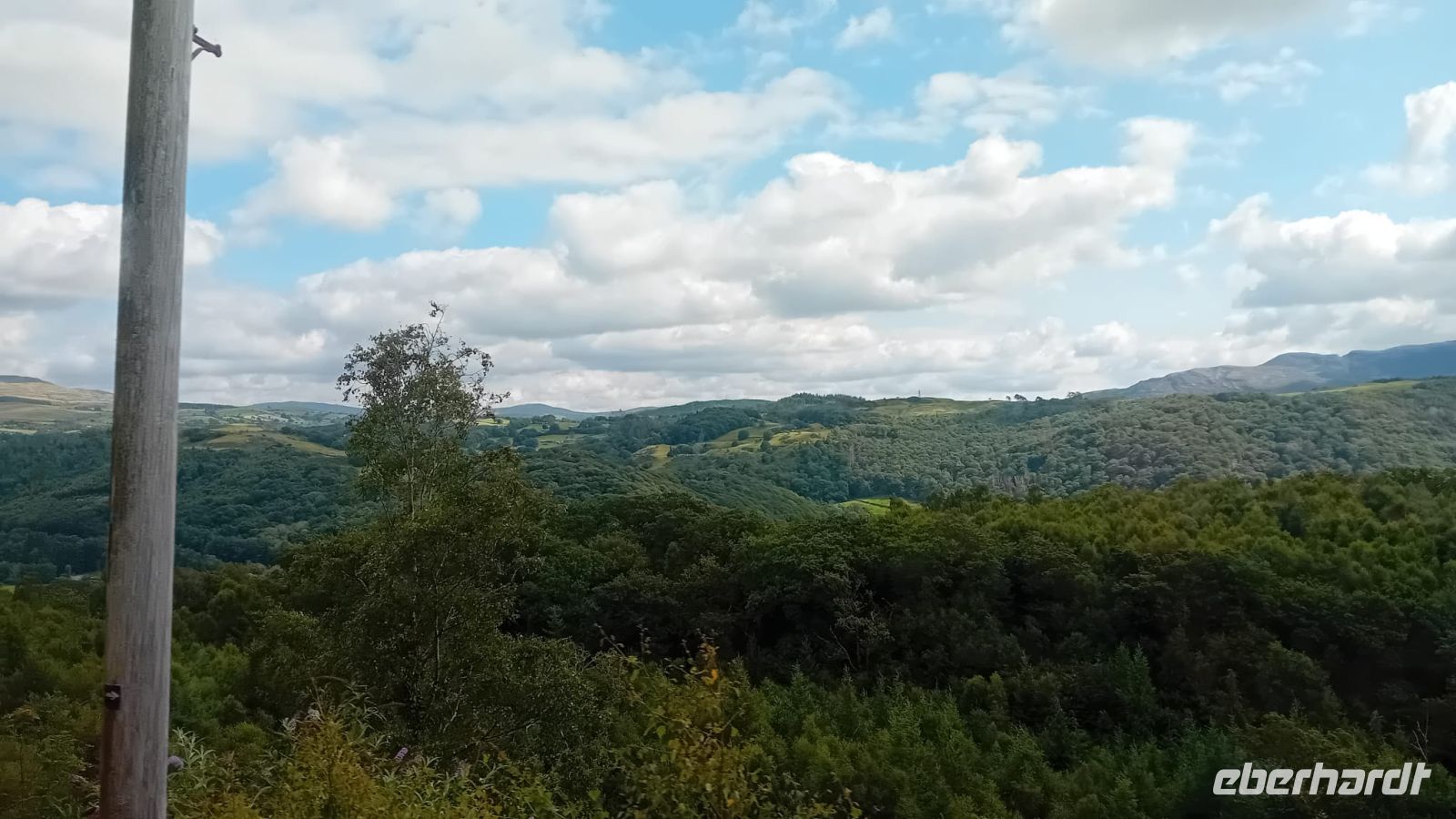 Unsere Route führt uns vorbei am beeindruckenden Leaderfoot Viaduct, einer historischen Eisenbahnbrücke mit 19 Bögen, die sich malerisch über das Tal des Flusses Tweed spannt. Ein kurzer Stopp am Border View Point bietet uns einen herrlichen Ausblick auf die schottisch-englische Grenze und die umliegende Landschaft.